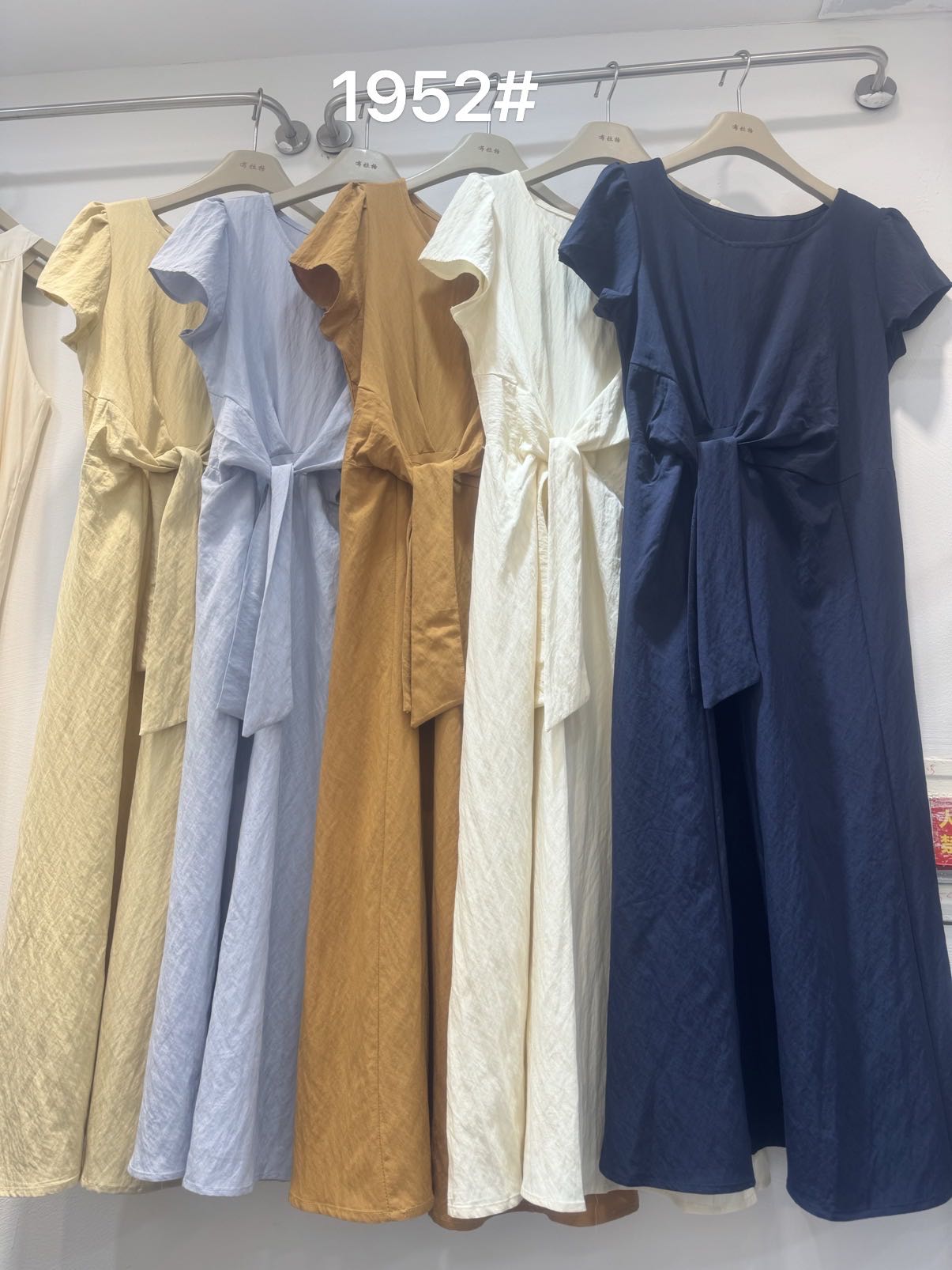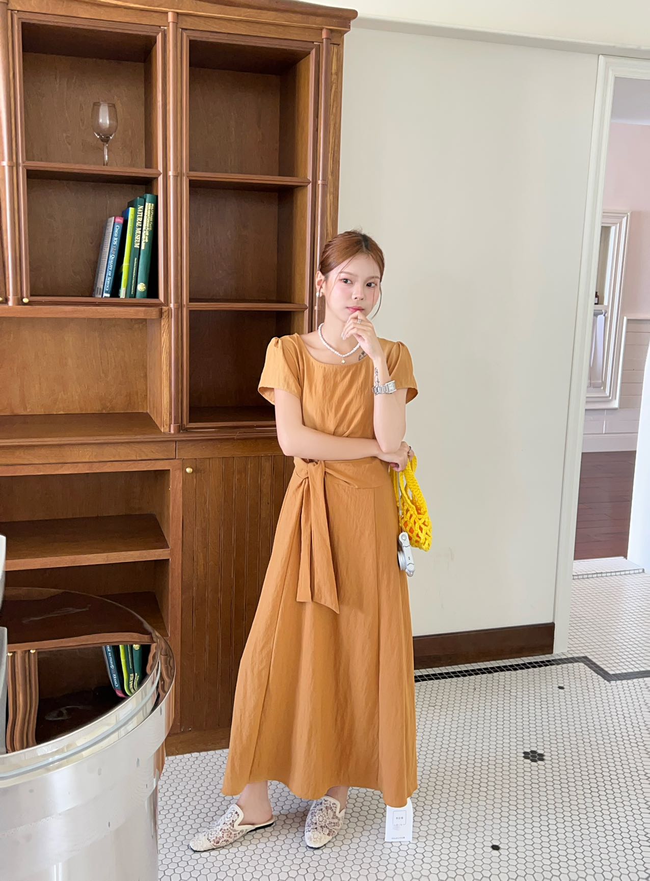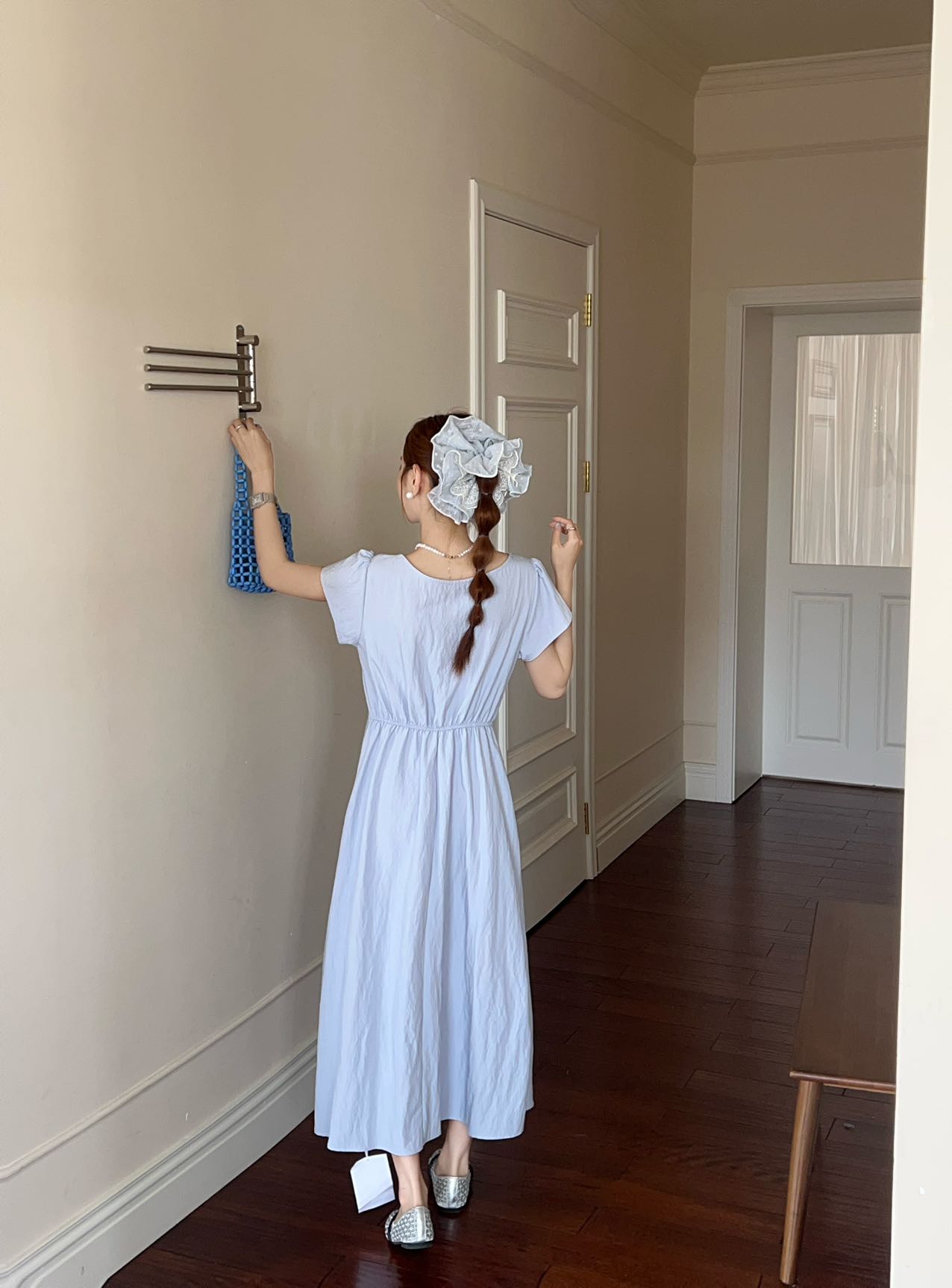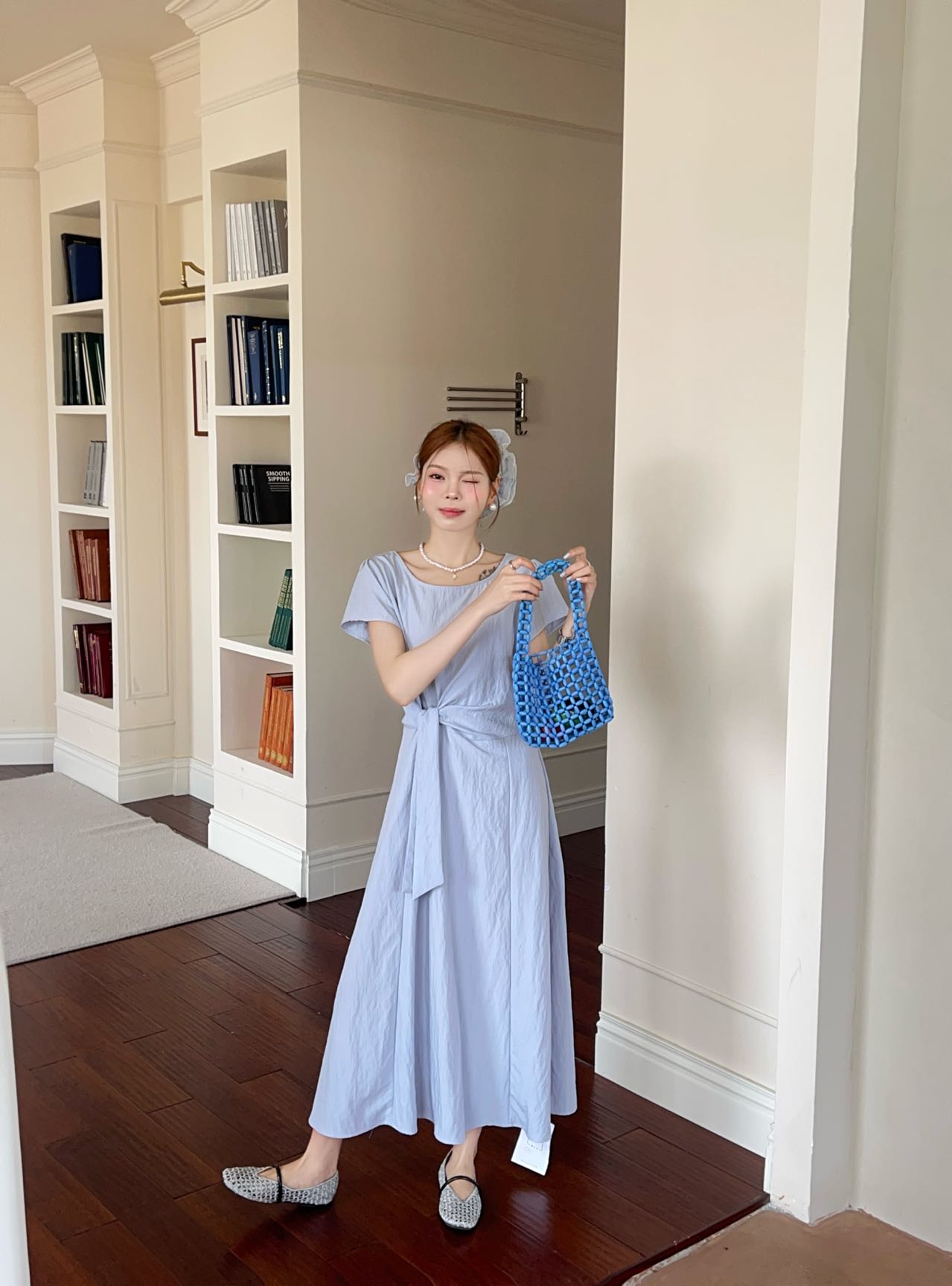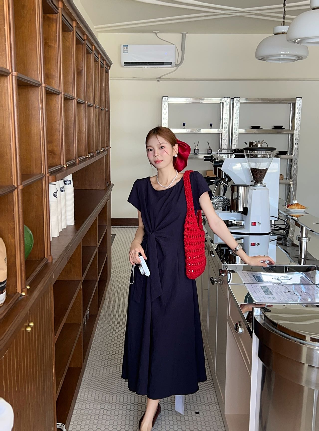【GZ】无忧购法式圆领系带收腰显瘦小个子休闲短袖连衣裙1952(截单后3-5天发货)
