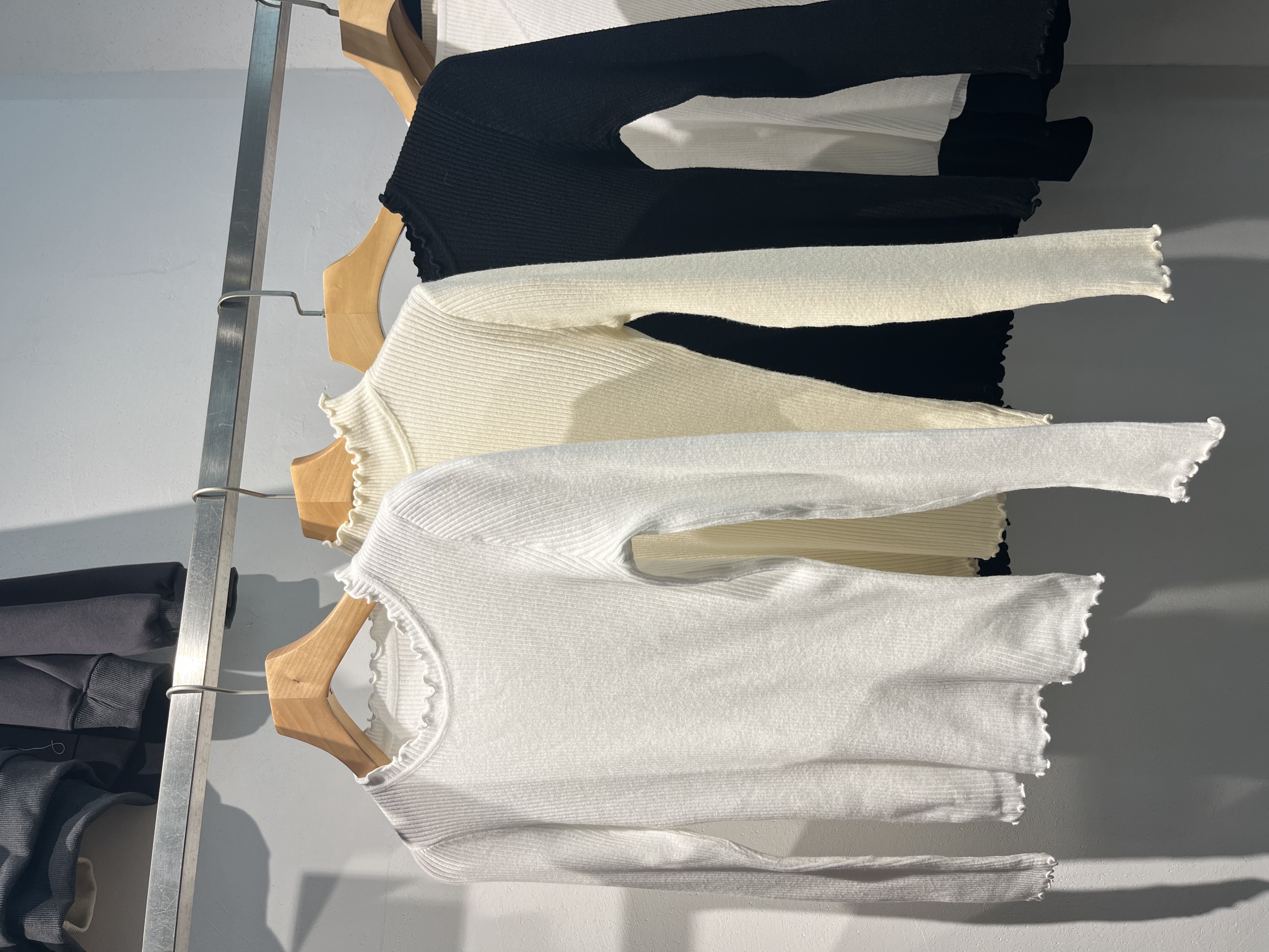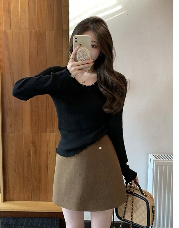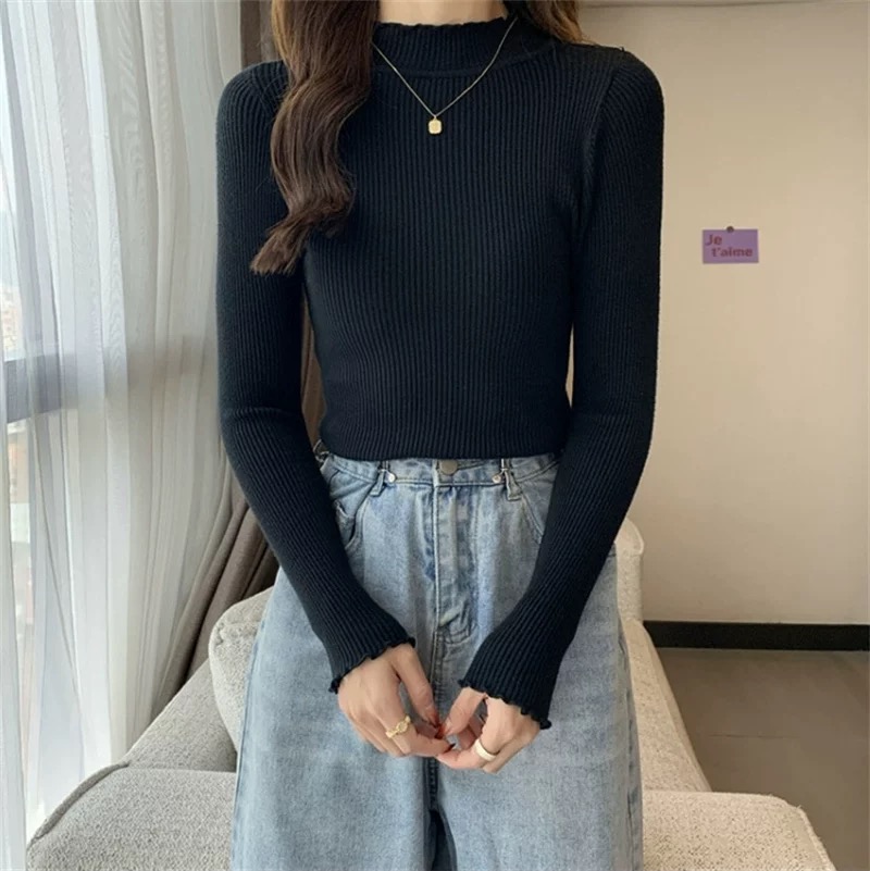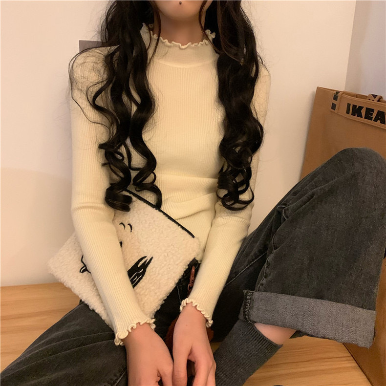 【GZ】无忧购韩版温柔百搭木耳边圆领/中领内搭修身显瘦针织小衫(截单后7天发货)25年清仓捡漏