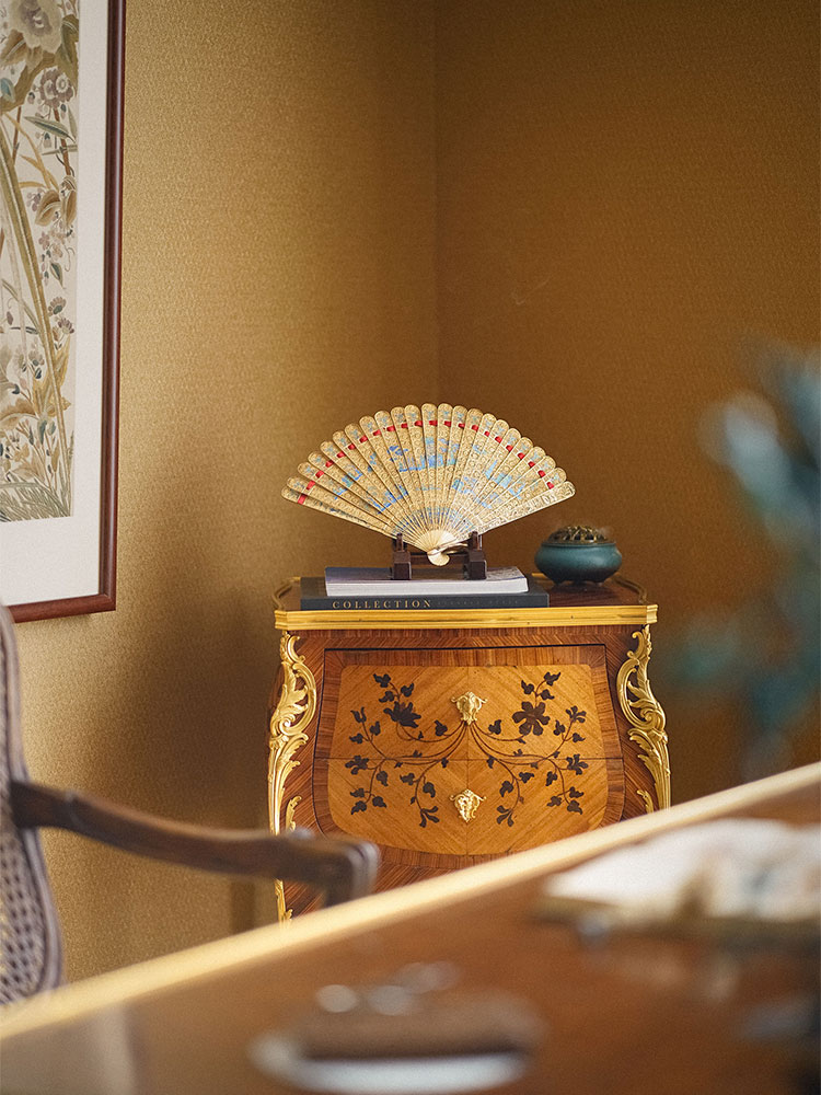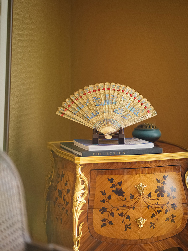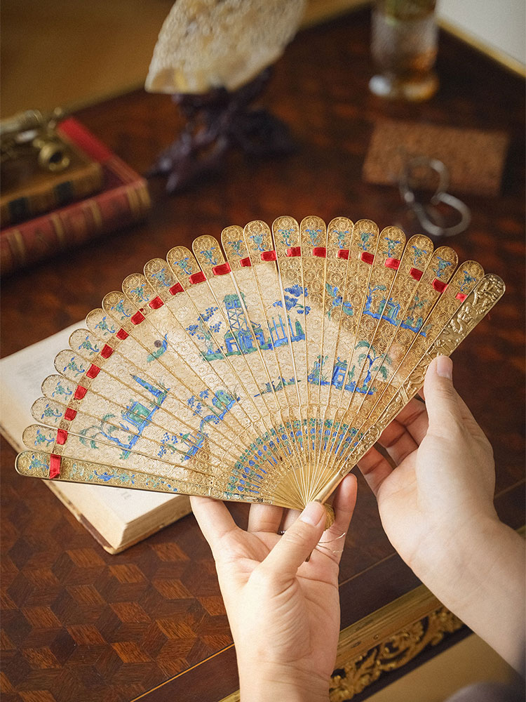 19世纪末广东十三行出品银鎏金累丝烧蓝古园林纹折扇