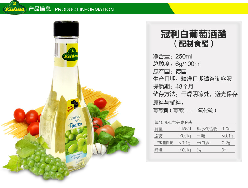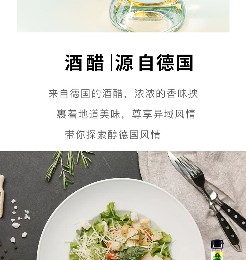 【中欧班列精选】德国冠利白葡萄酒醋 原装进口冠利0脂肪0添加白葡萄酒醋 500ml/瓶