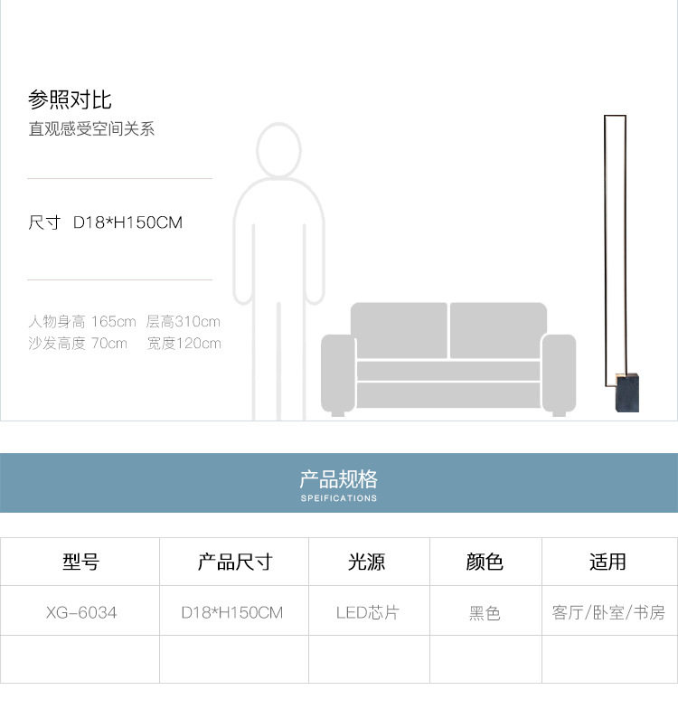 线条床头方形卧室设计师客厅艺术样板房后现代立式创意落地灯灯
