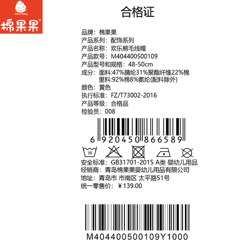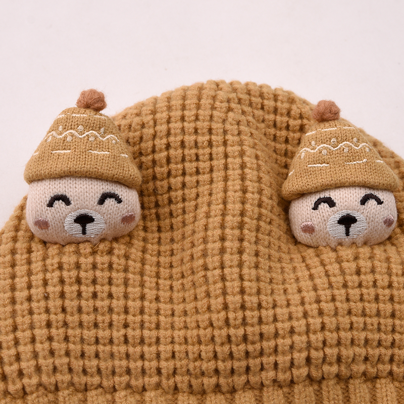 棉果果冬季新品男童女童可爱卡通欢乐熊毛线帽M404400500109