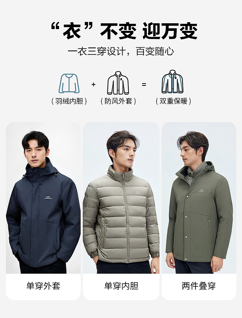 【门店新品】圣得西可拆内胆三合一羽绒服25冬季新款舒适休闲外套
