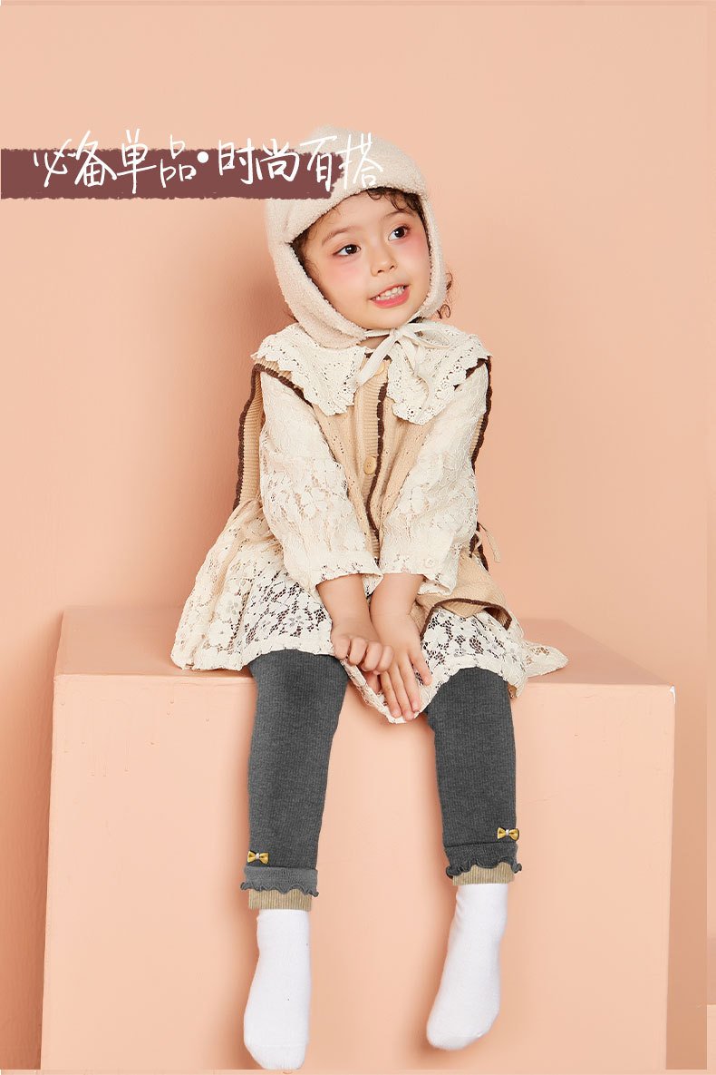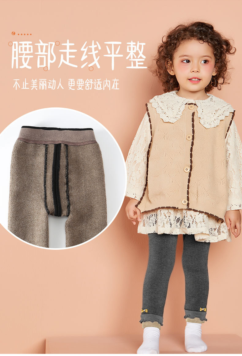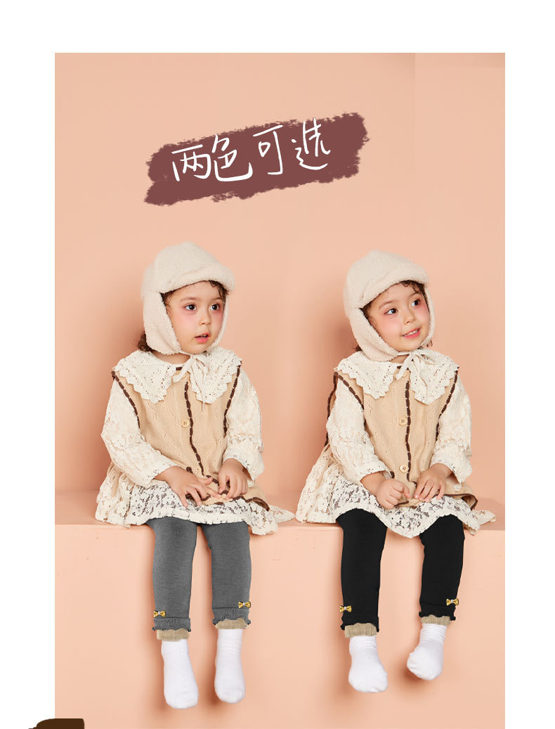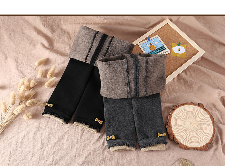 【母婴】童装秋冬新款儿童加绒一体裤宝宝婴儿保暖裤蝴蝶结条纹小童打底裤