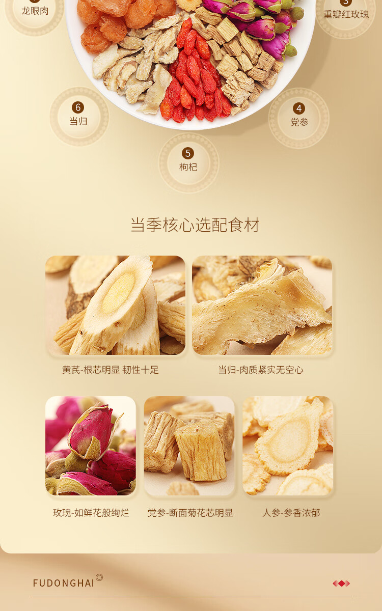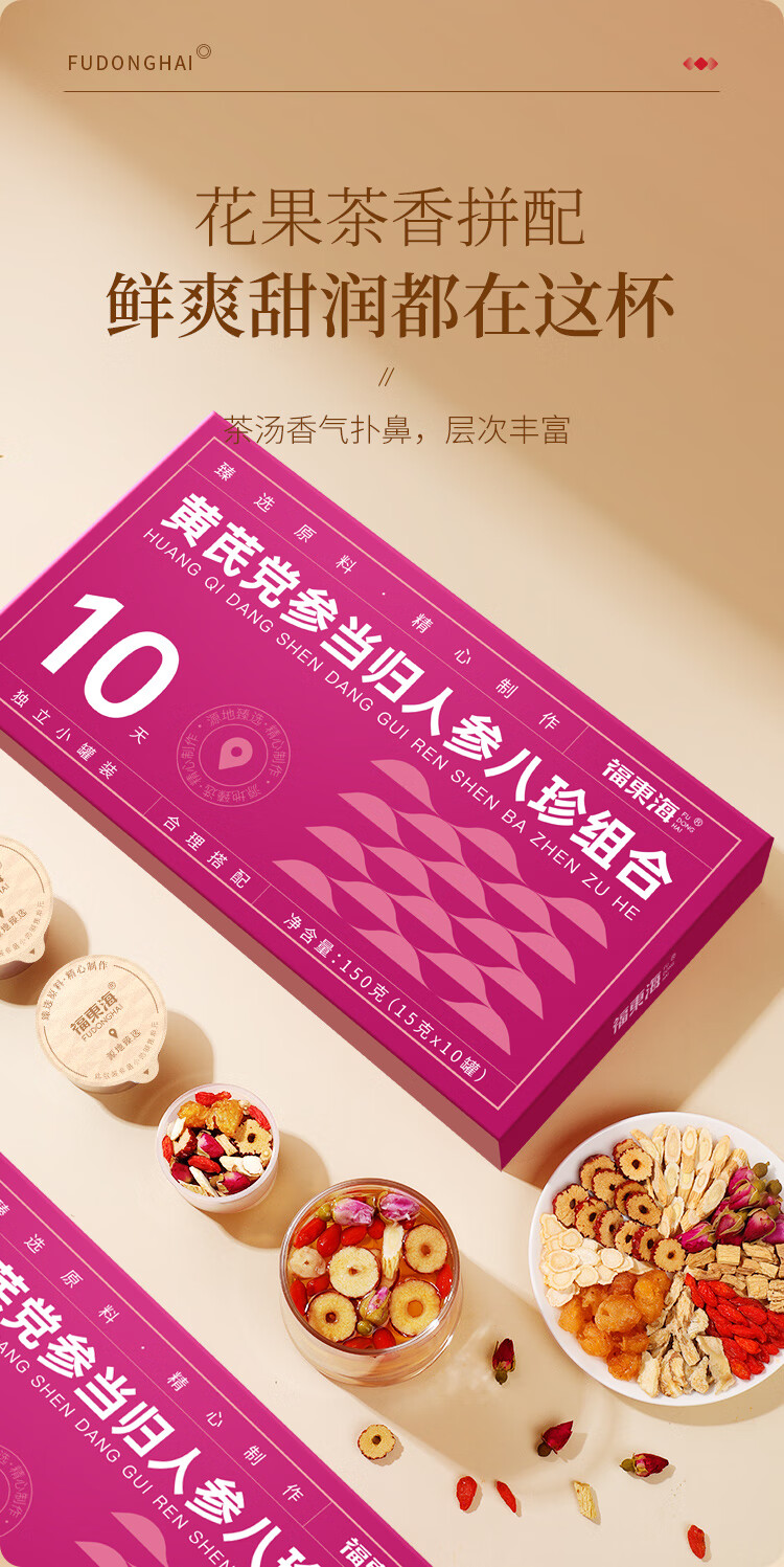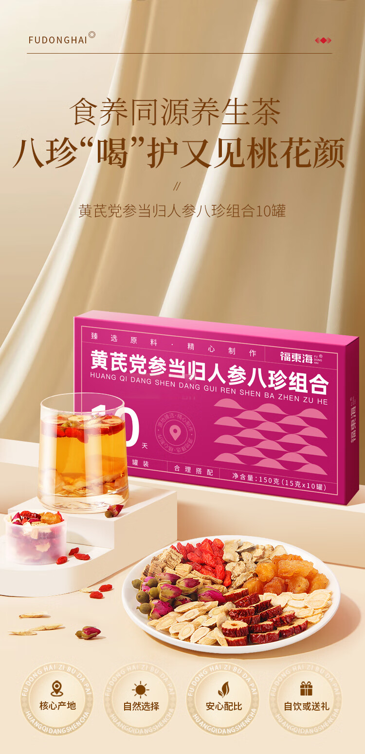 【福东海】 黄芪党参当归人参八珍组合茶150克