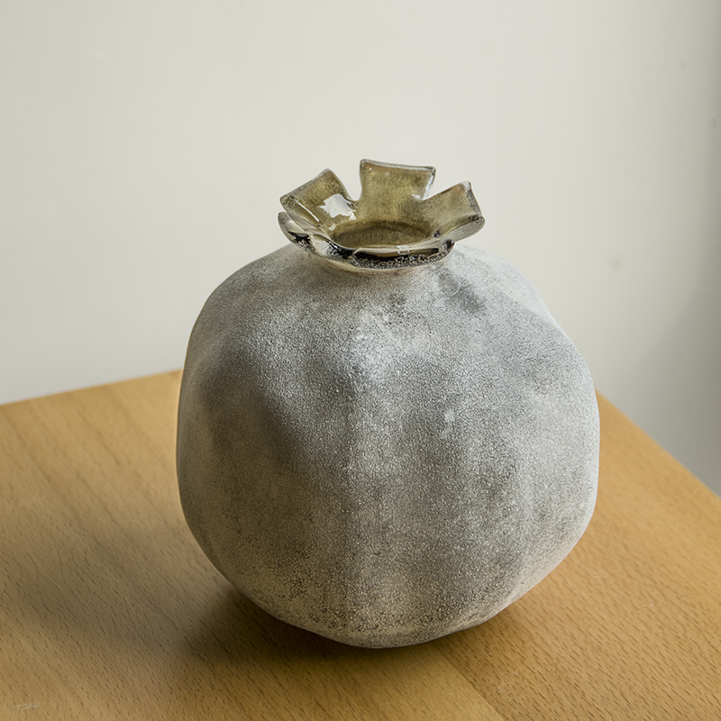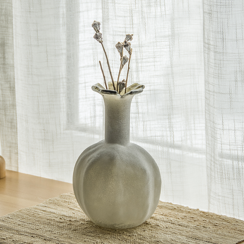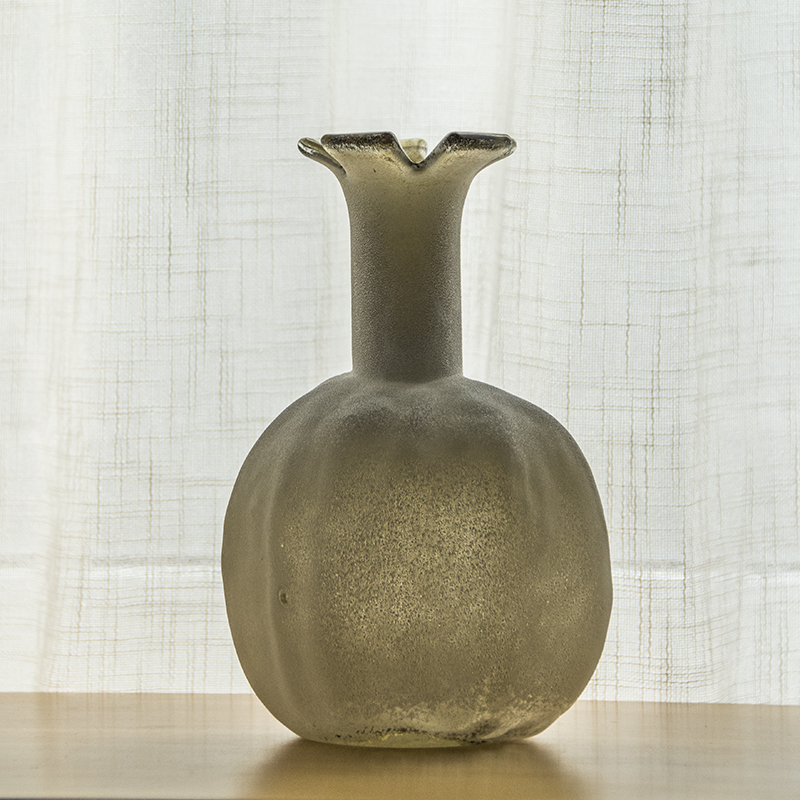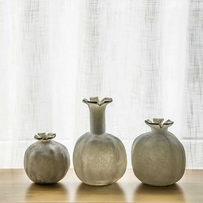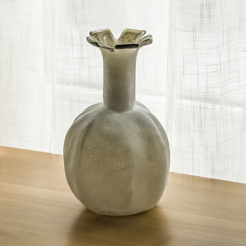 棕灰雪霜石榴小口玻璃花瓶花器摆件工艺品