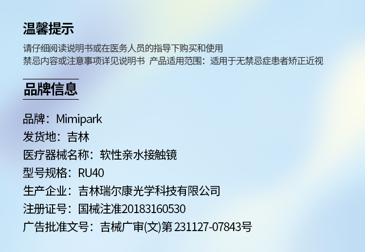 Tips:💕 正装为一盒两片装,度数不同需拍2盒哦!多盒可混搭!