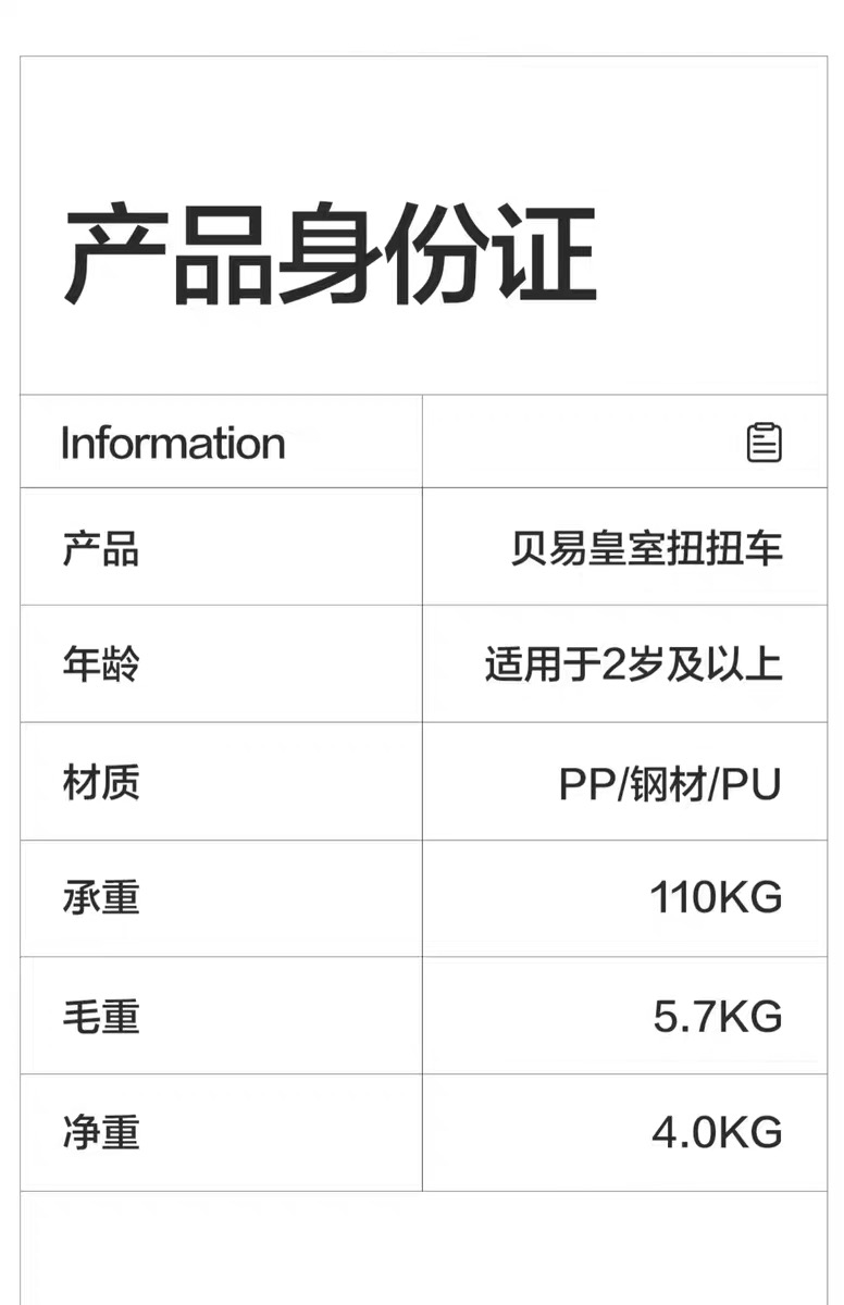 【品牌直供】贝易皇室扭扭车(带拖斗)