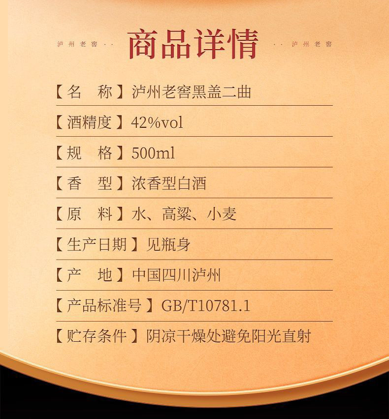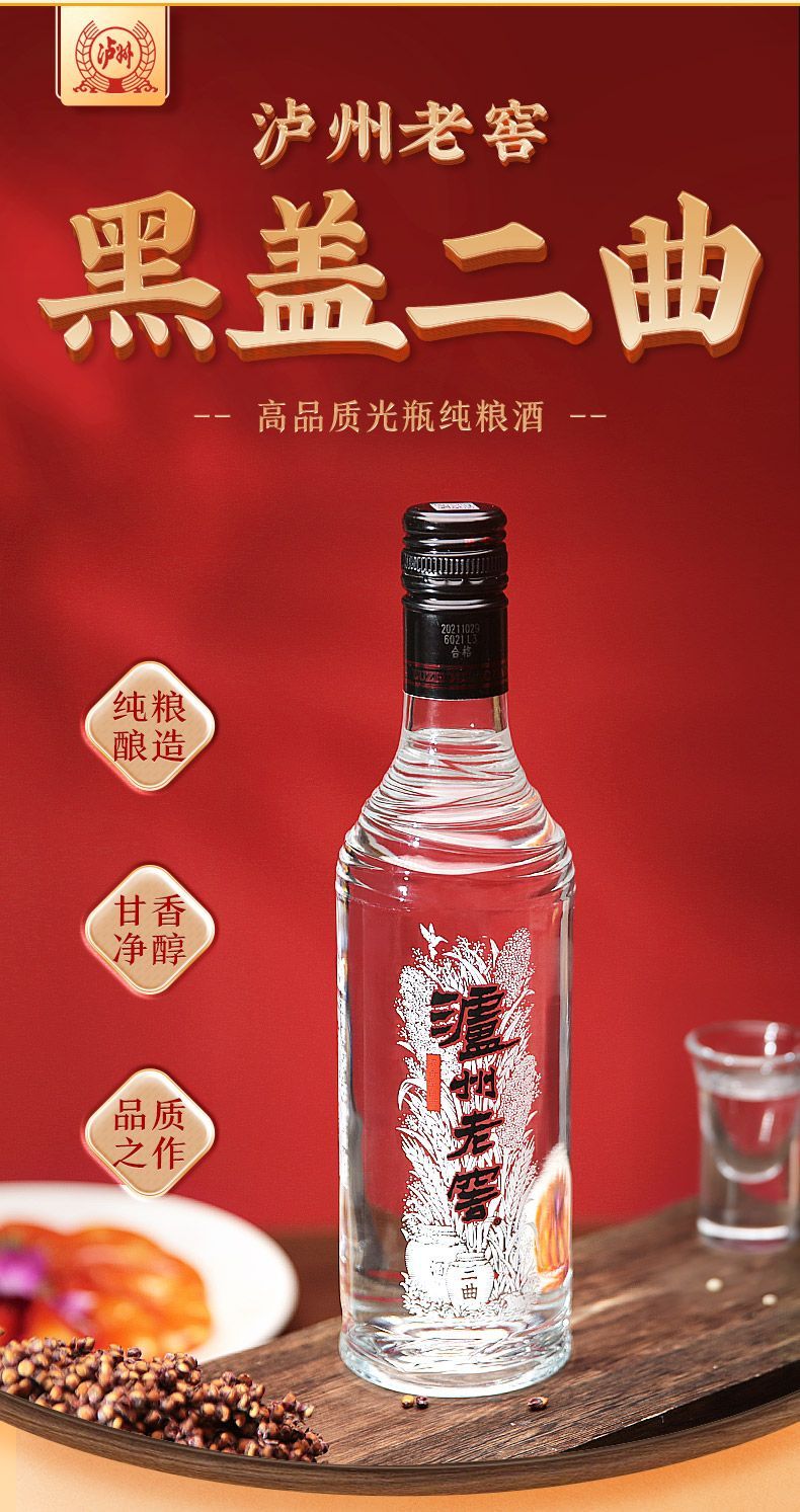 泸州老窖黑盖二曲纯粮浓香型光瓶装 42度 500ml*12瓶 整箱装 京东快递