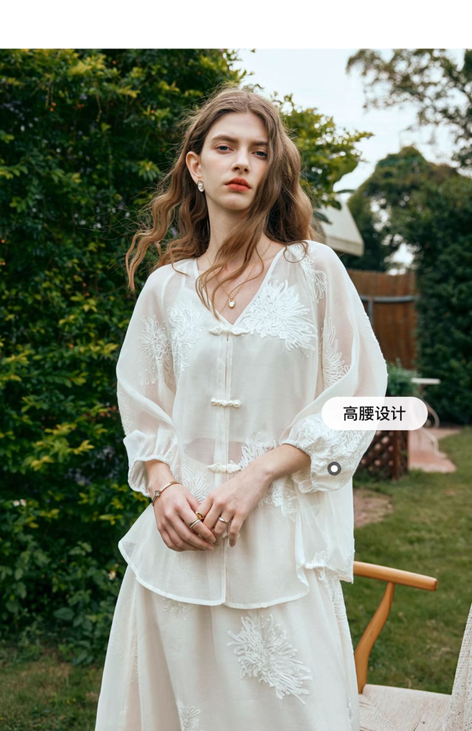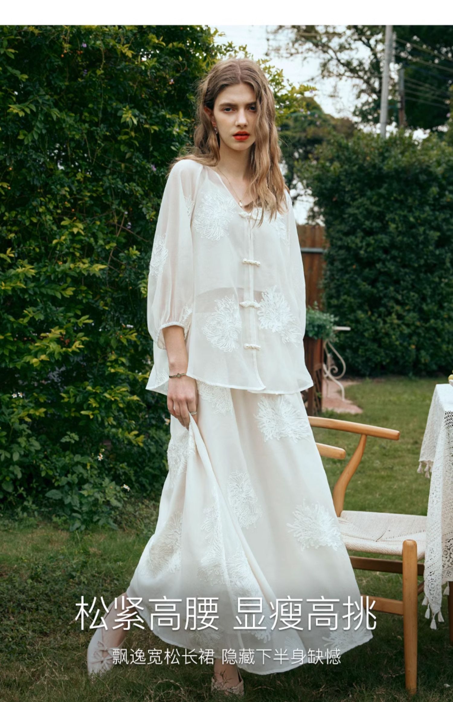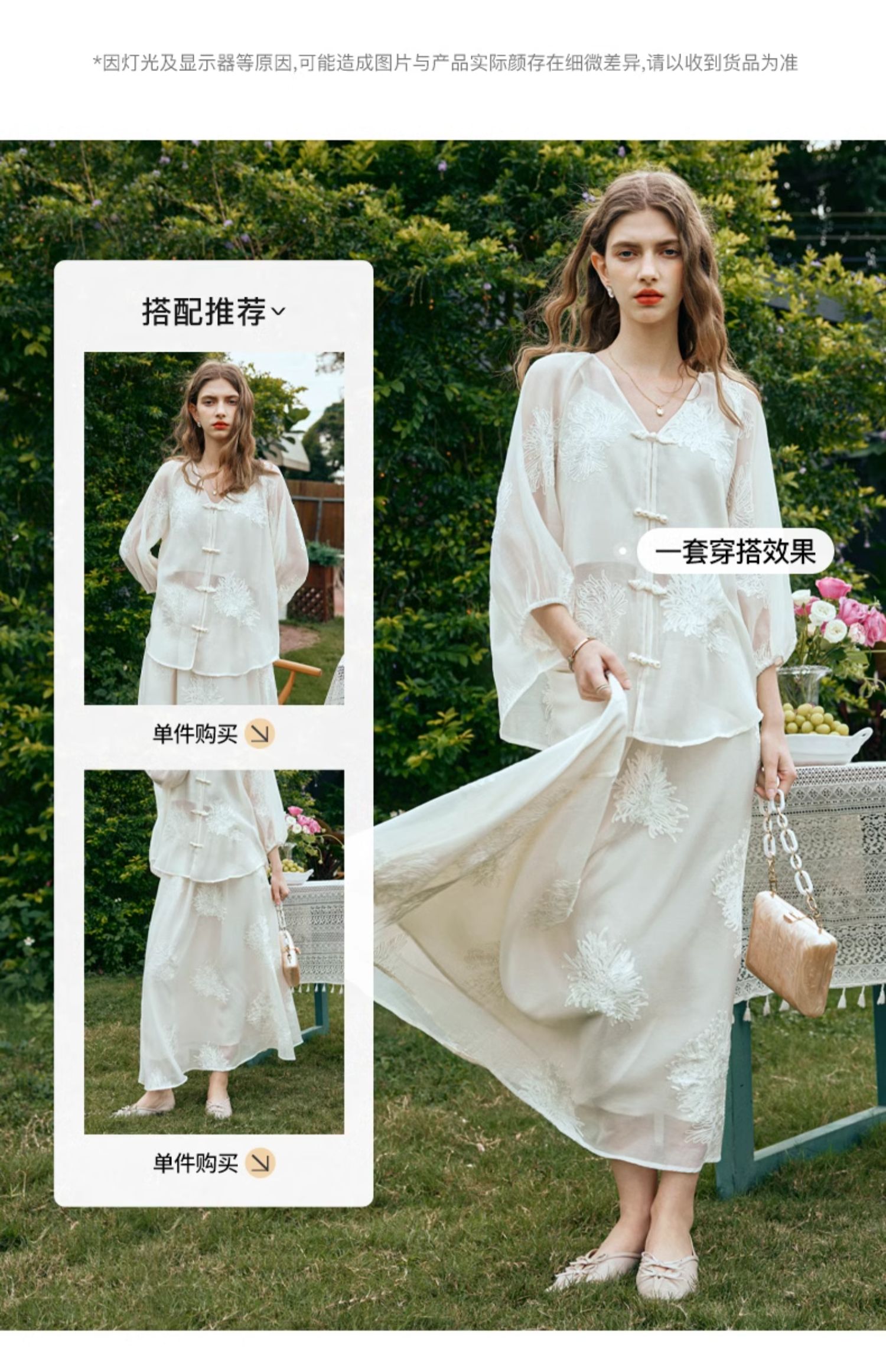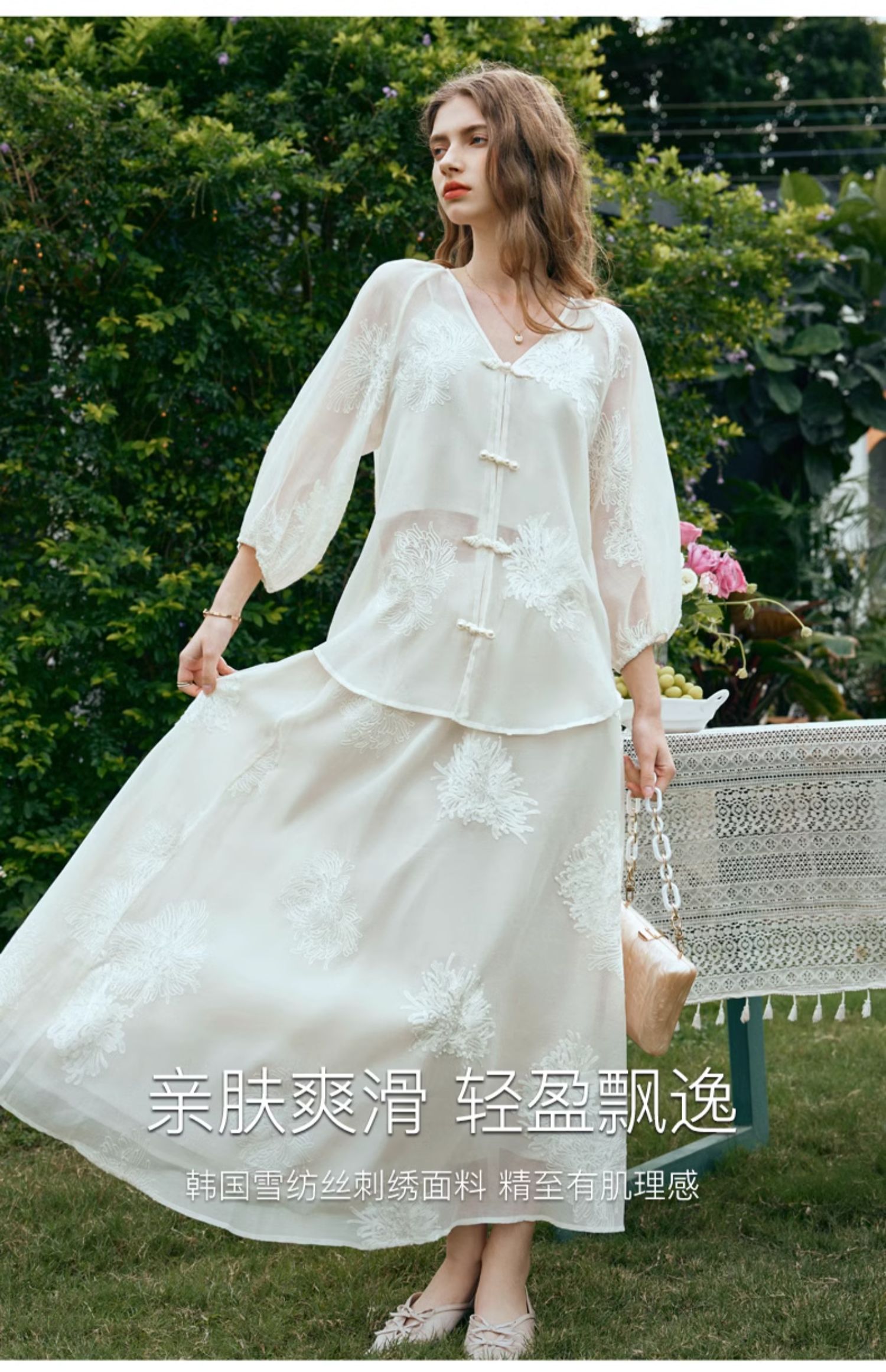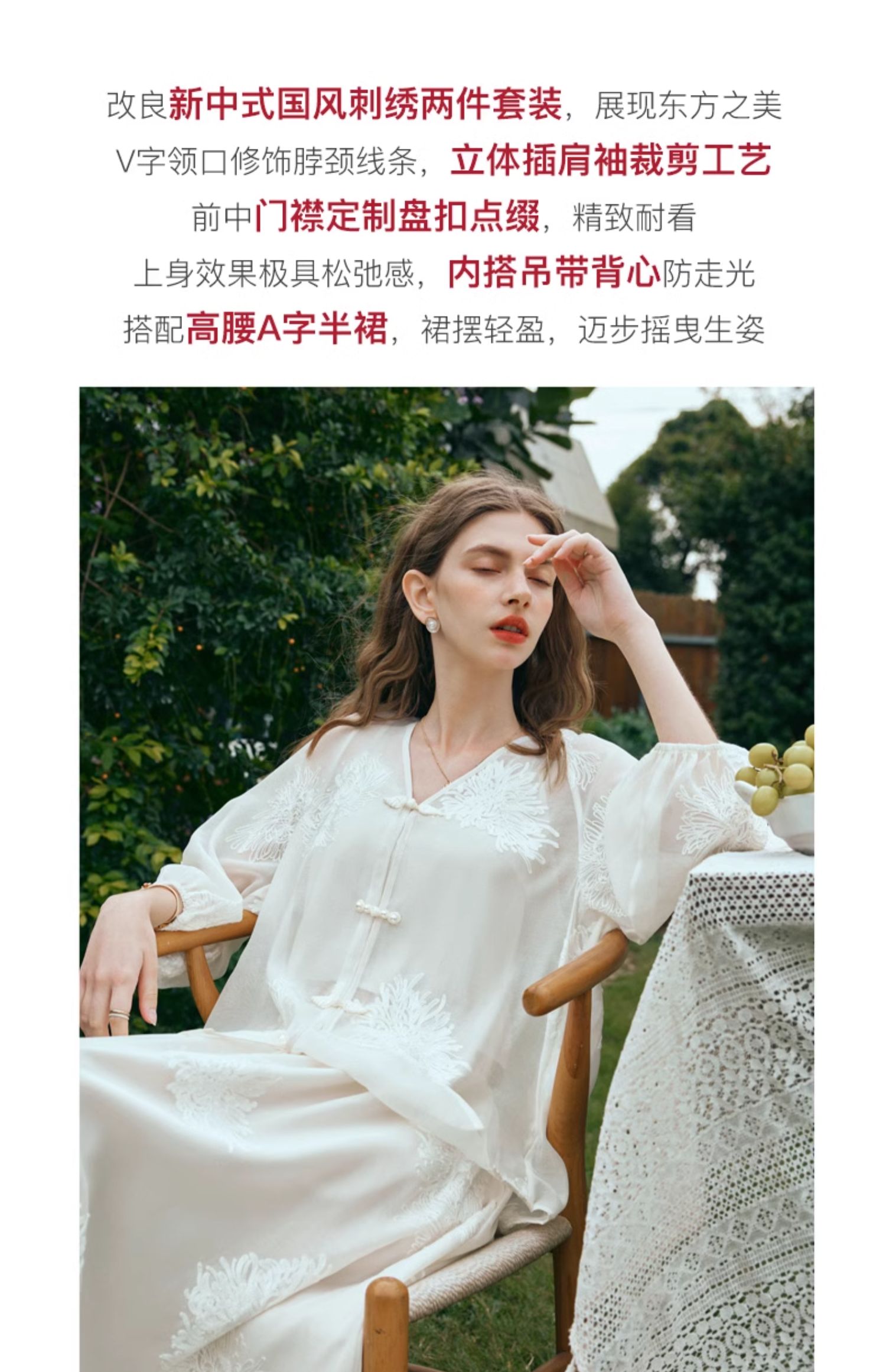OLrain欧芮儿新中式时尚套装女早春2024年新款时尚国风刺绣两件套