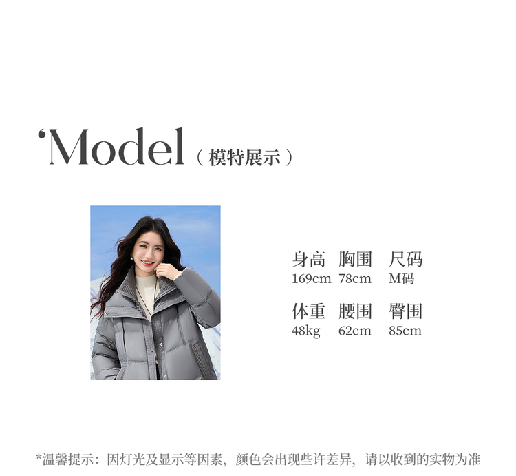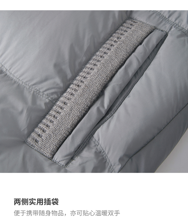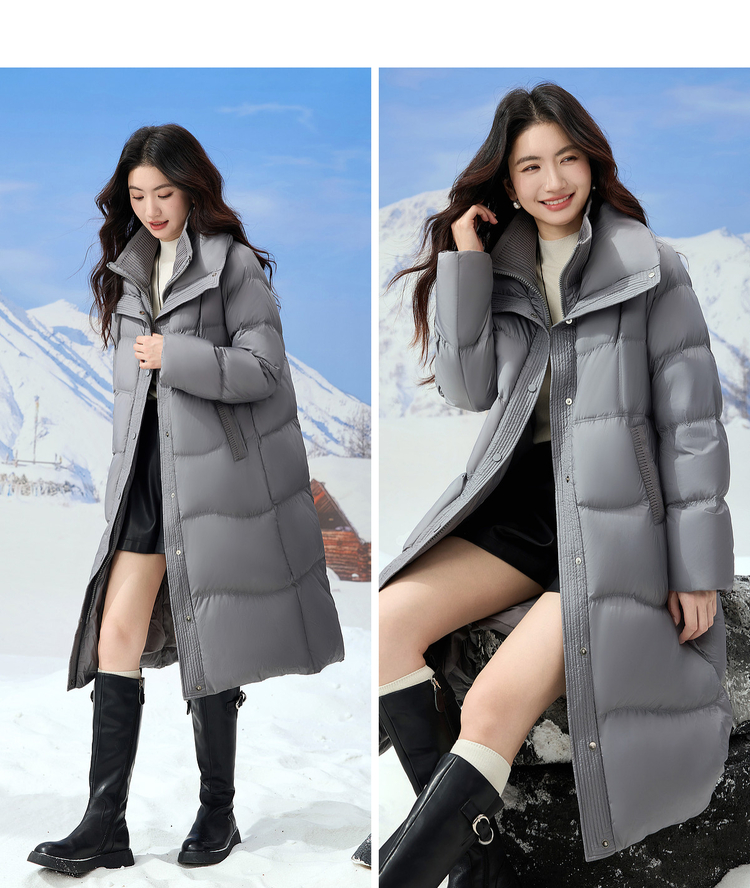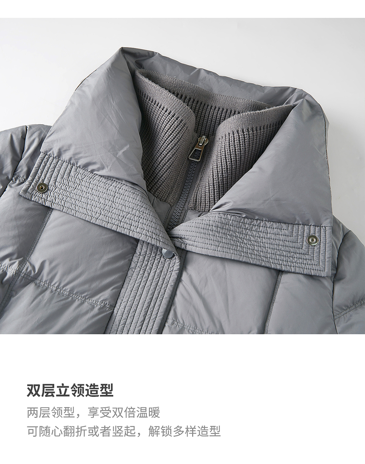 【年货节】熙世界灰色羽绒服女长款冬季2025新款假两件双层领白鸭绒防风外套