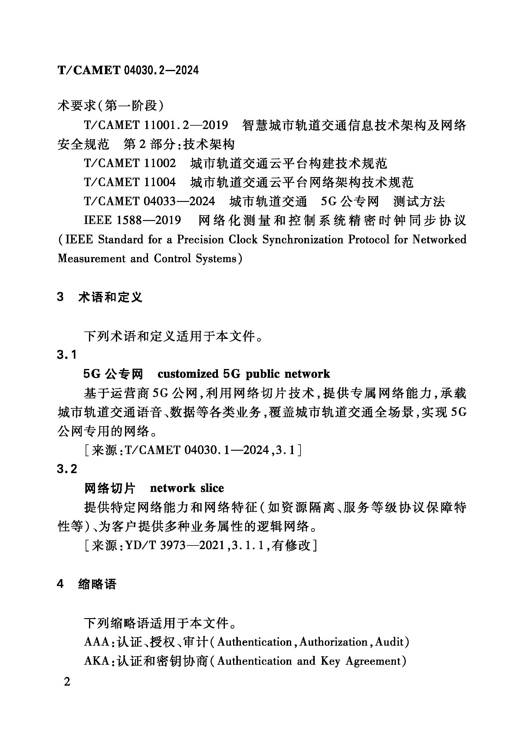 7105 城市轨道交通 5G公专网总体规范 第2部分:总体架构及系统需求(T/CAMET 04030.2-2024)