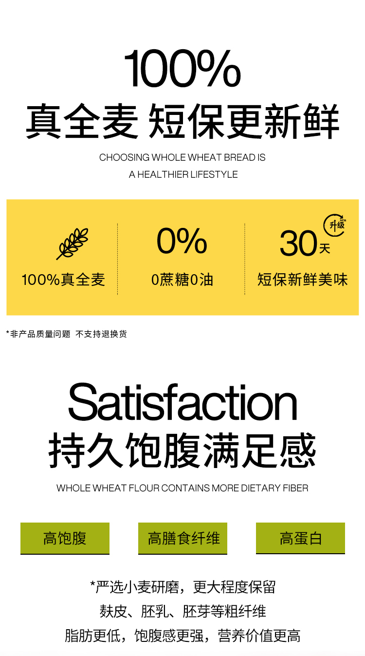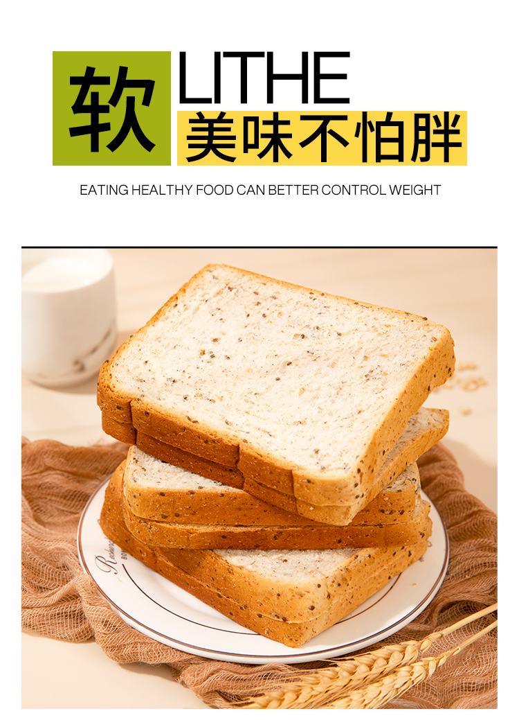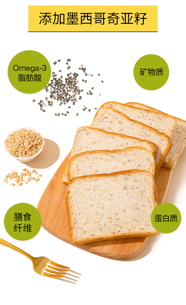 轻食兽奇亚籽全麦0脂面包 持久饱腹真全麦 够新鲜