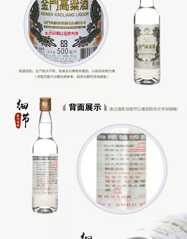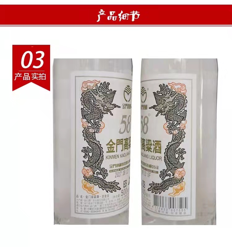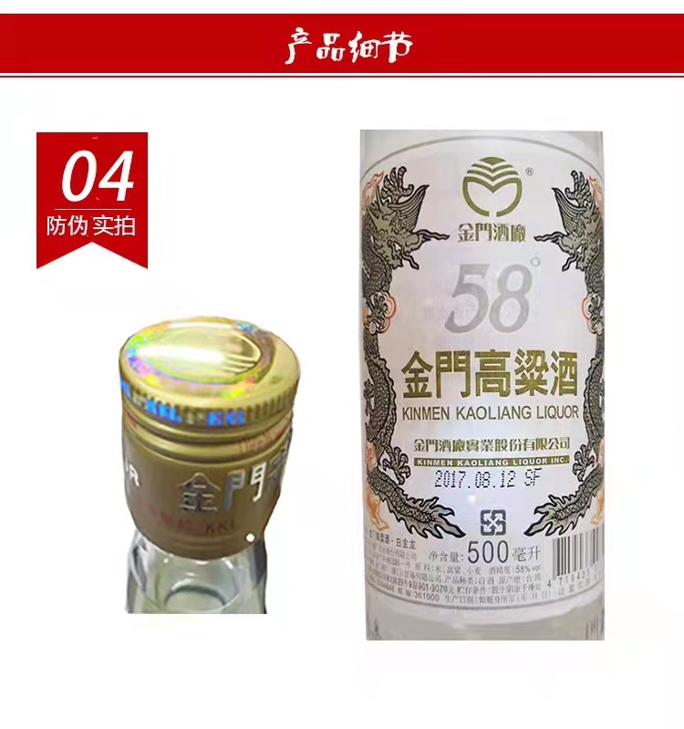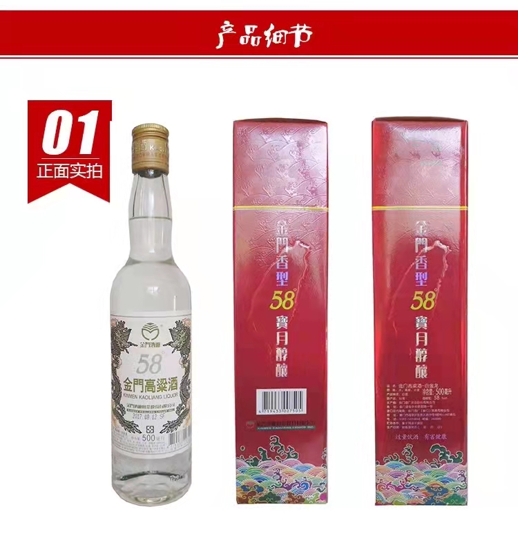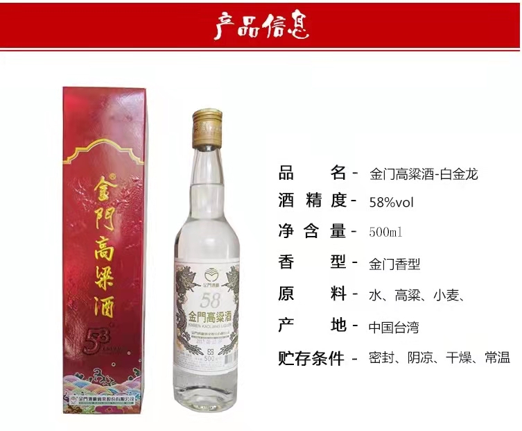 金门高粱酒白金龙(红盒)58度 500ml