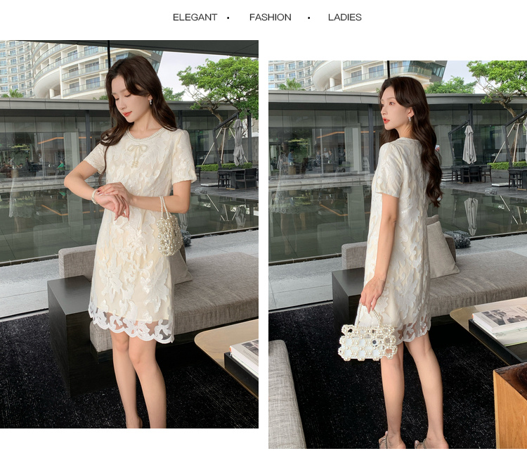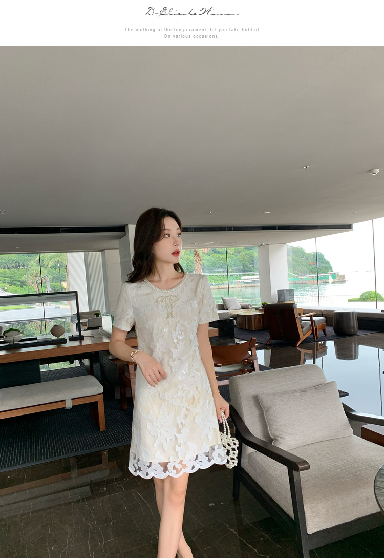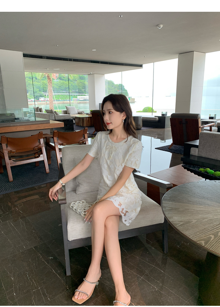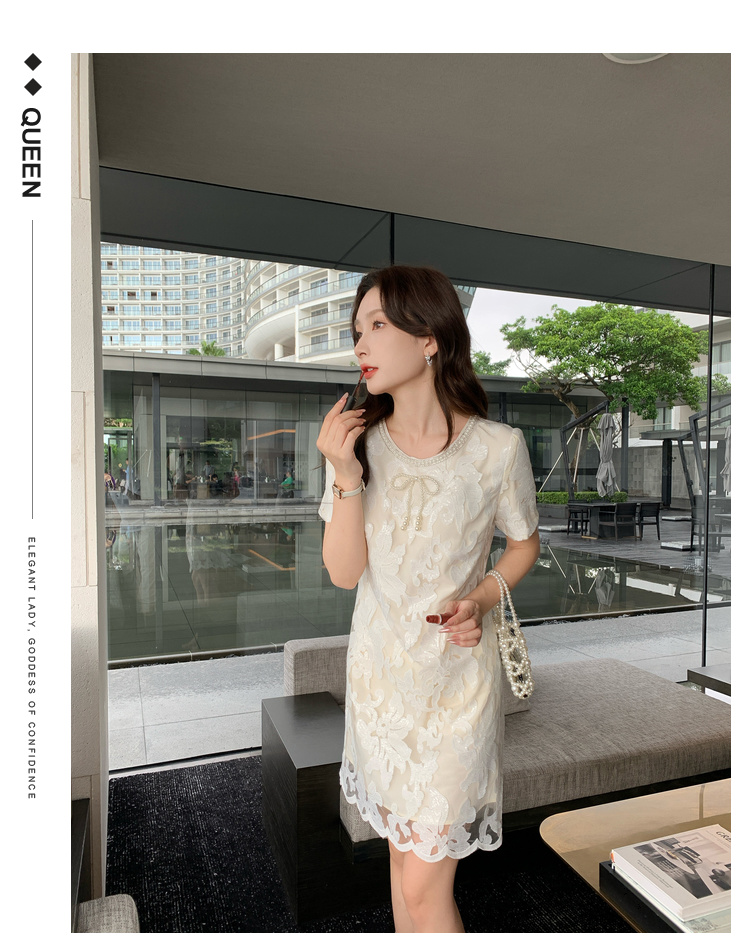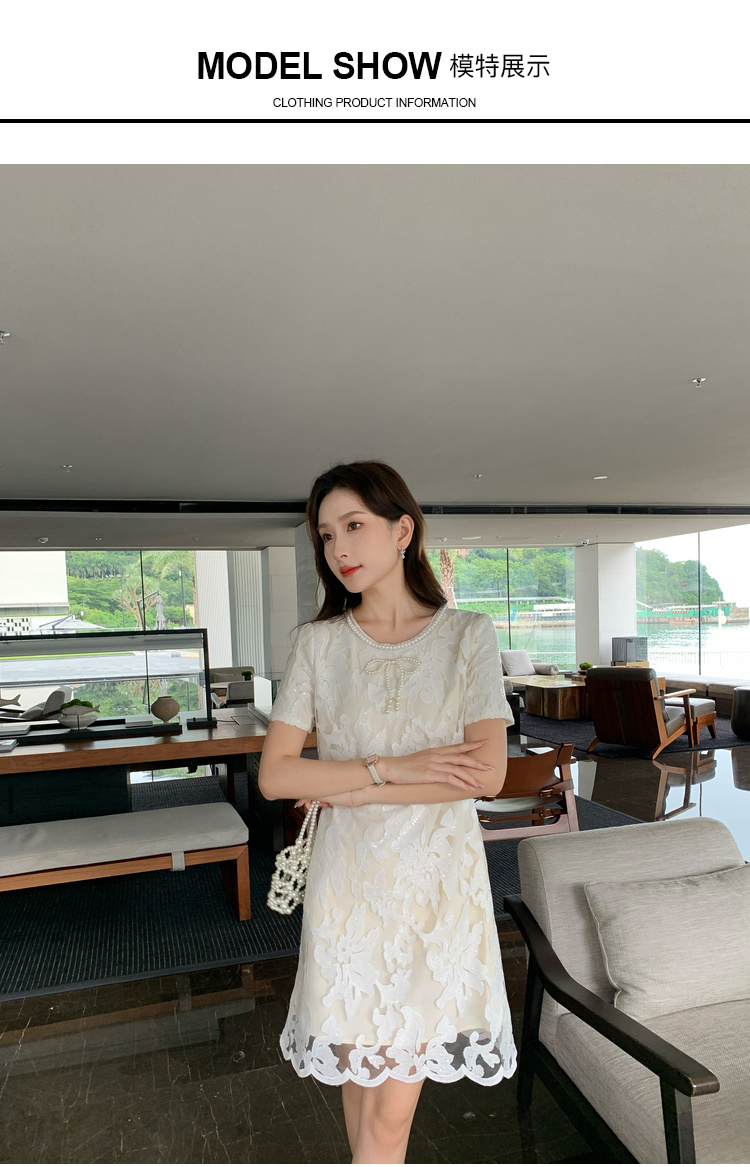 [奢姿轻奢系列]大码女装2024夏季蝴蝶结钉珠裙子胖妹妹时尚连衣裙8942810046