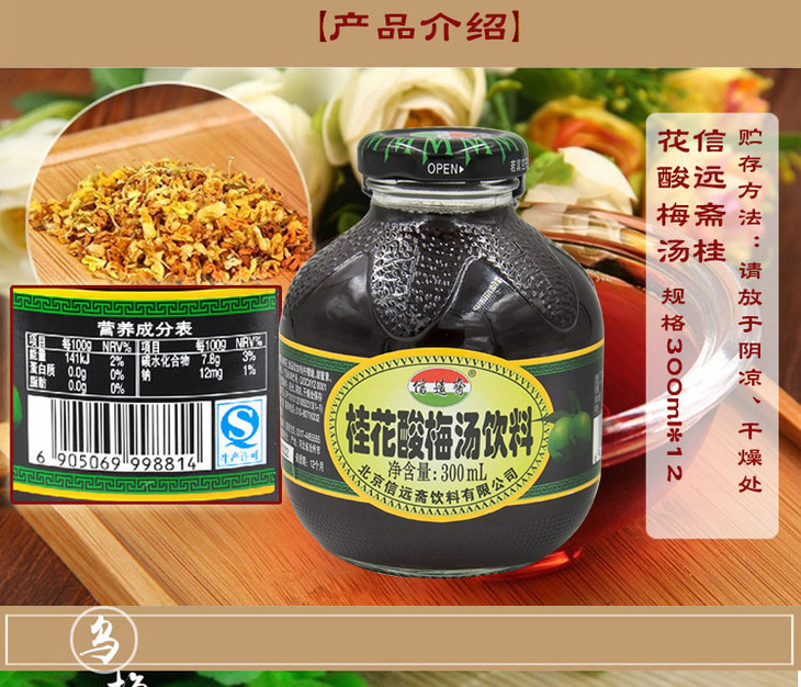 信远斋 桂花酸梅汤 乌梅汁 饮料300ml*12 整箱 老北京 饮品