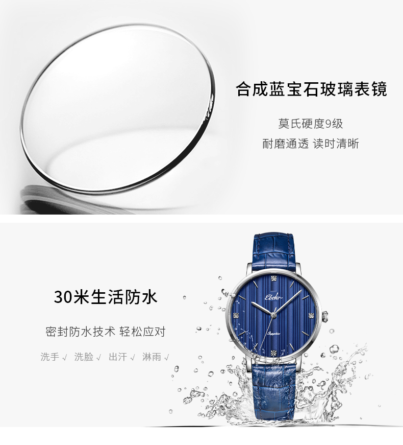 依波表手表EBOHR情侣款男表女表机械表腕表防水皮带日历3617
