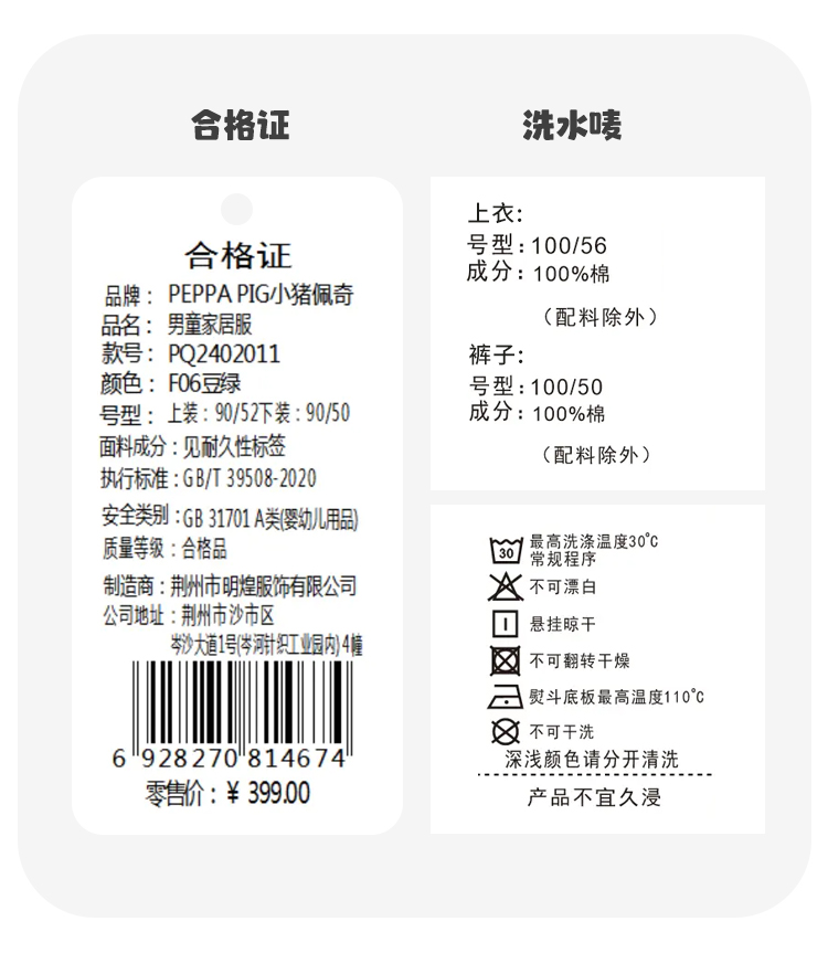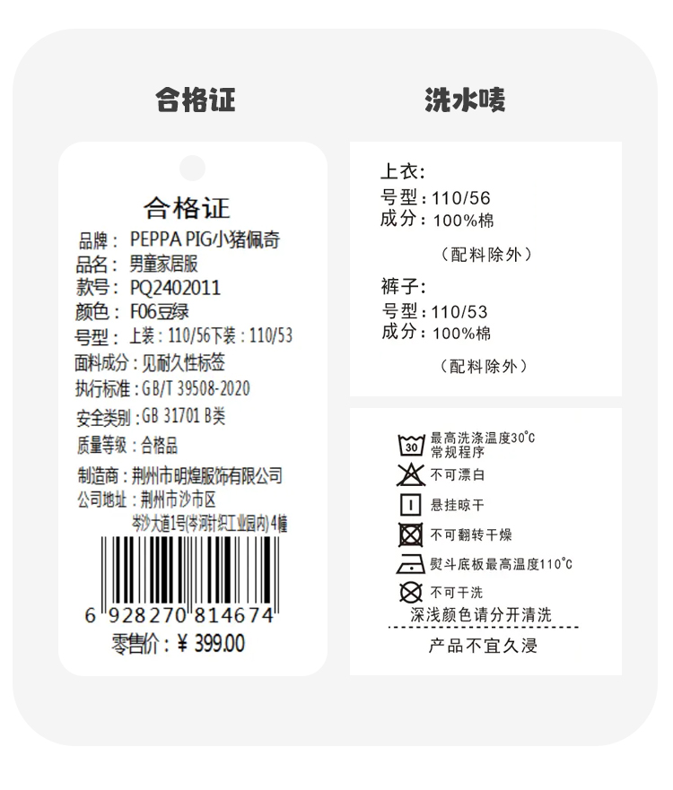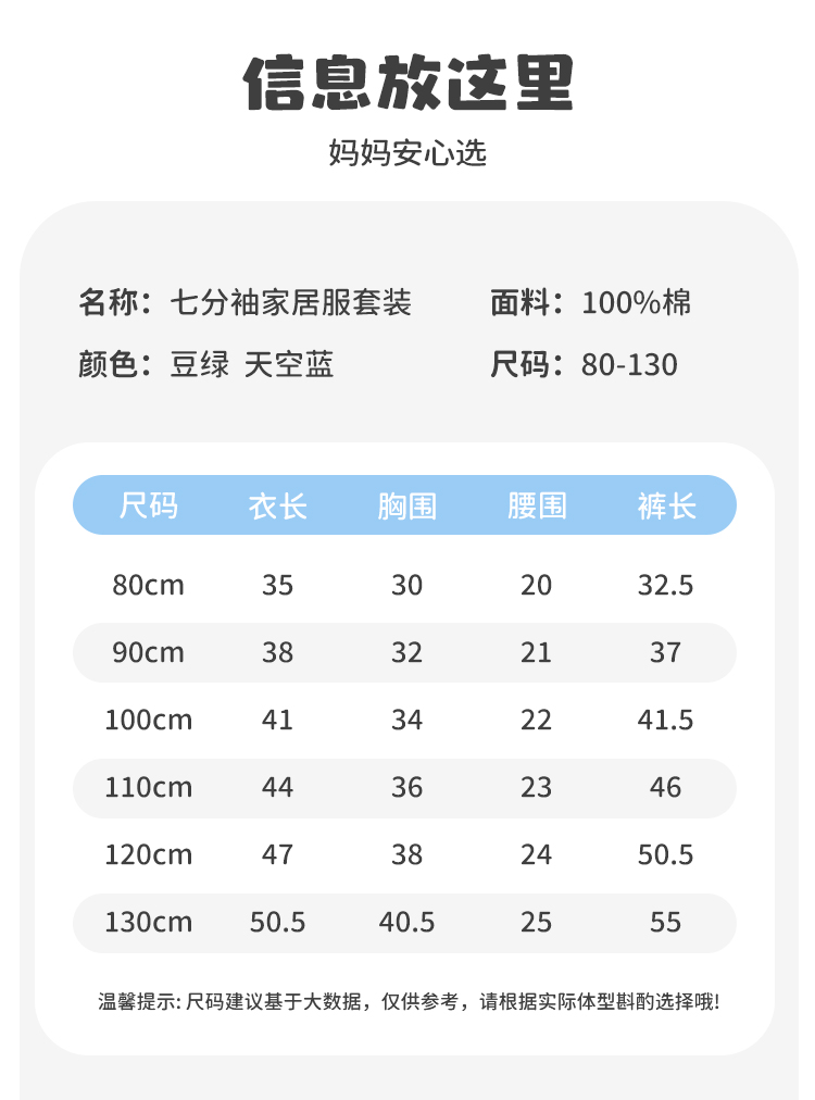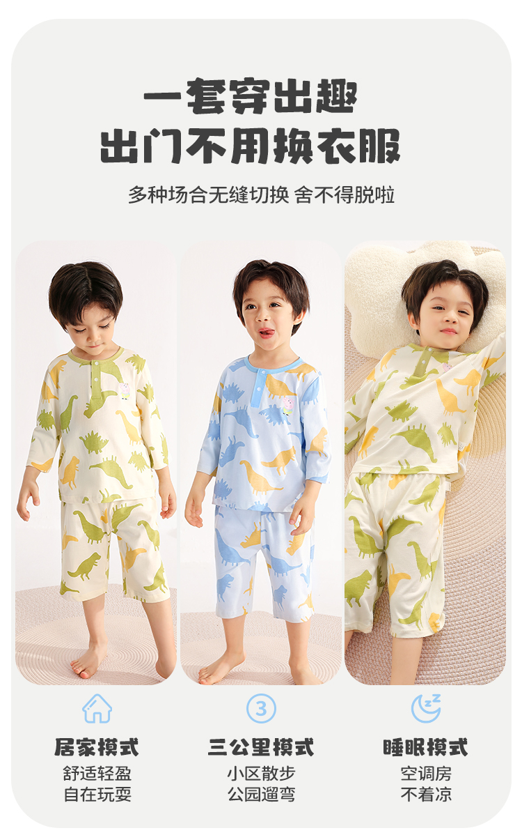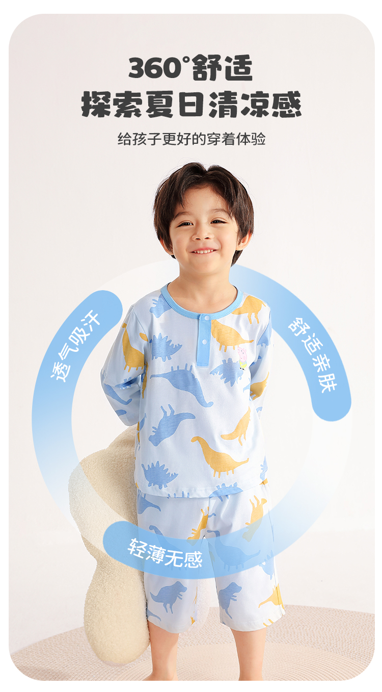 【80-130】【小猪佩奇】男童夏季七分袖短裤家居服套装
