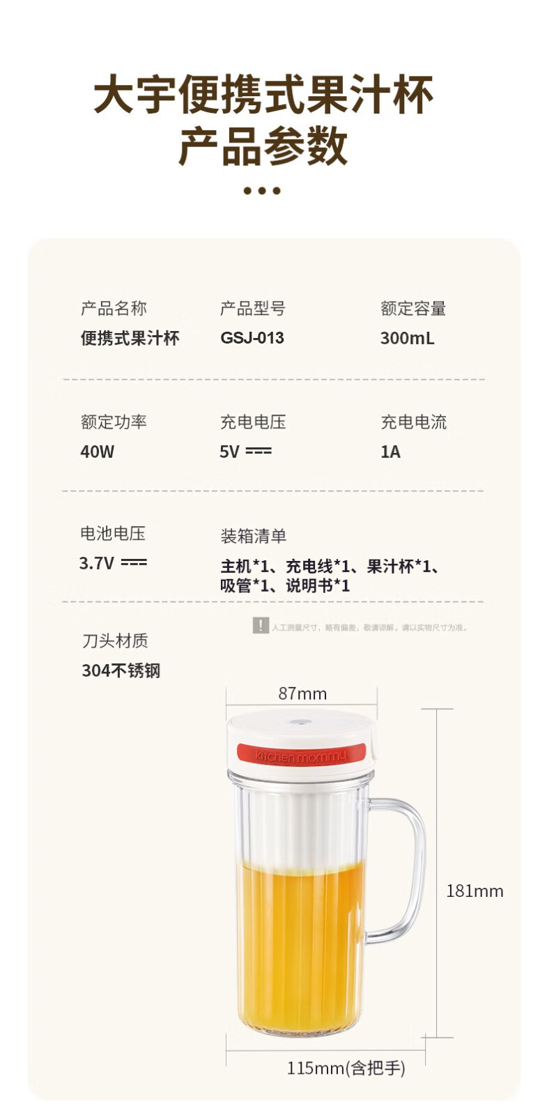 厨创妈咪便携果汁杯_电动榨汁杯GSJ-013【K】
