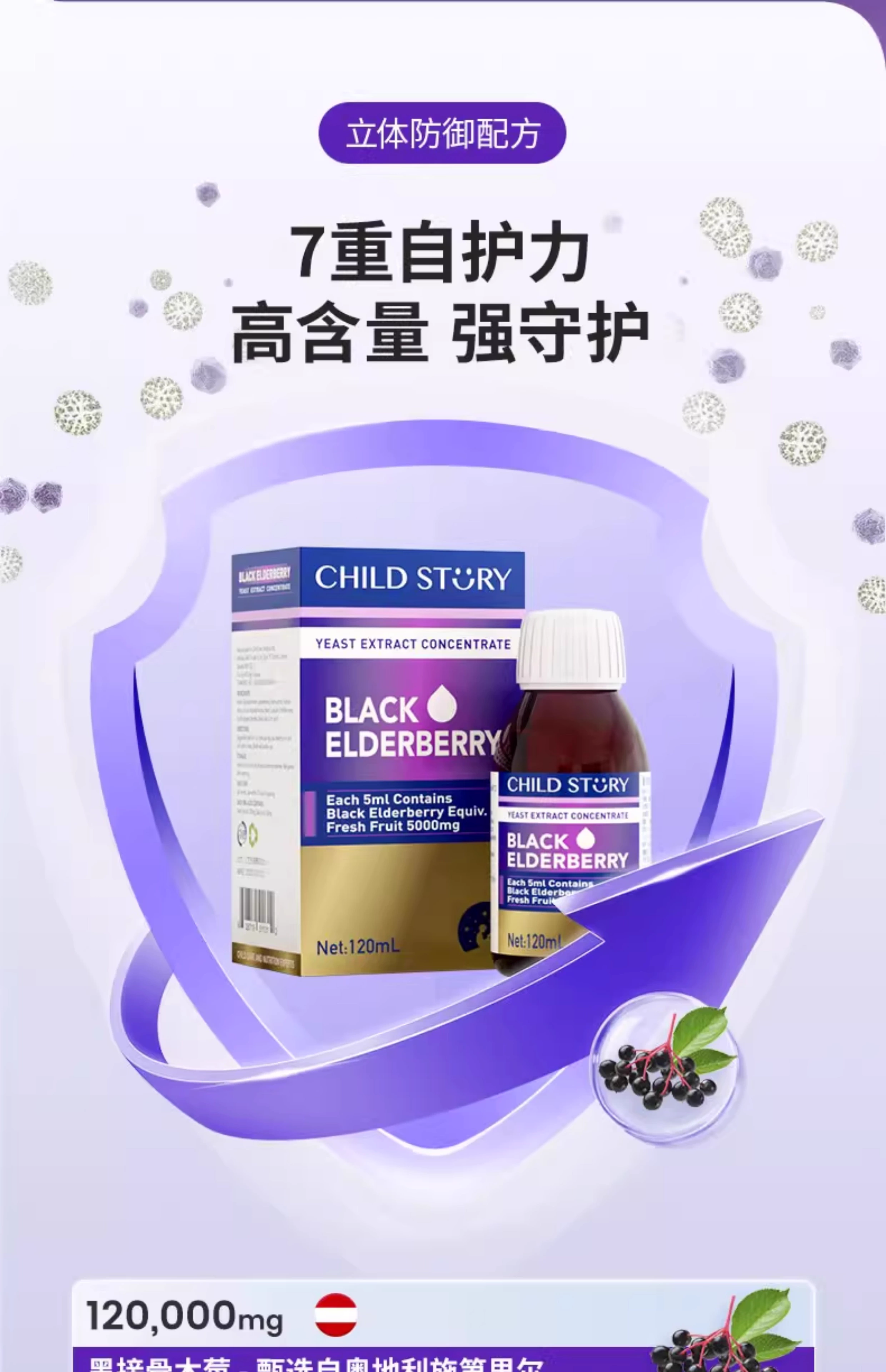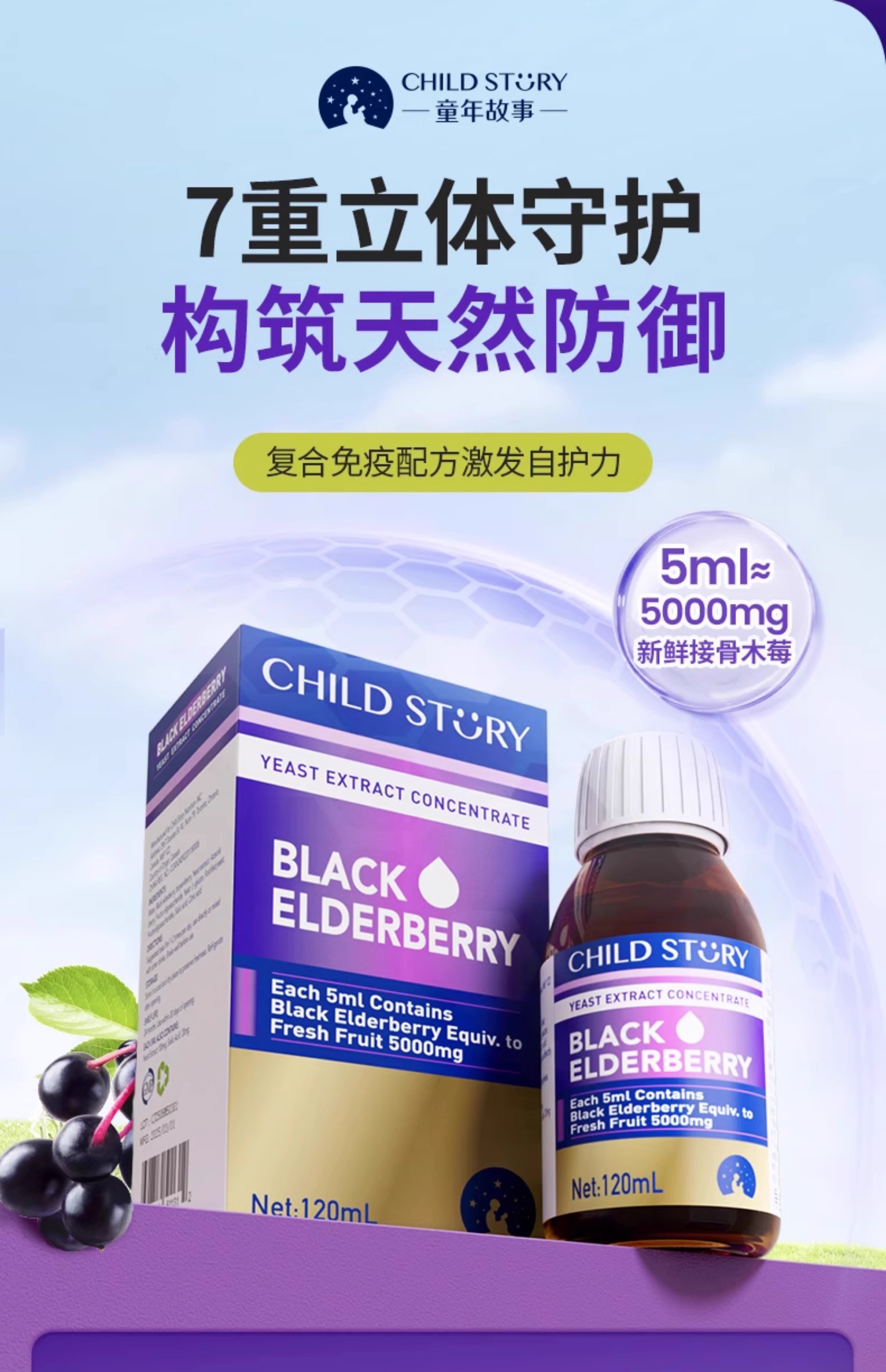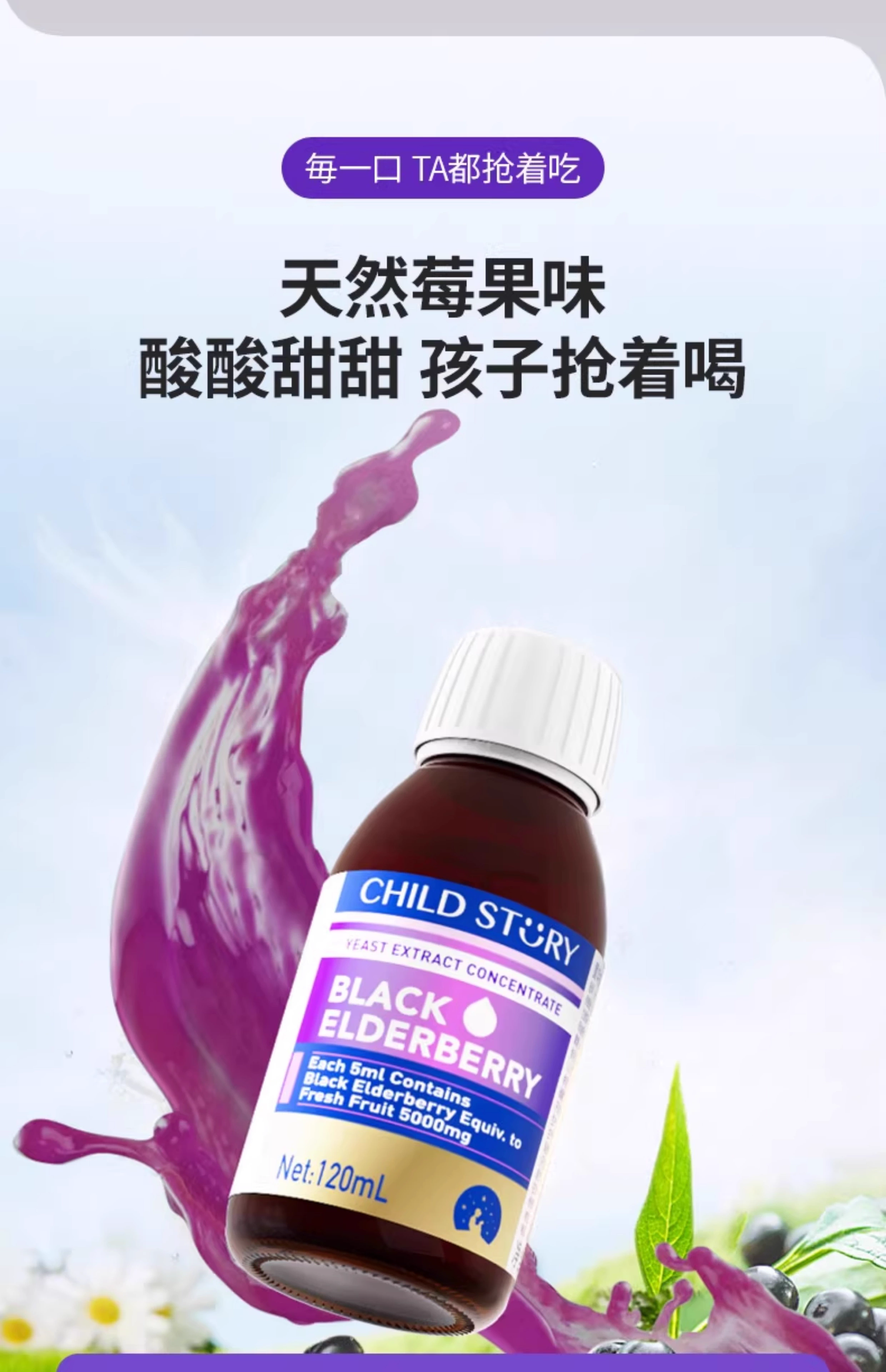 童年故事 黑接骨木莓酵母抽提物滴剂儿童补充维生素c糖浆 120ml
