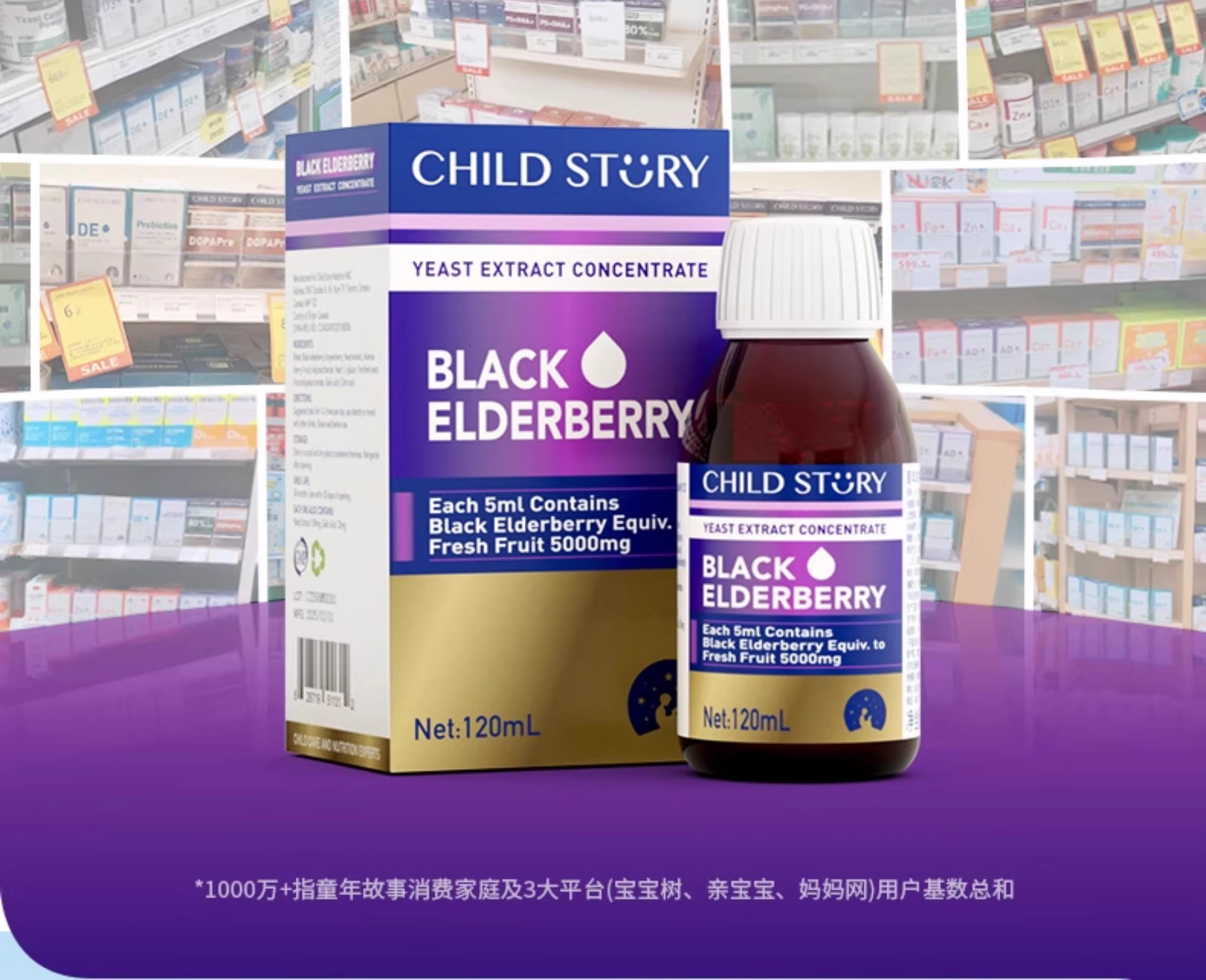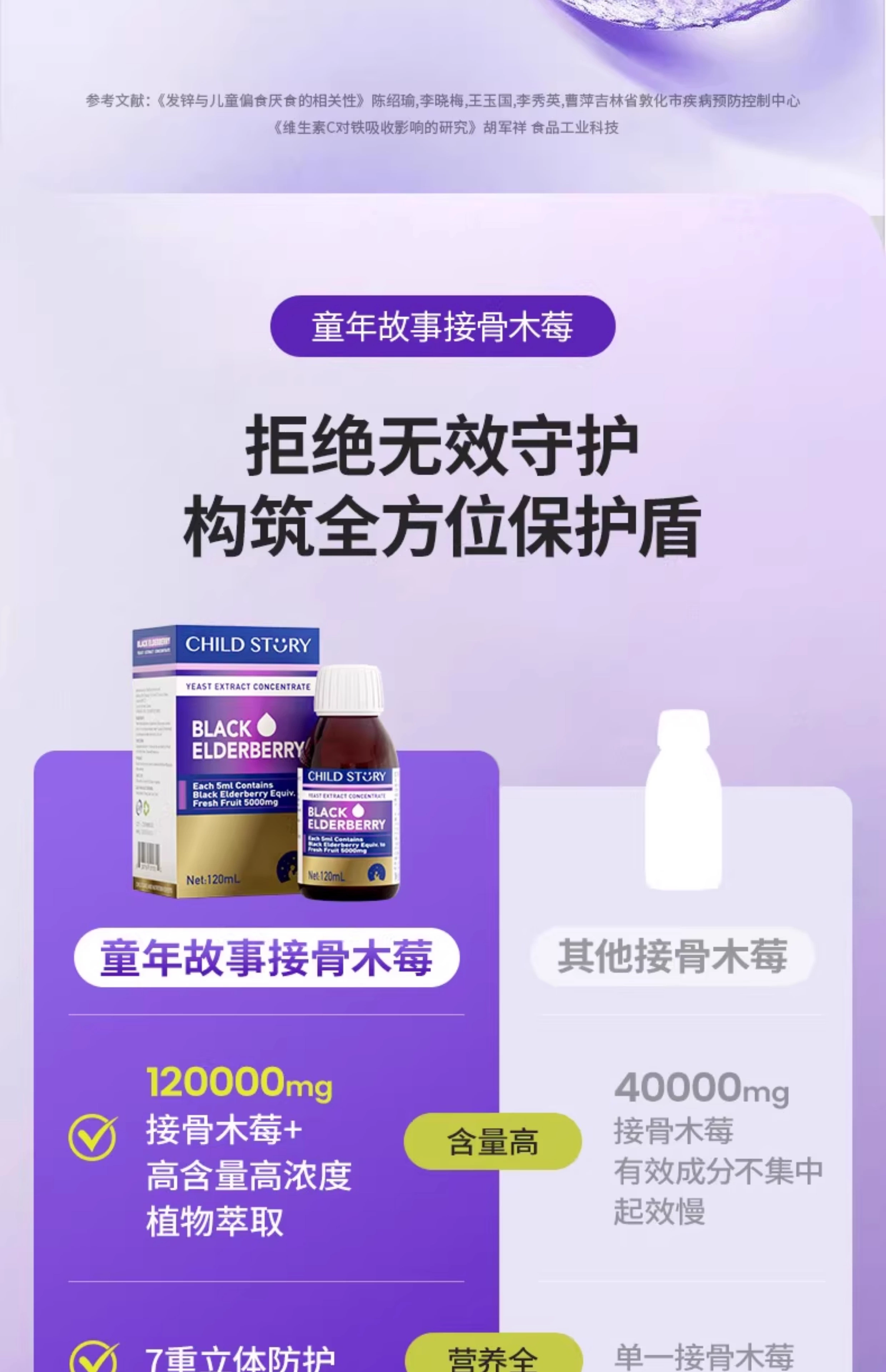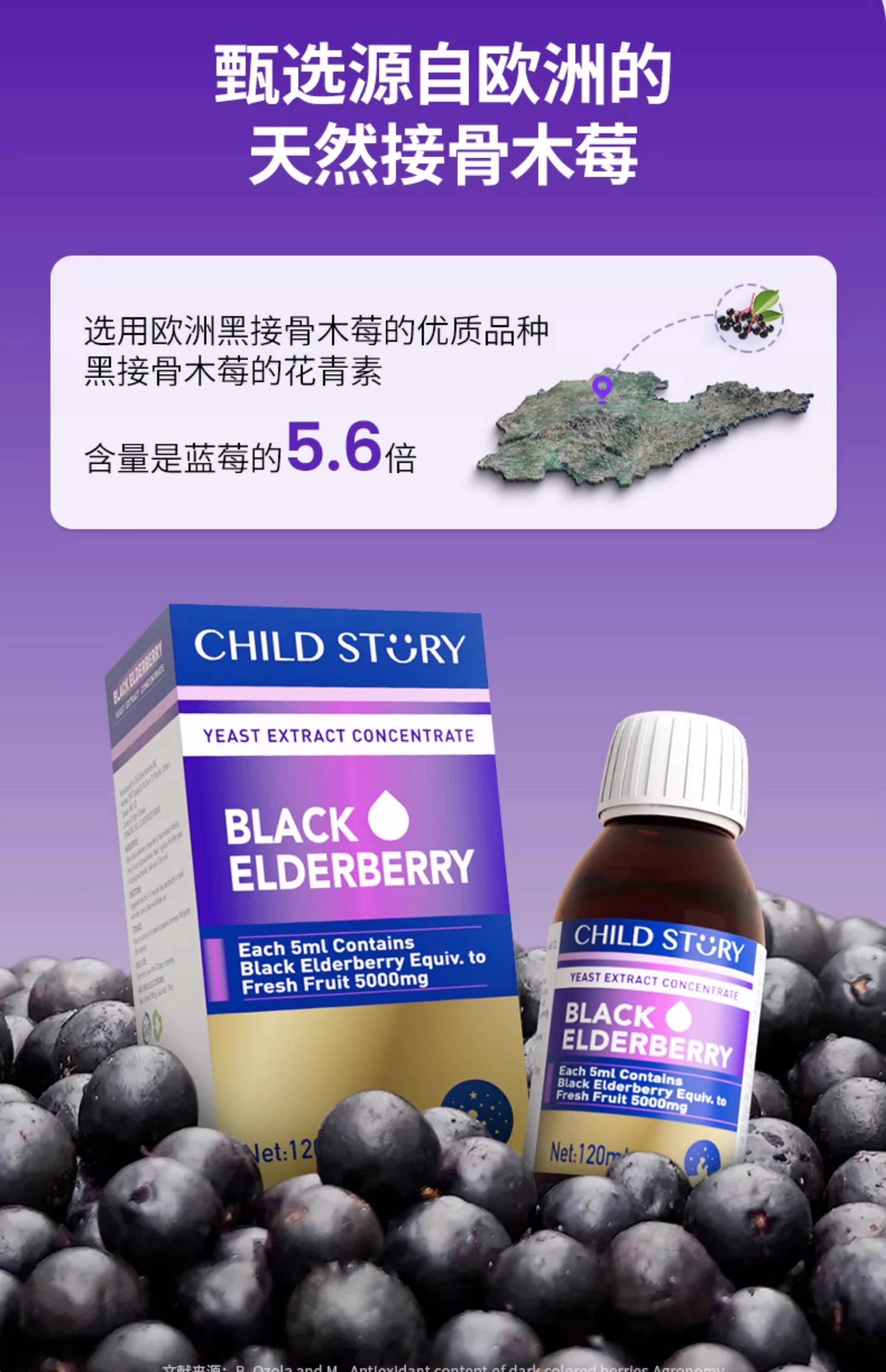 童年故事 黑接骨木莓酵母抽提物滴剂儿童补充维生素c糖浆 120ml
