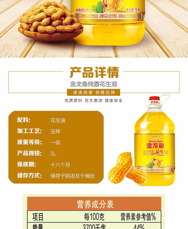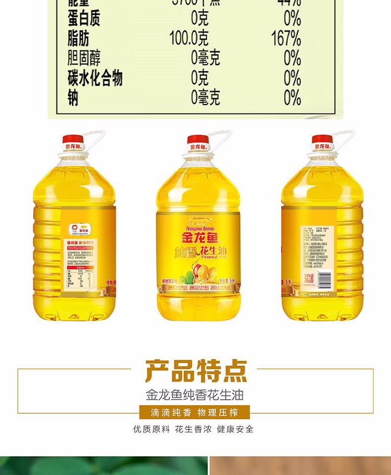 【发出后不支持拦截退货】金龙鱼 纯香花生油 5L
