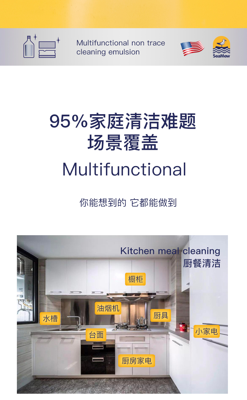【顽固重污强克星】SeaMew海鸥妈妈多功能无痕清洁乳 无需预涂 一擦即净 不含甲醛 多用途