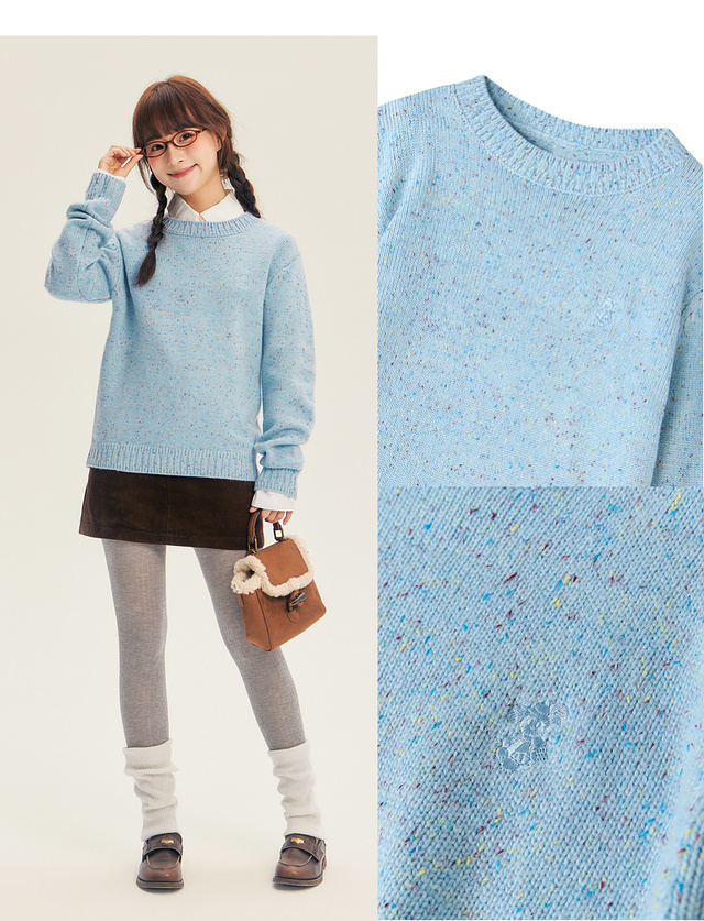 笛莎Deesha青少年女童毛衣2025冬季女童点子纱刺绣小狗标毛衣