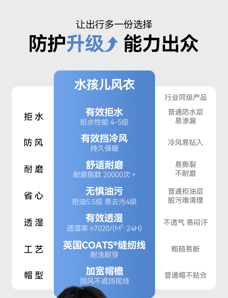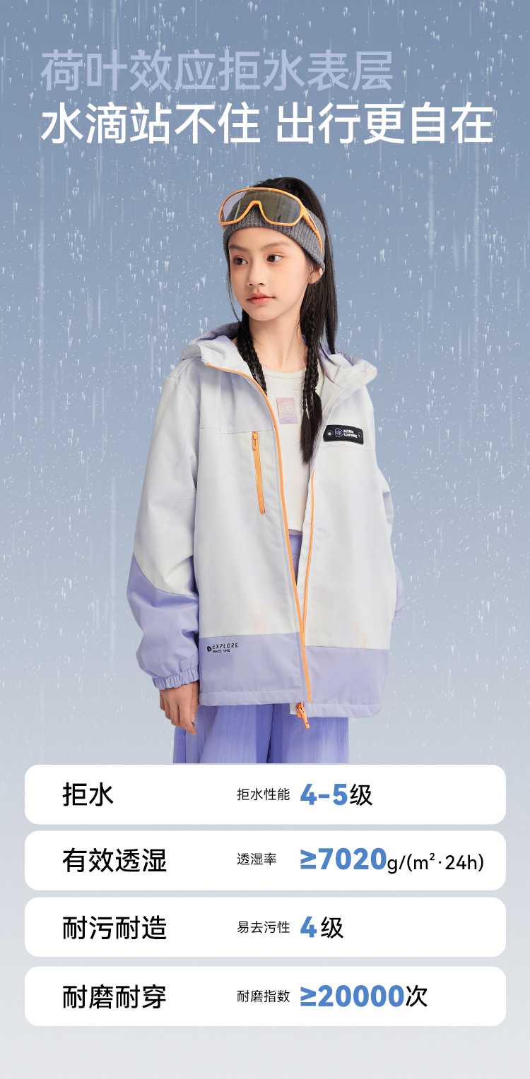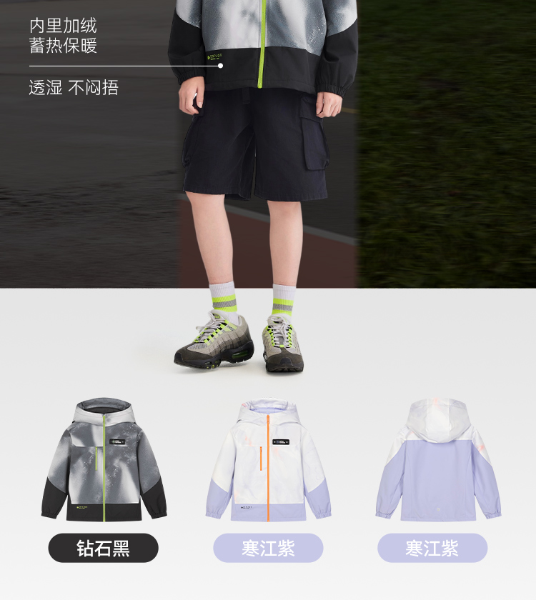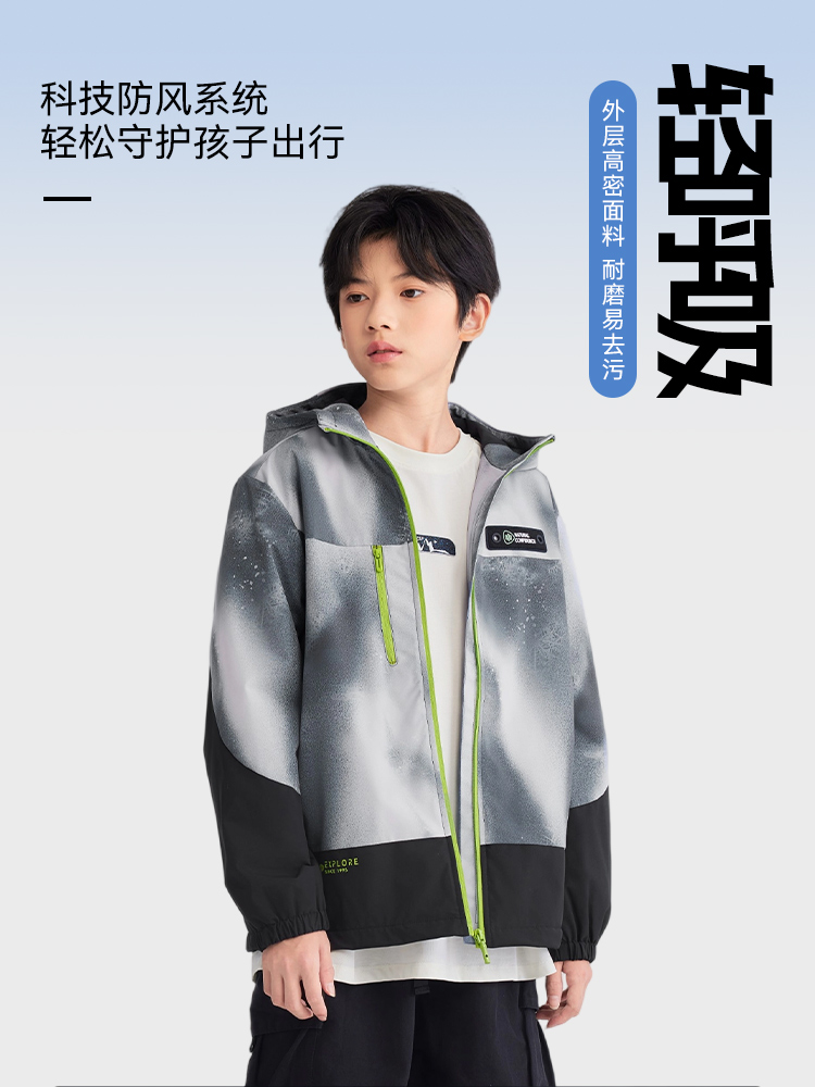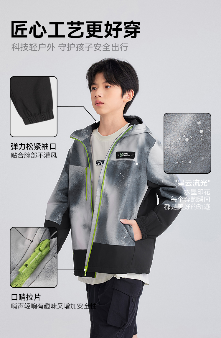 水孩儿童装儿童外套薄绒2025秋季新品大童防泼水透湿风衣连帽上衣