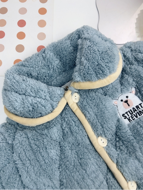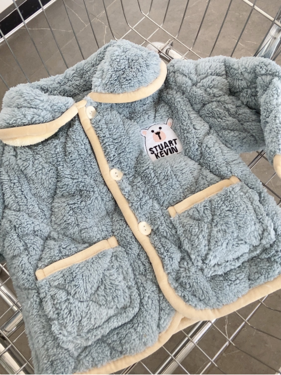 甄选面料,亲肤柔软顺滑细腻,加倍保暖给宝宝暖暖的守护~H版型, 适合多种身材的宝宝穿着翻领设计更舒服,不容易勒脖子胸口卡通装饰,童趣十足宝贝们穿起来开心又舒服~