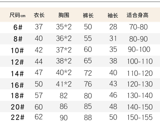 尺码:6码,8码,10码,12码,14码,16码,18码,20码。