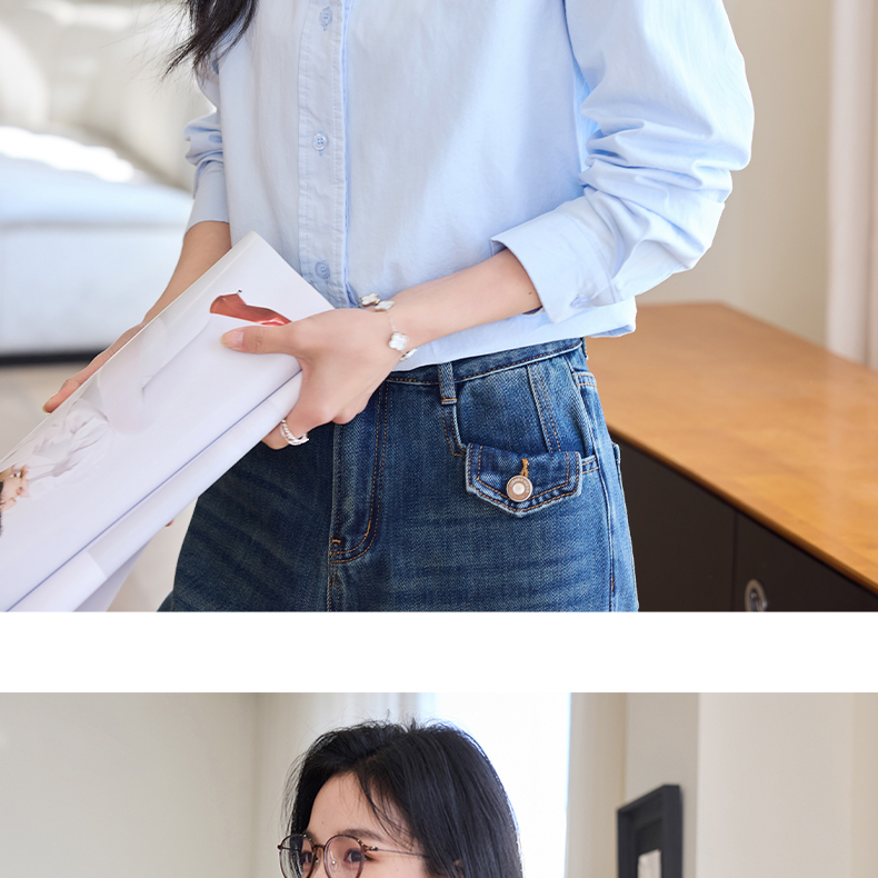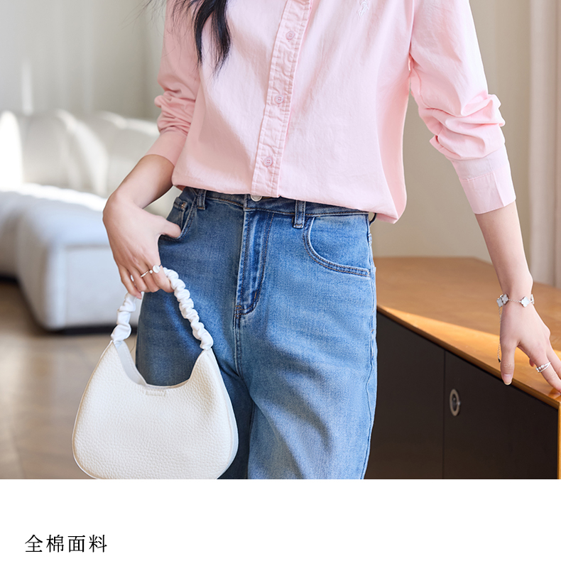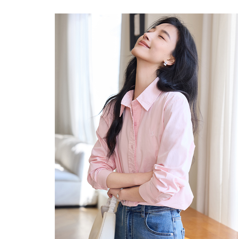 VICTORIA&VERA春季“极简多巴胺”治愈系全棉亲肤简约百搭小马刺绣通勤微透衬衫