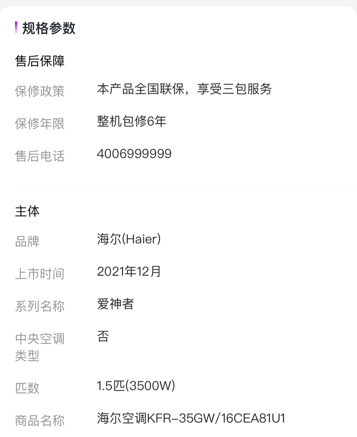 海尔(Haier)空调 KFR-35GW/16CEA81U1 聪明风