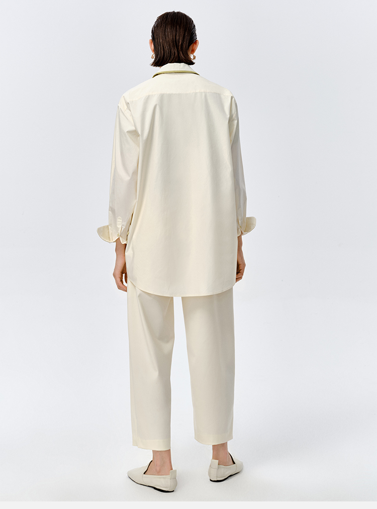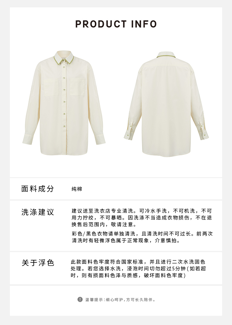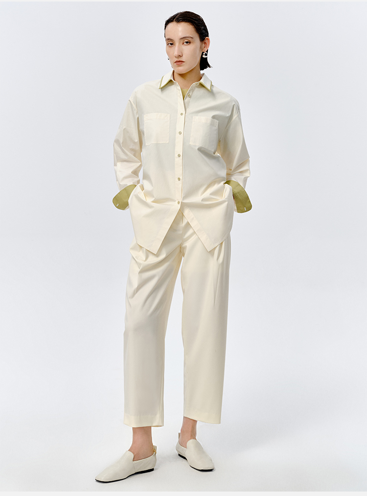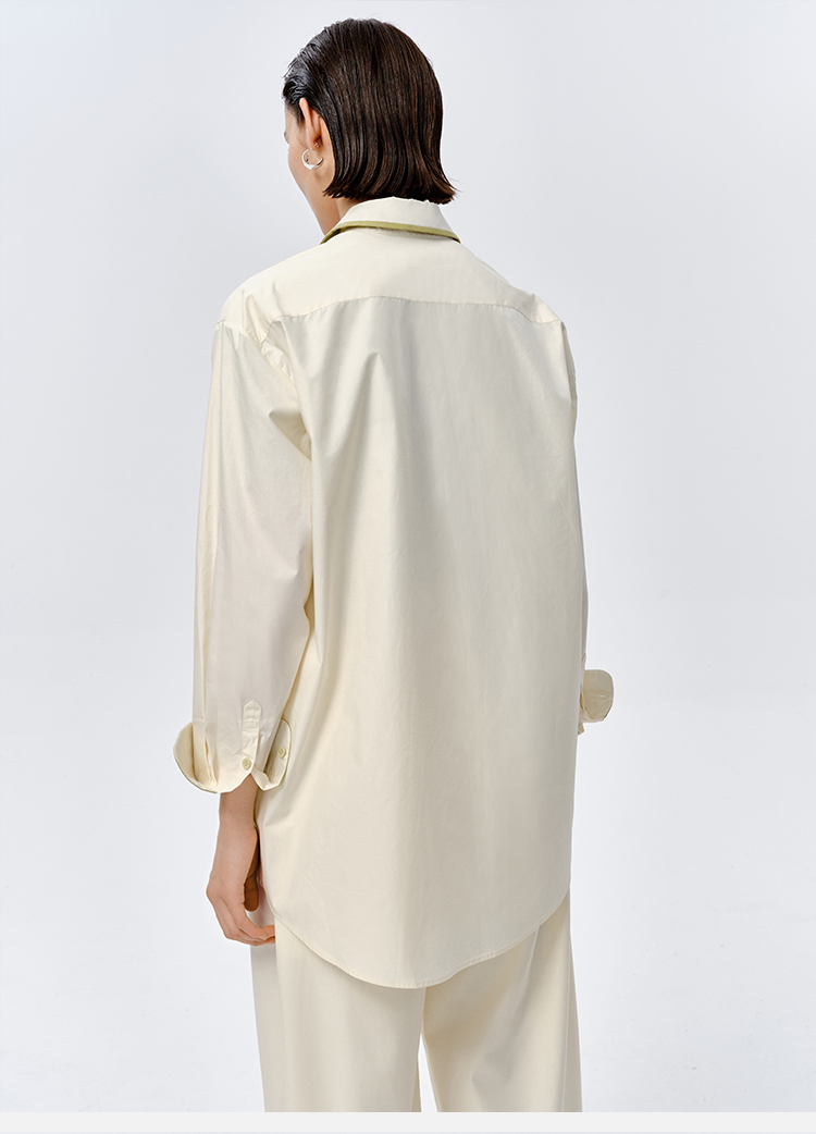 HIDEMI极简设计感白色牛油果绿镶嵌拼色款口袋廓形衬衫