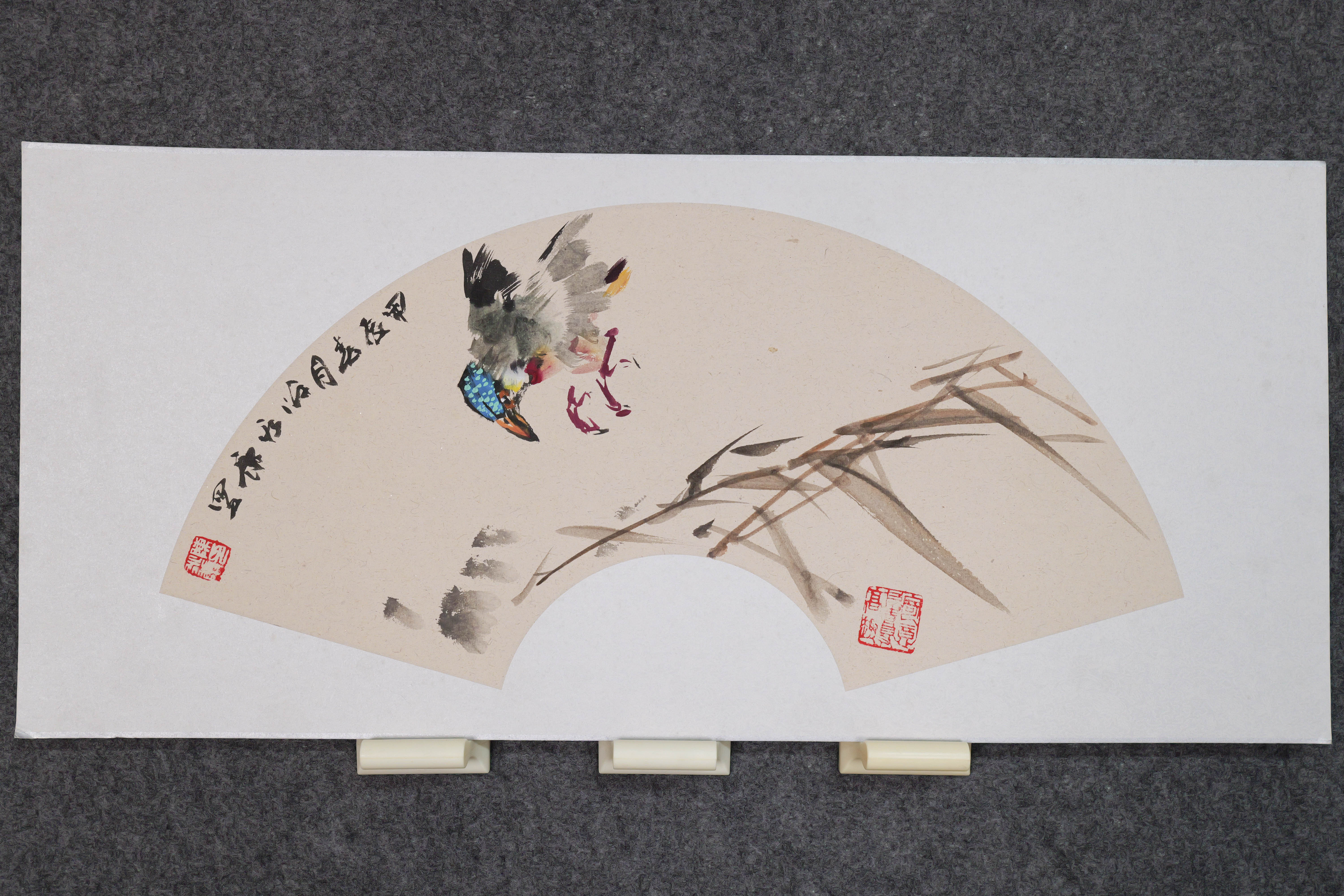 陈永康《雀竹图》国画原作30CM*60CM 手绘宣纸扇面花鸟作品