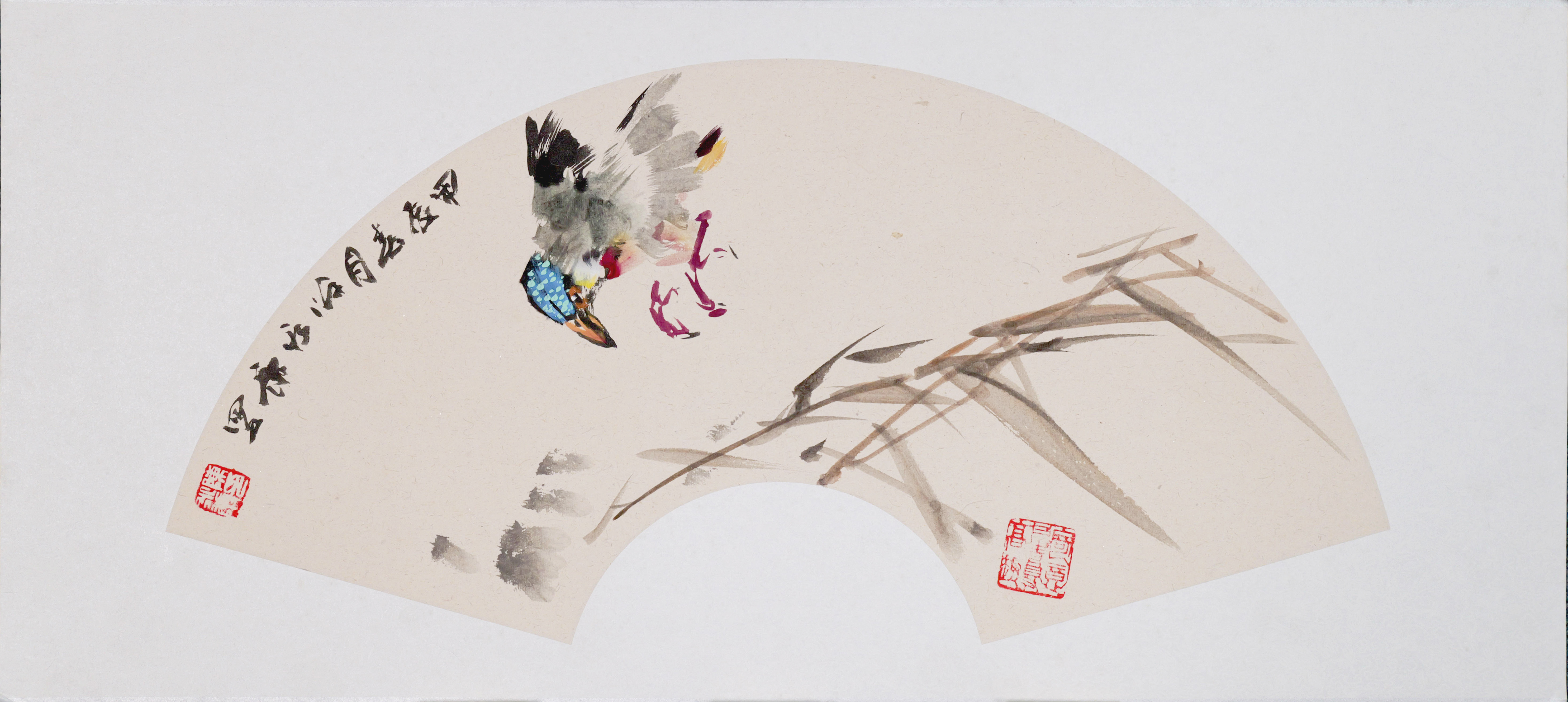 陈永康老师丨“一飞冲天”写意花鸟画 麻雀画法 扇面小品画创作