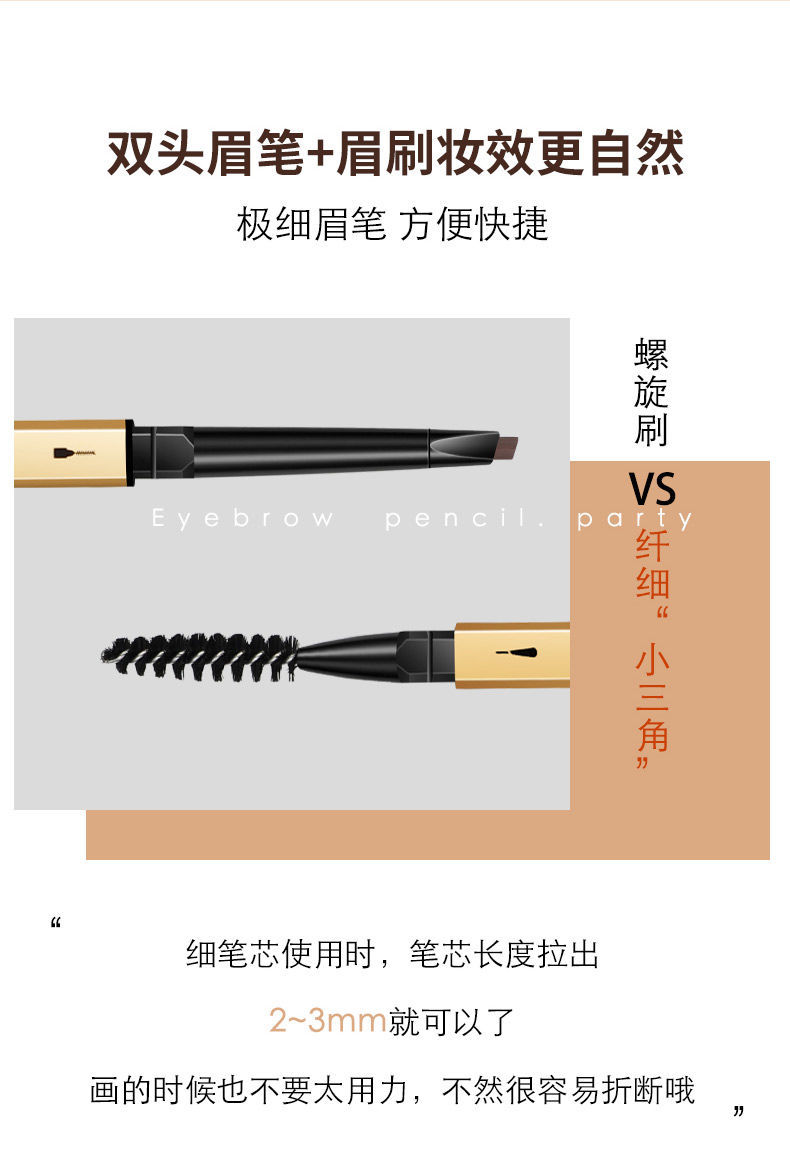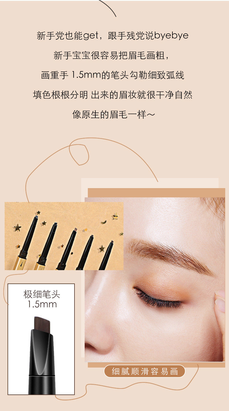 2支优惠装小金筷眉笔细头超细防水防汗不掉色根根分明新手必备眉笔懒人学生