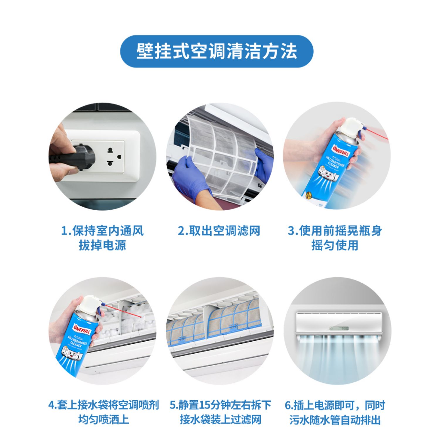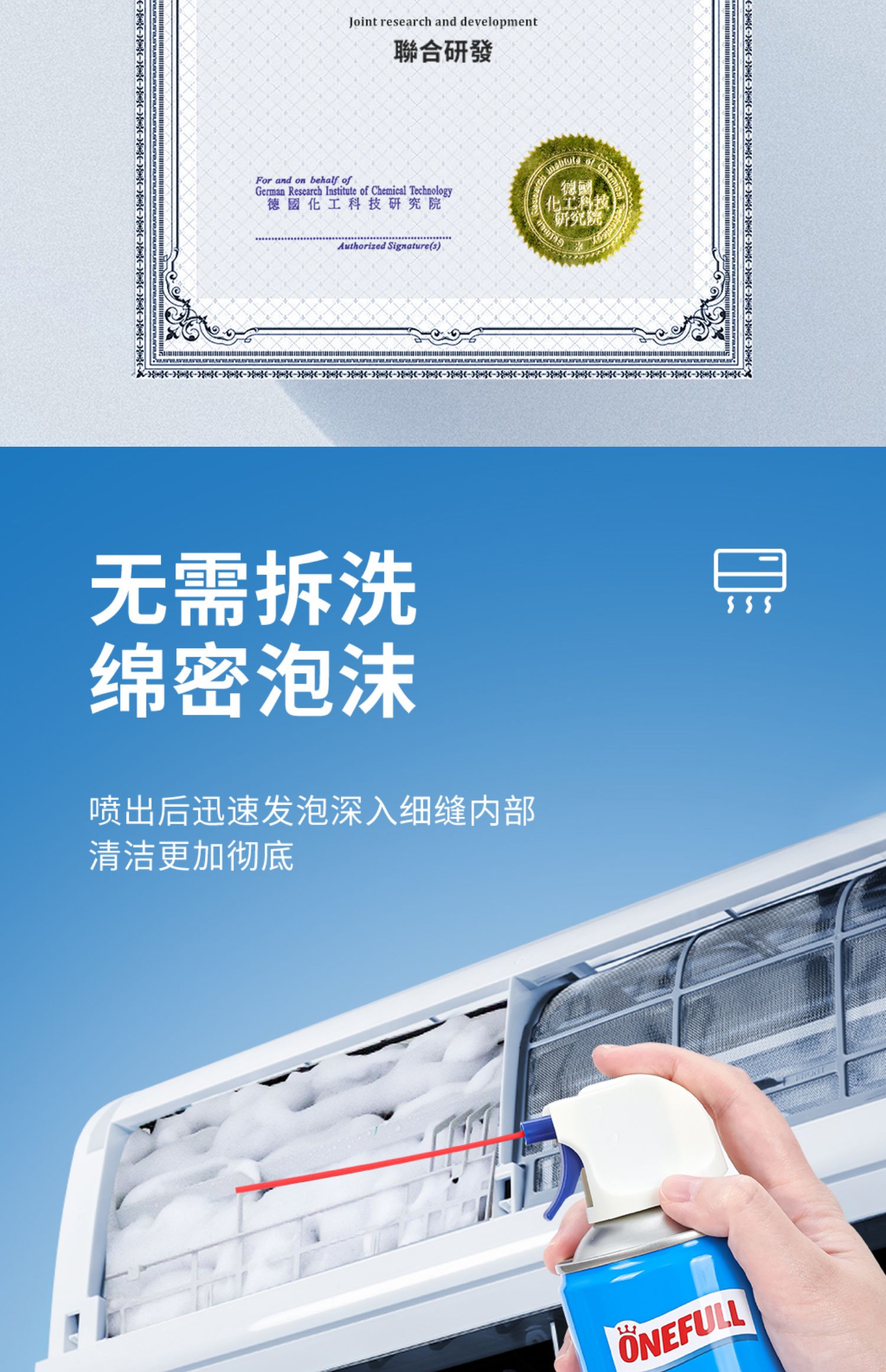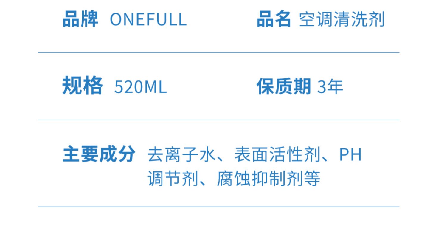 【送清洁工具】ONEFULL 空调清洗剂 520ml ;免拆清洗,空调清洁除味,一瓶轻松搞定;深入细缝内部,清洁更彻底;
