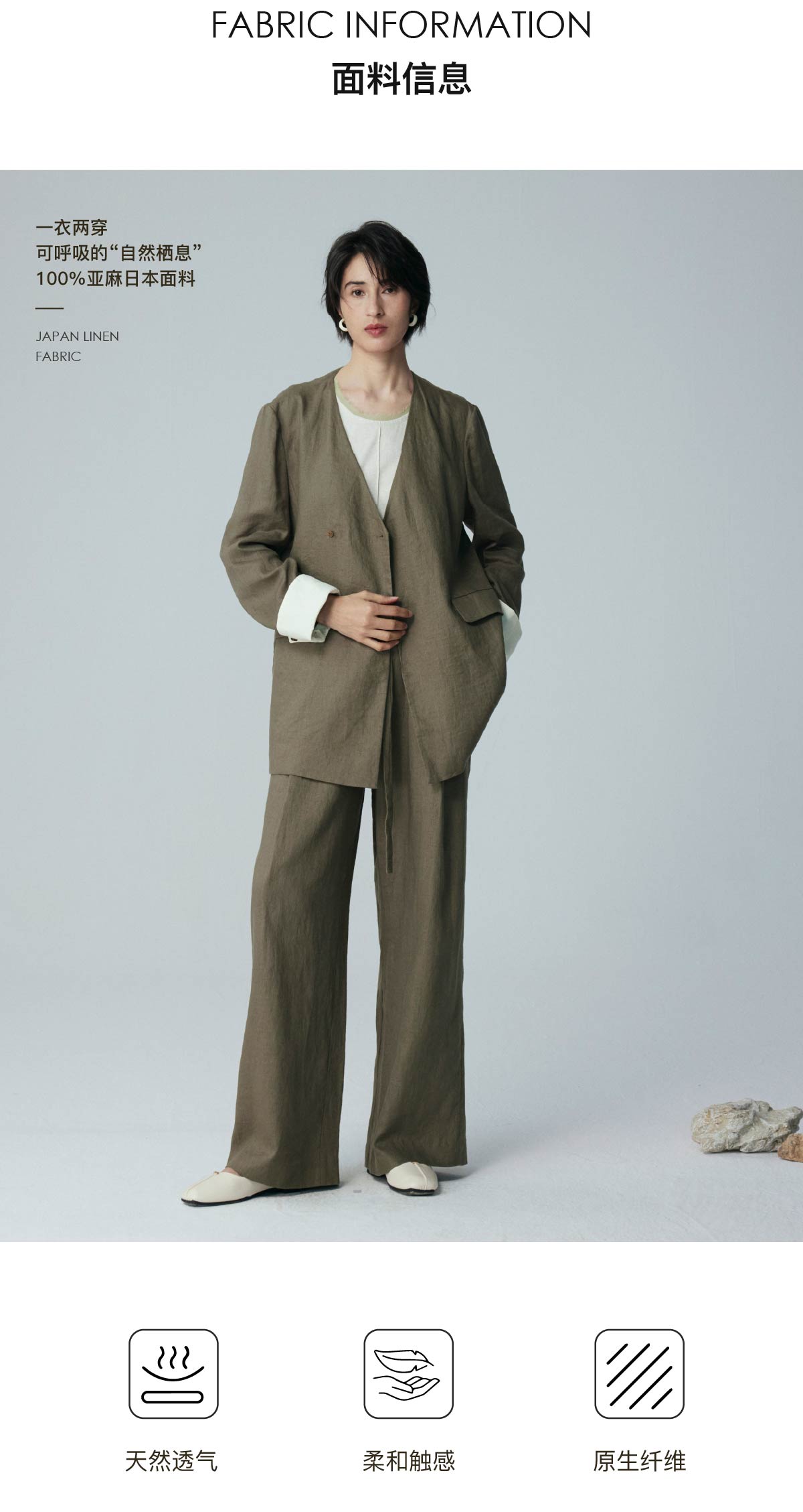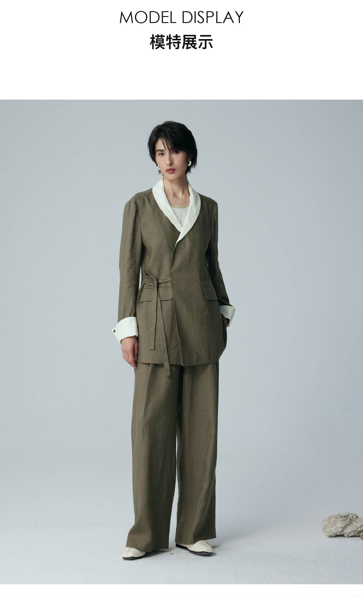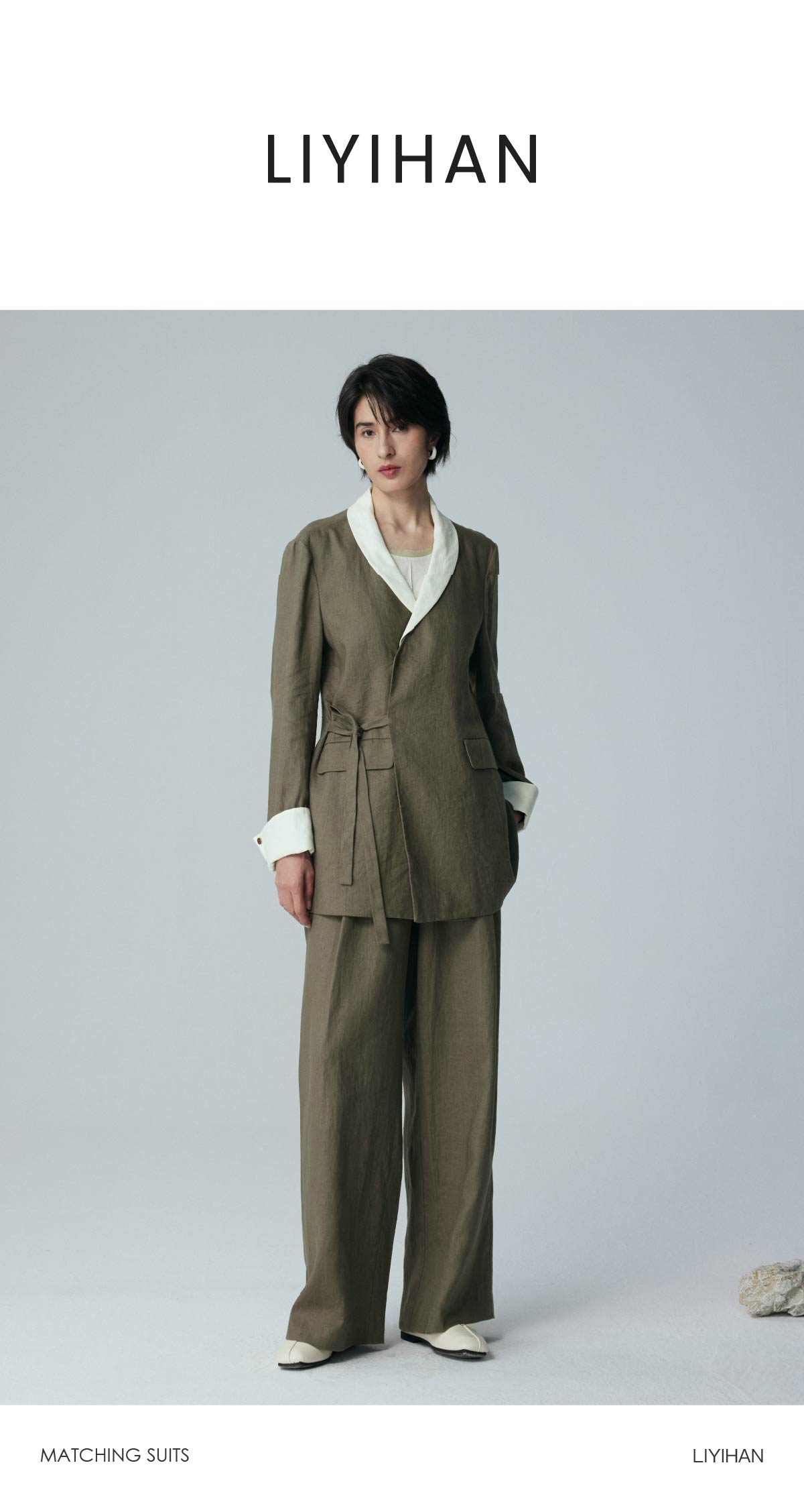 LIYIHAN 2026夏季新款通勤女西装绿色上衣亚麻外套套装小众设计感