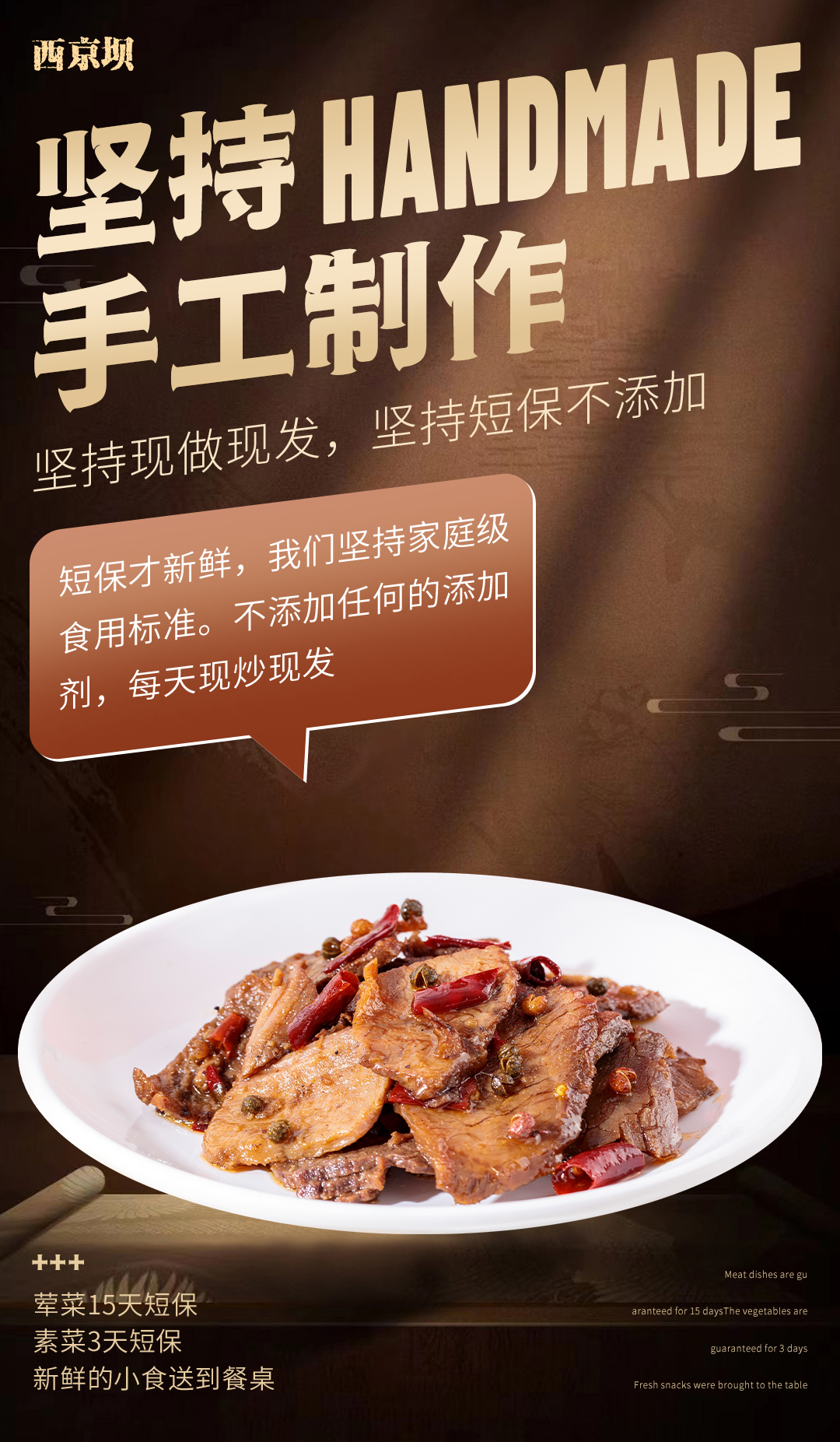 短保才新鲜,我们坚持家庭级食用标准。不用过多的添加剂,每天现炒现发。