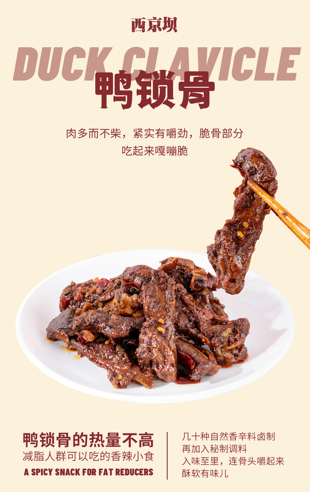 鸭锁骨的热量不高,减脂人群可以吃的香辣小食,太适合当作下酒菜了。