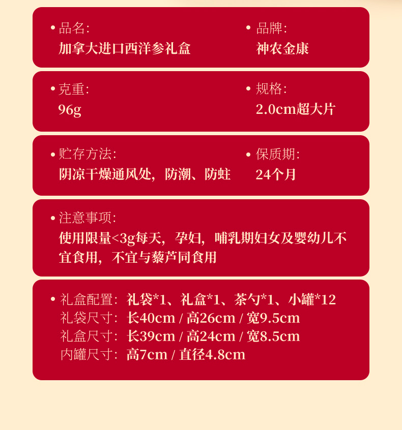 【中秋礼盒】神农金康 加拿大西洋参礼盒96g、108g 新中式滋补礼 原生态真滋补 喝护家人健康