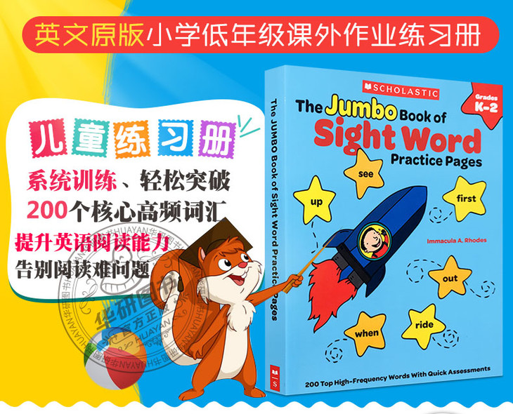 学乐200个常见字高频词核心词汇练习册 英文原版 The Jumbo Book of Sight Word Practice Pages 美国小学 关键词 进口英语书籍