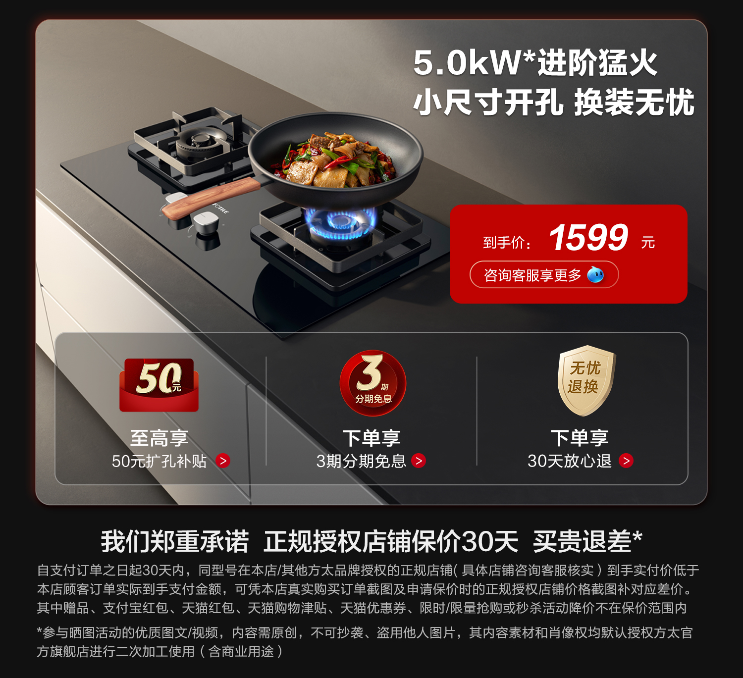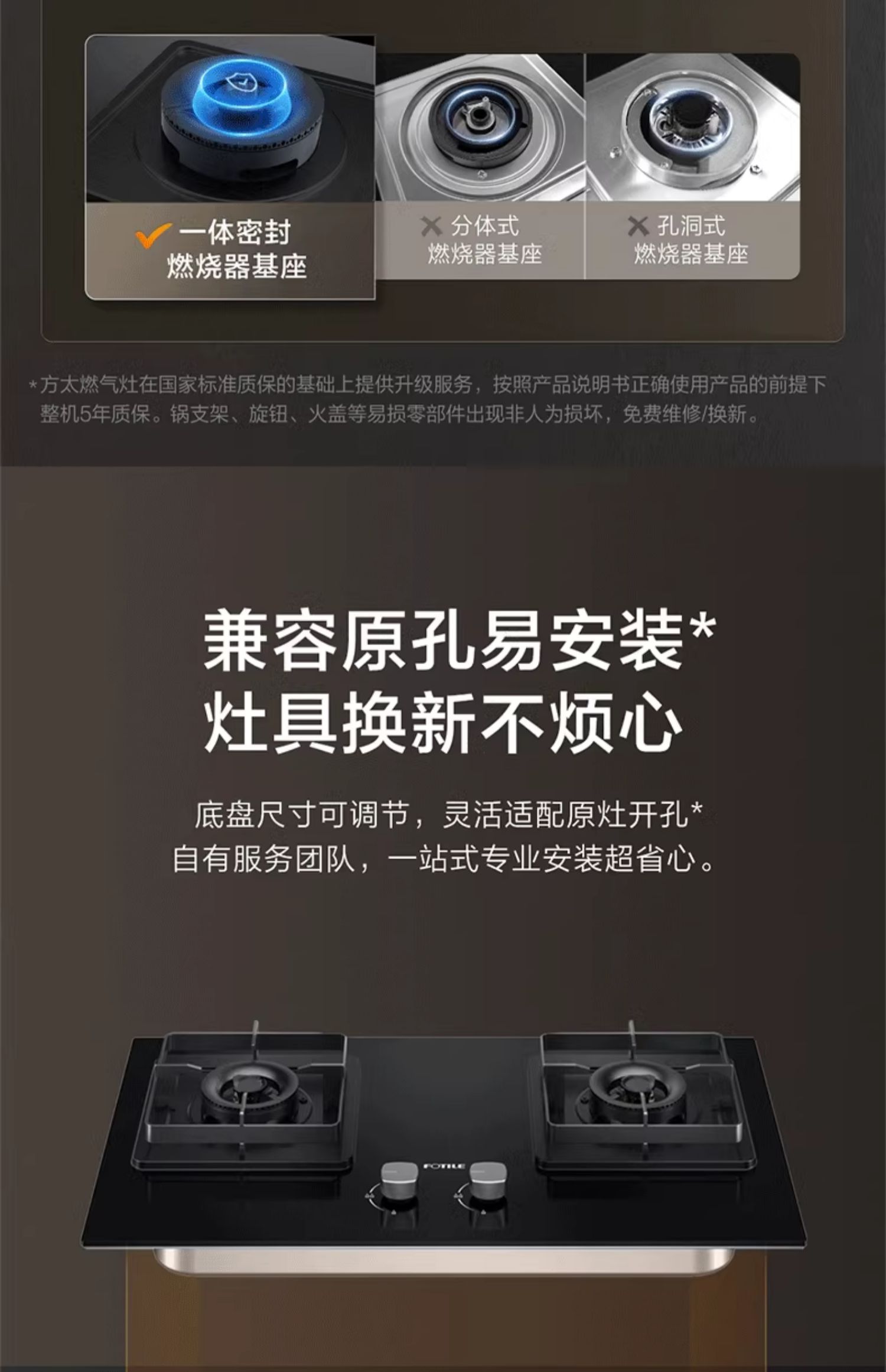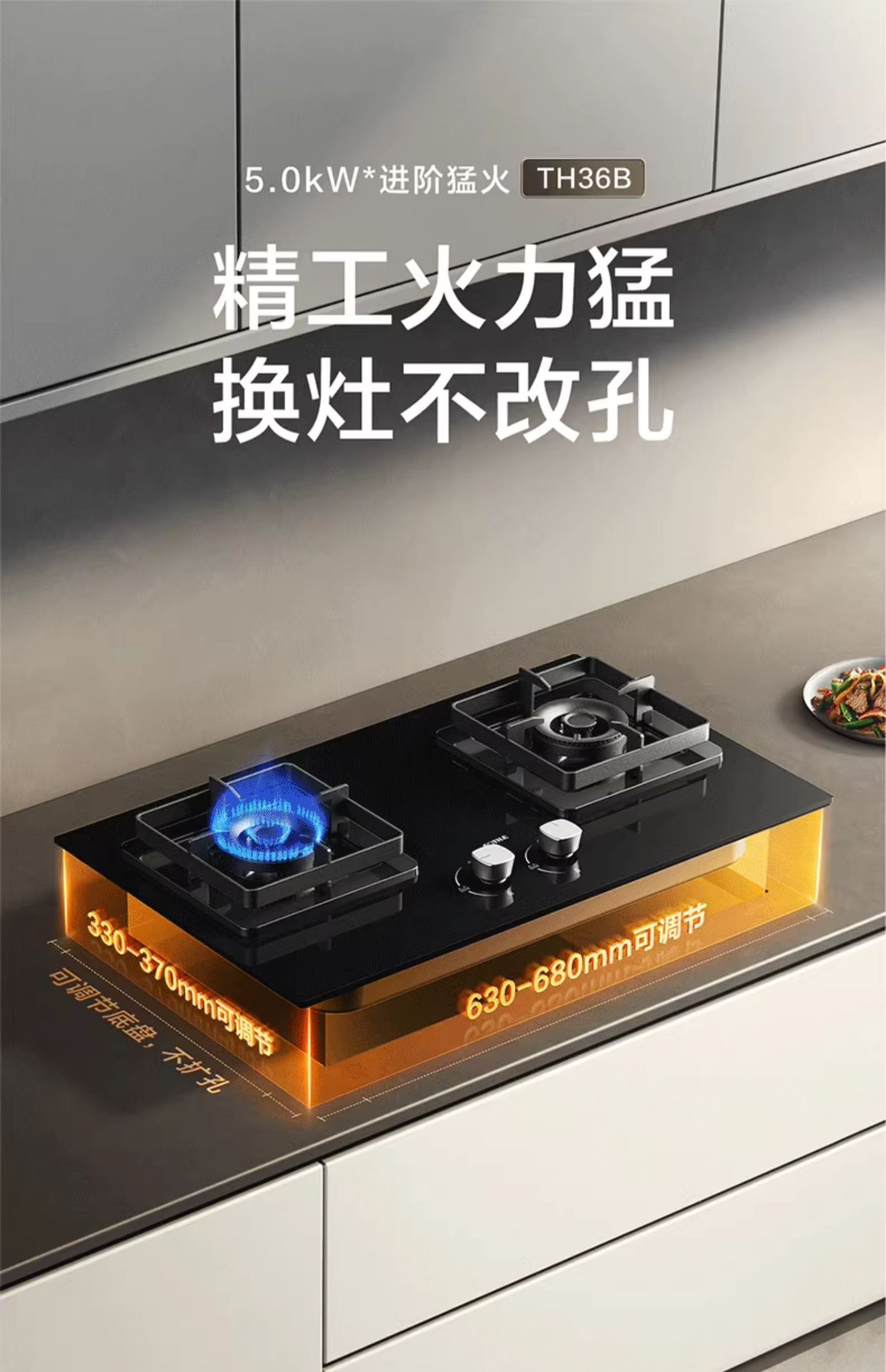 方太TH36B燃气灶台嵌两用5.0KW猛火灶 家用换装可调节底盘免扩孔天然气液化气煤气灶双灶五重防爆面板官方正品