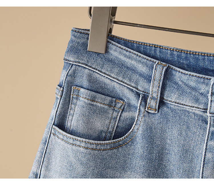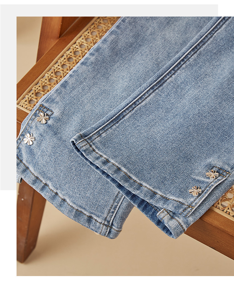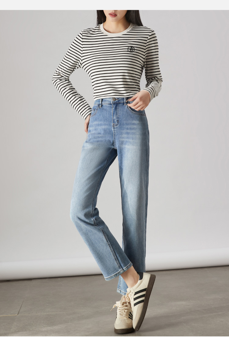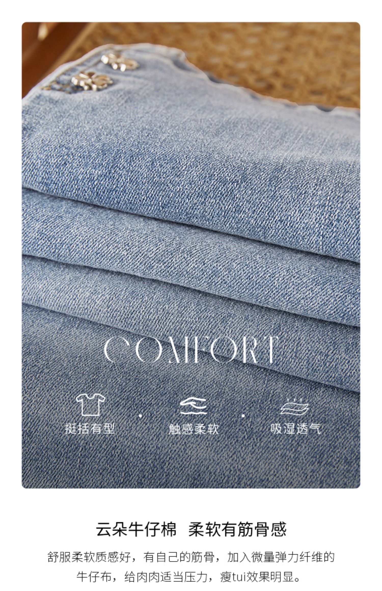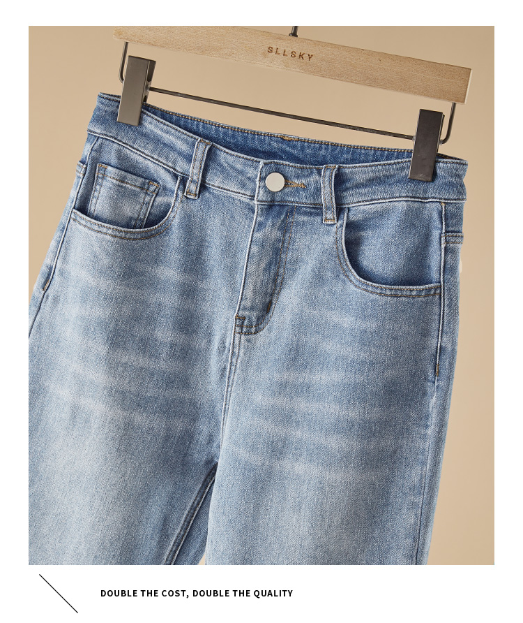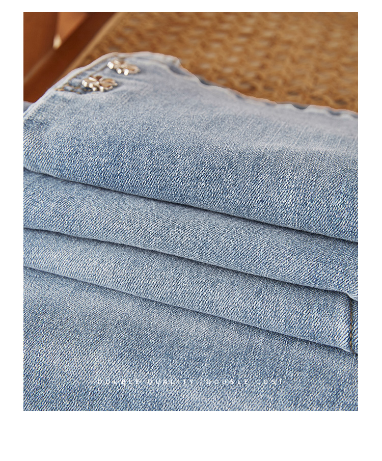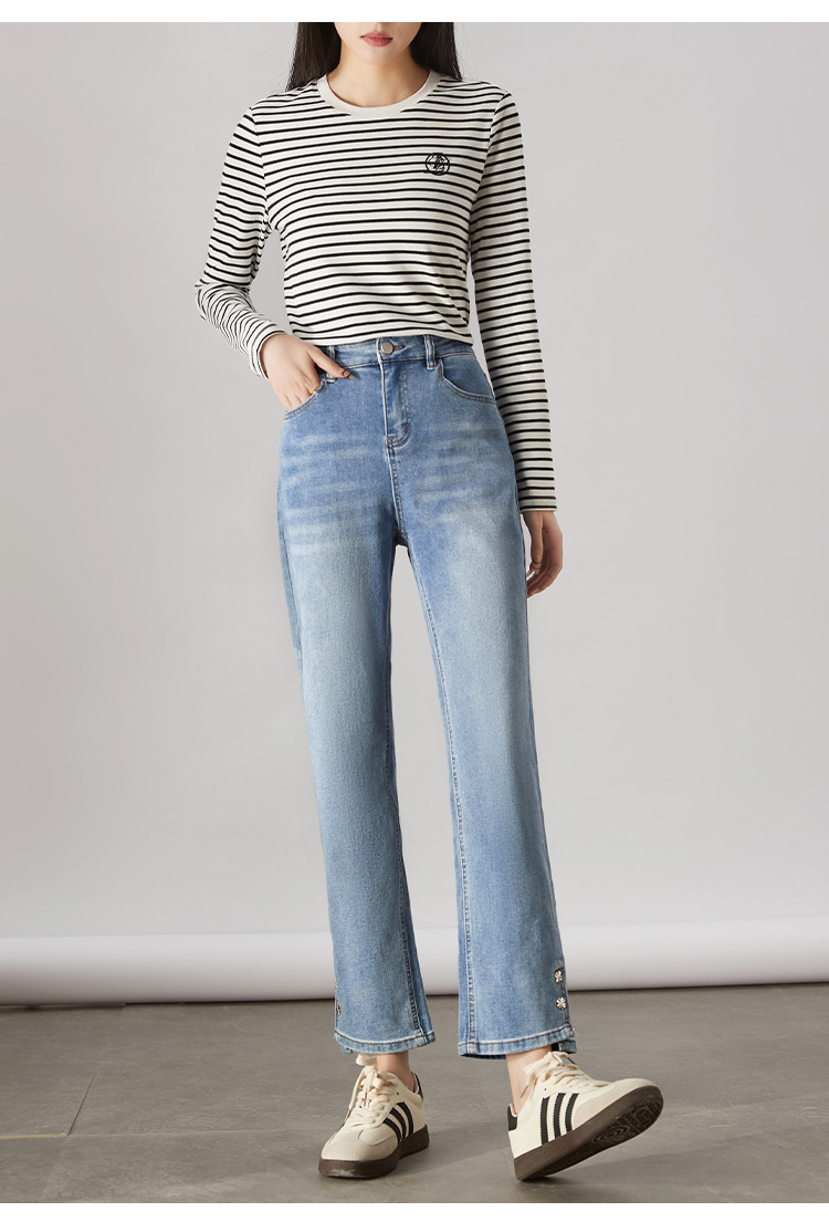 【开门红】熙世界浅蓝色牛仔裤女2025年秋季新款高腰设计感开叉烟管直筒裤子