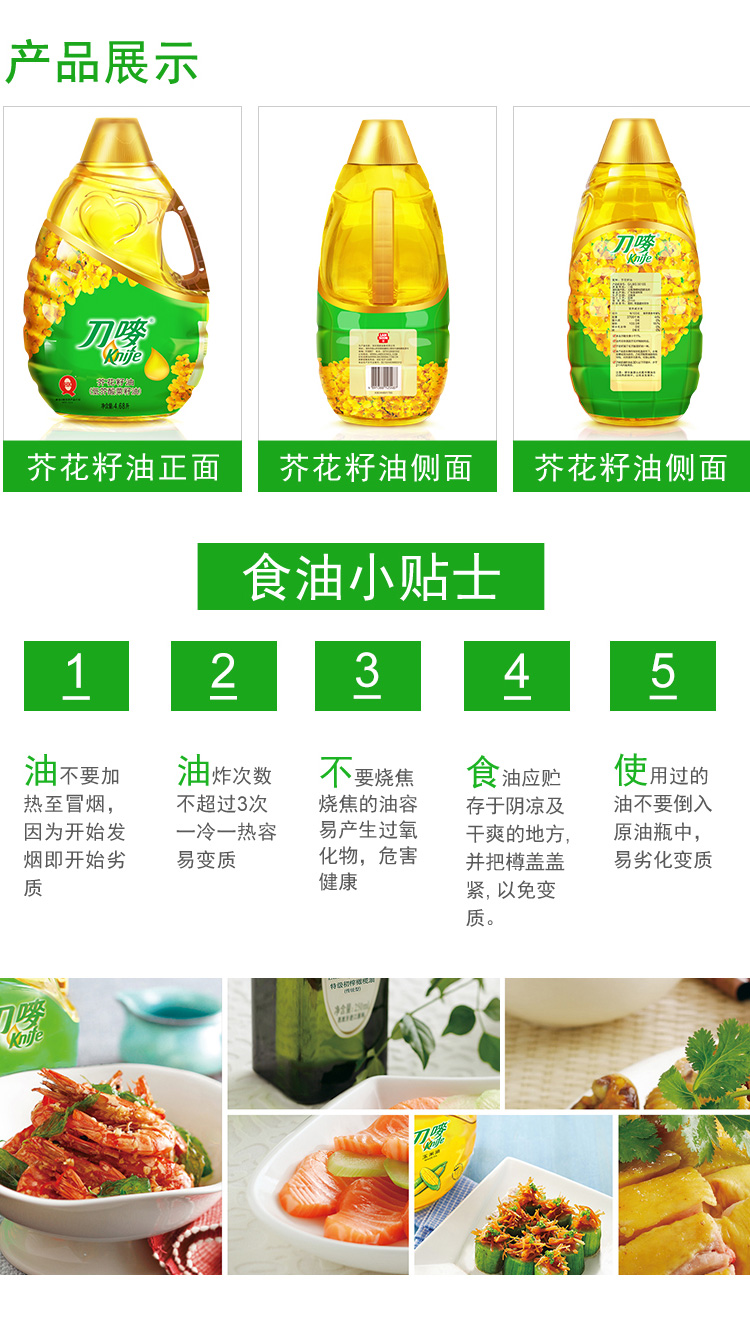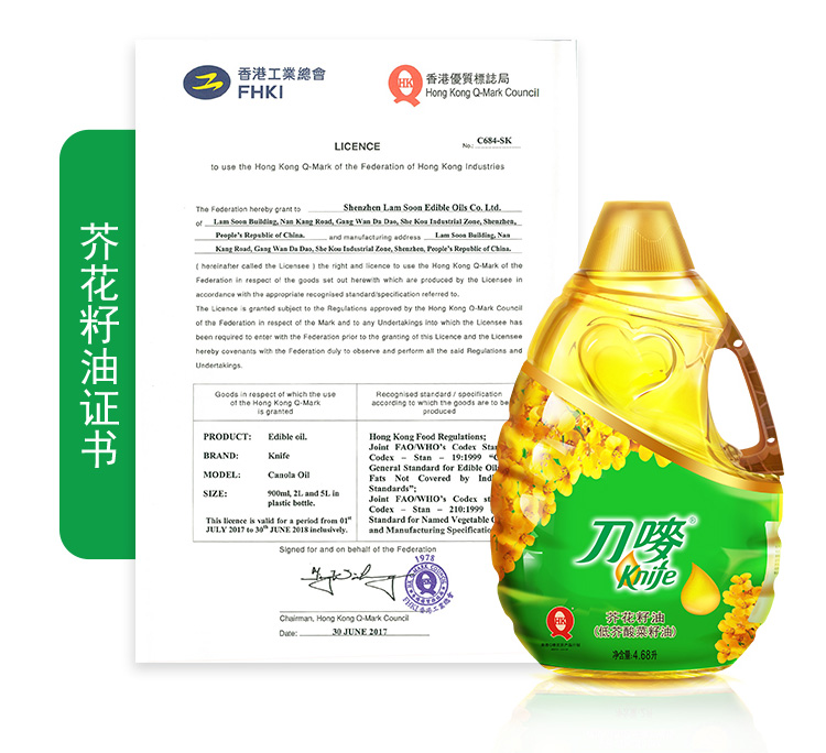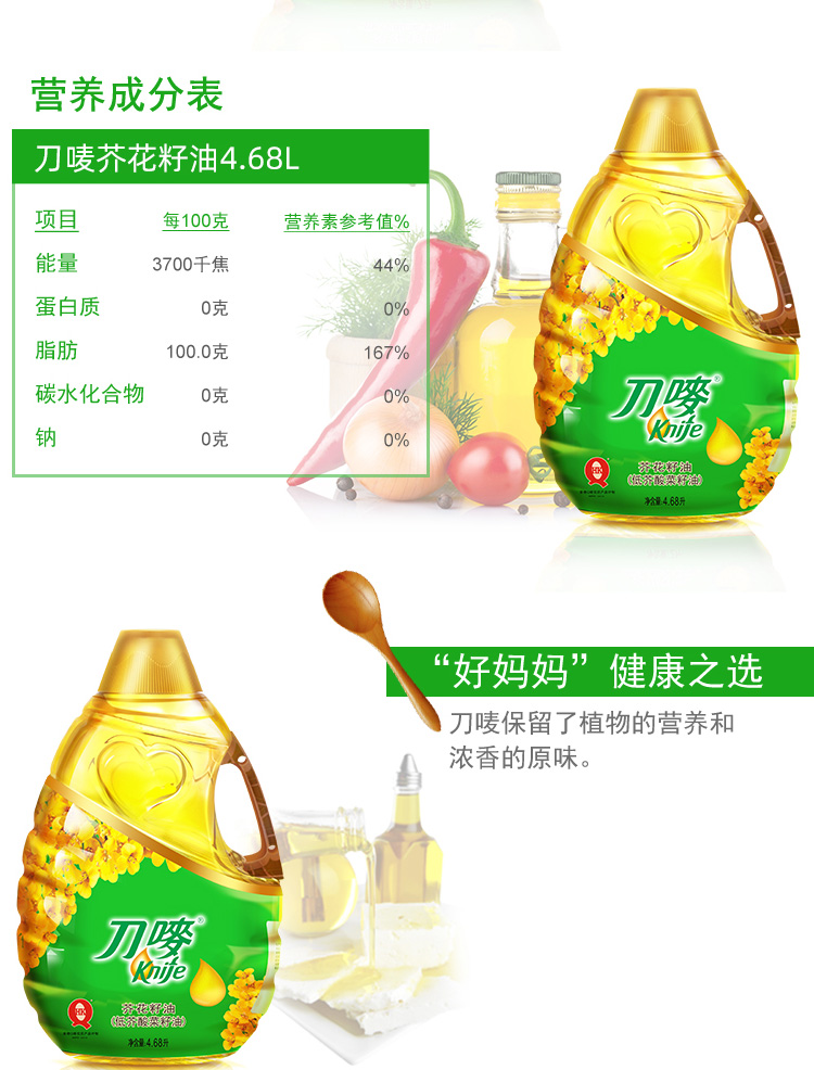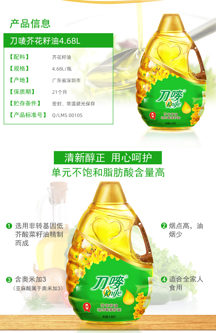 刀唛 Knife 食用油 低芥酸菜籽油 芥花籽油4.68L 压榨一级