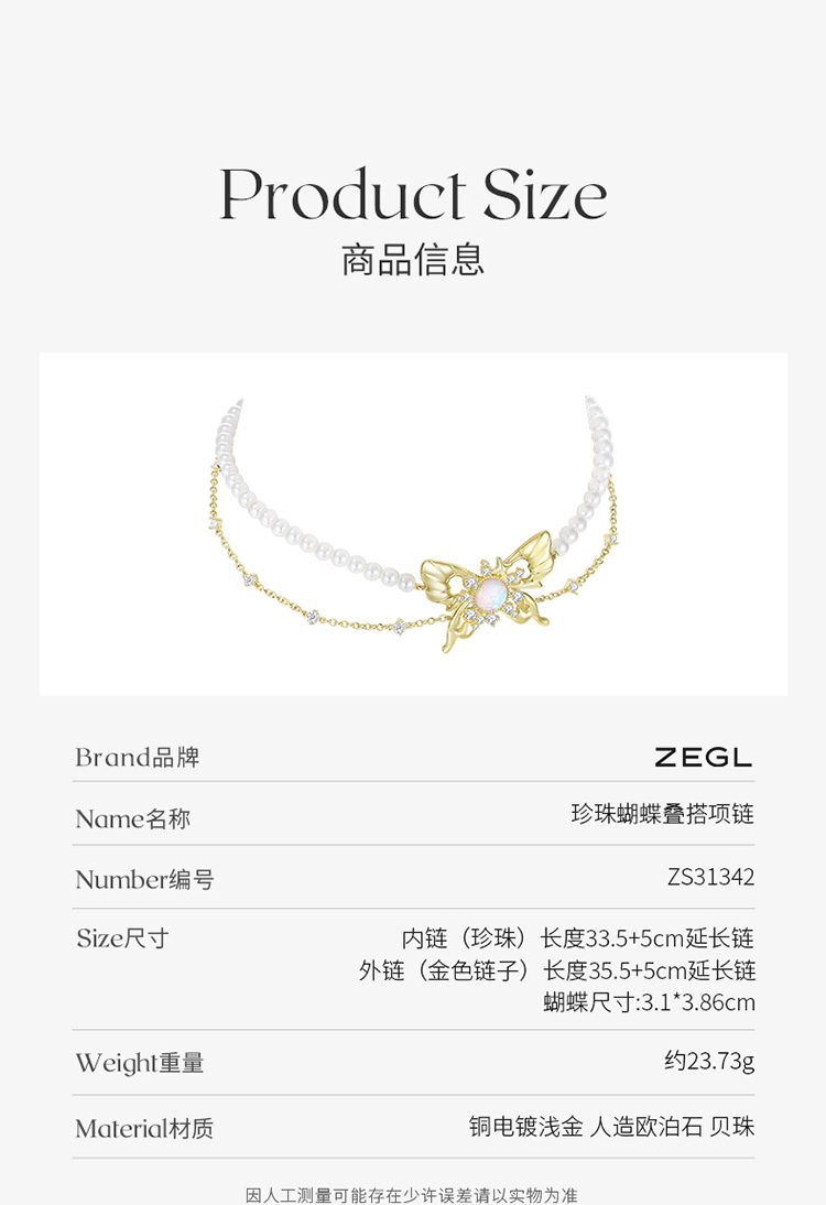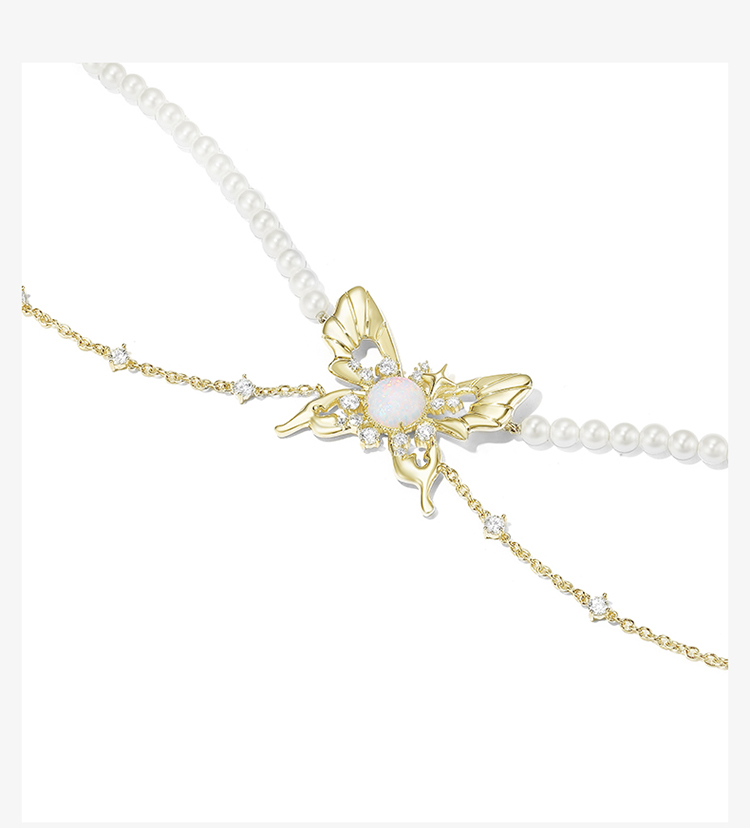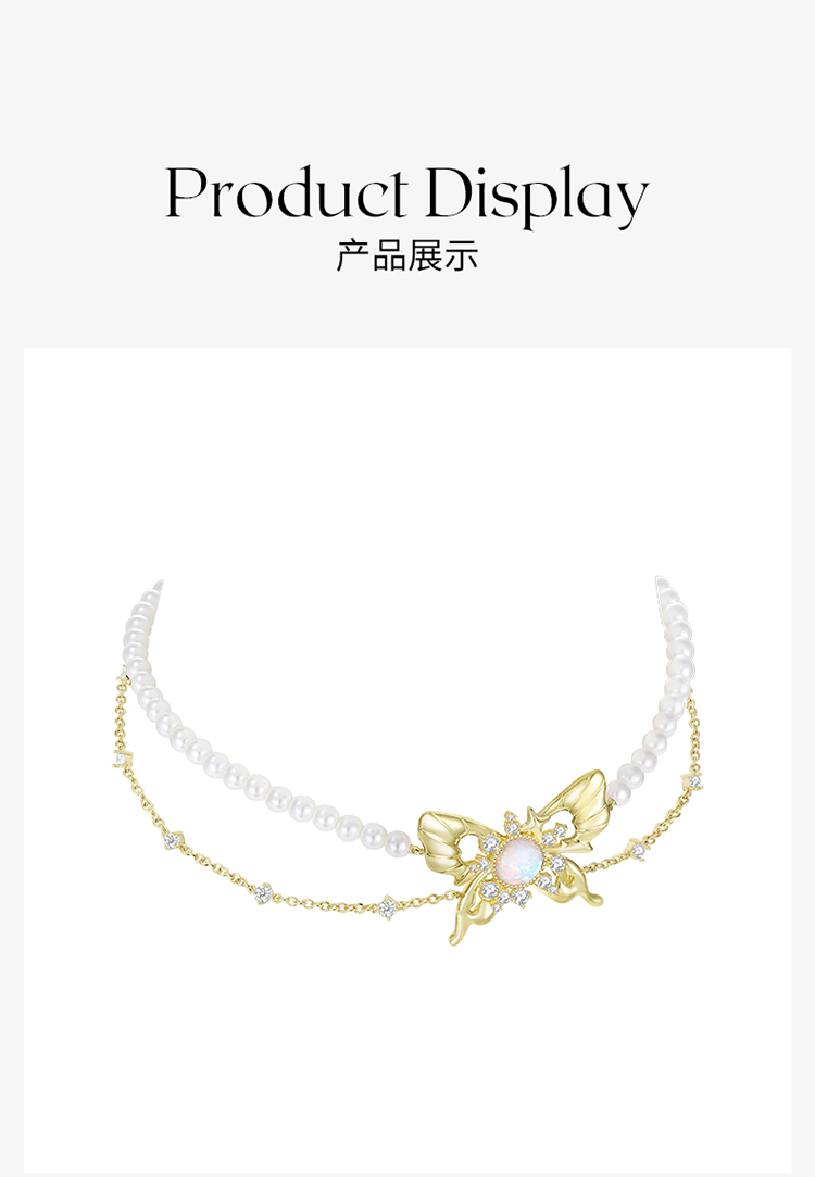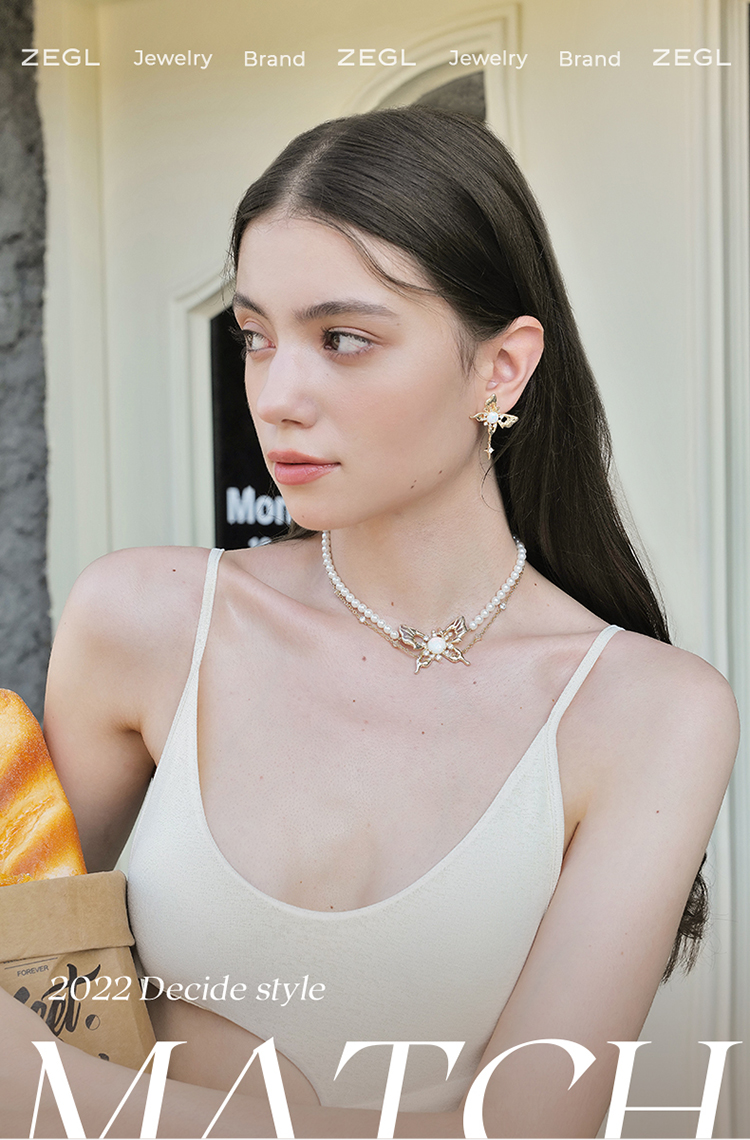ZEGL设计师幻野系列蝴蝶人造珍珠项链女高级设计感小众叠戴锁骨链