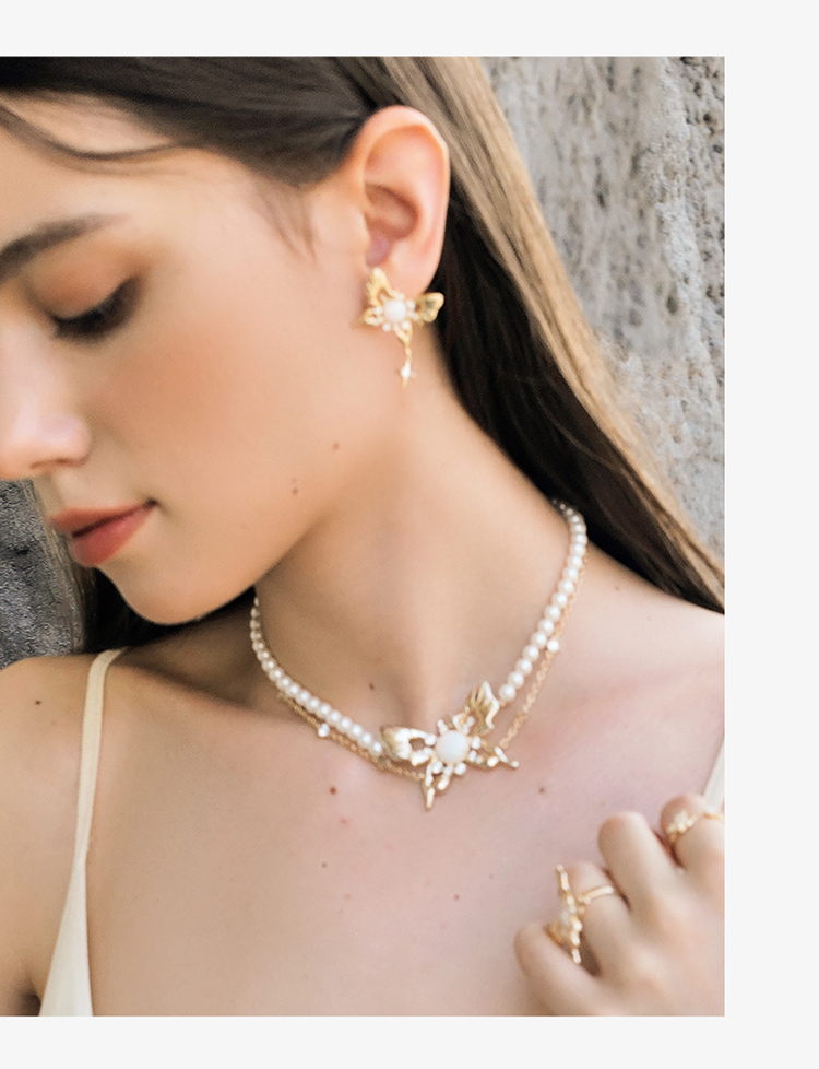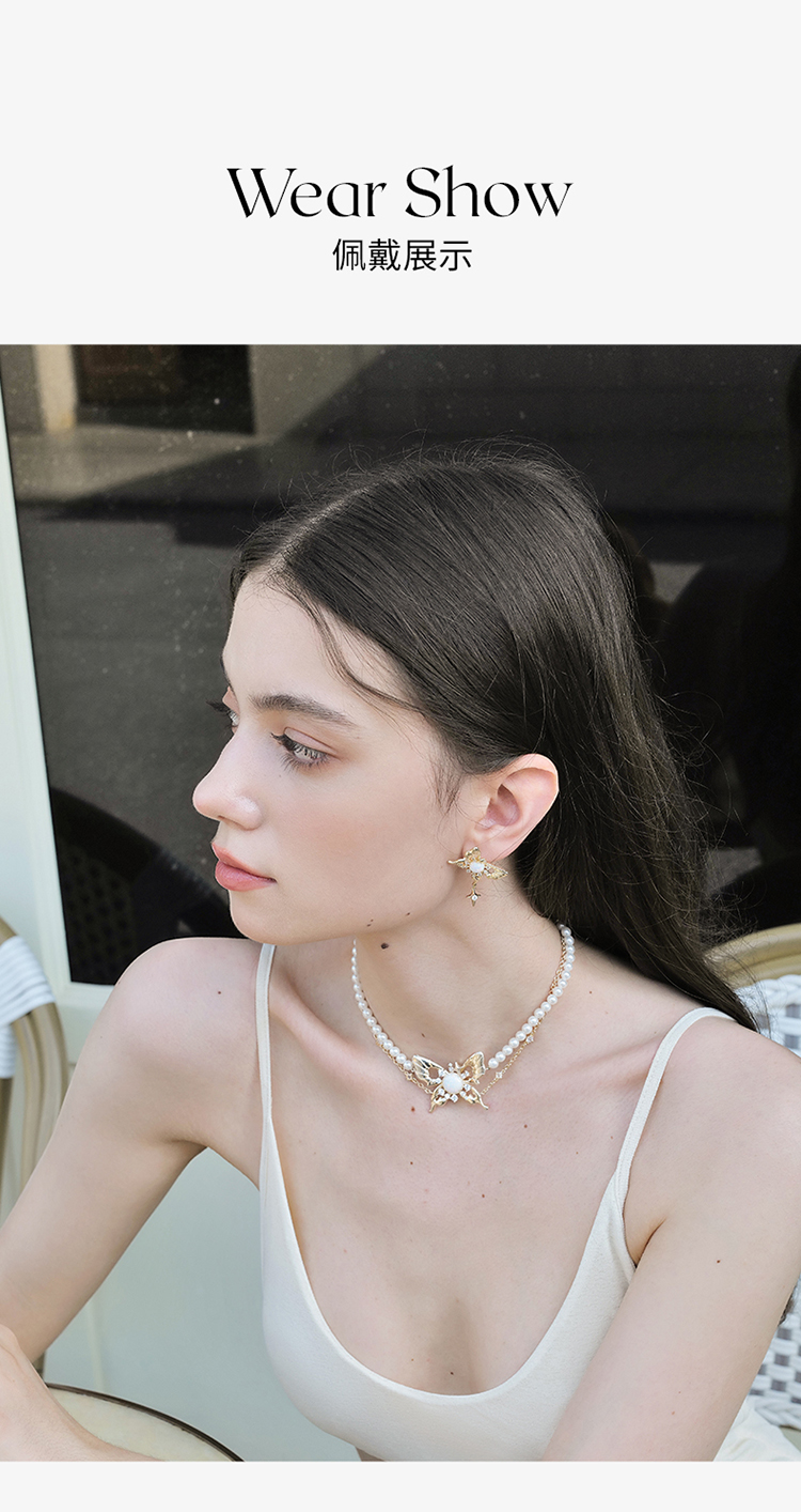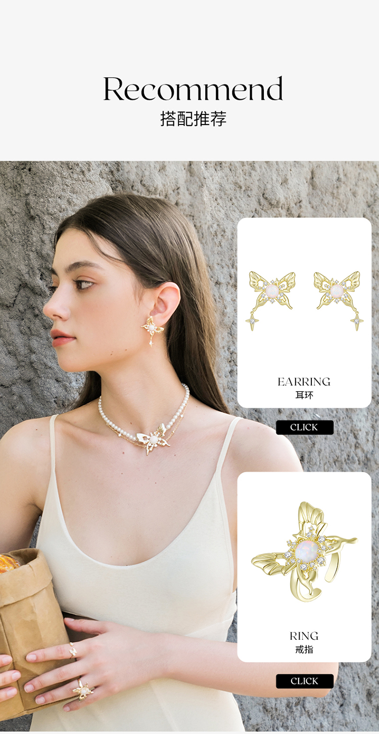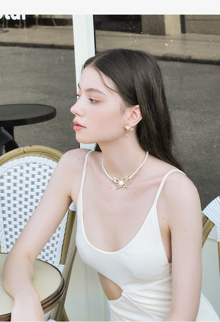 ZEGL设计师幻野系列蝴蝶人造珍珠项链女高级设计感小众叠戴锁骨链