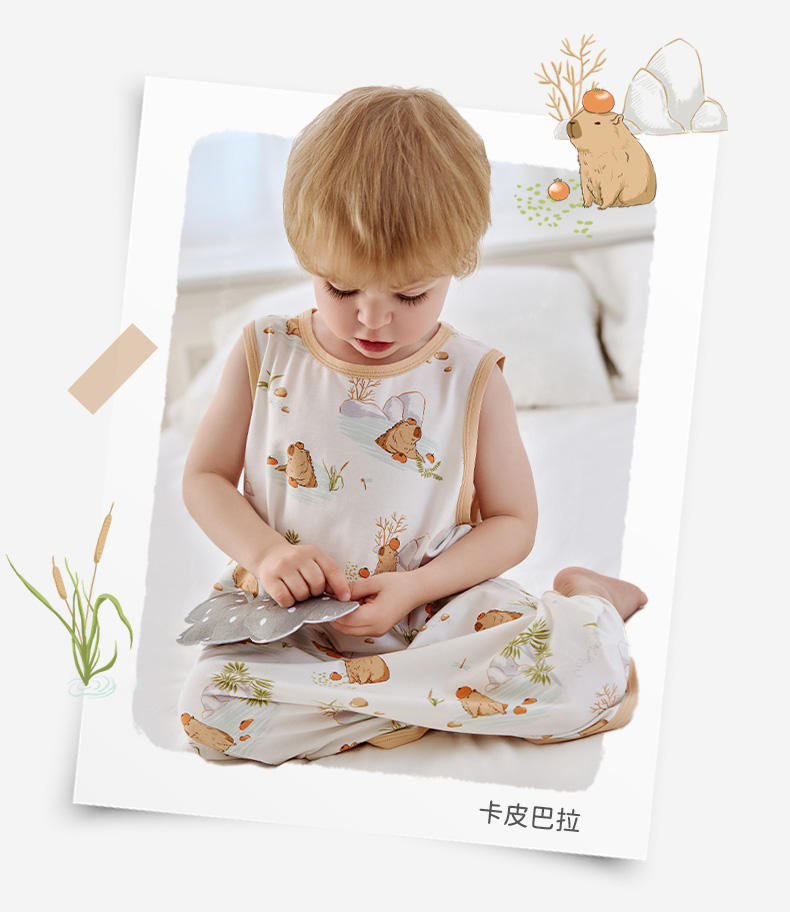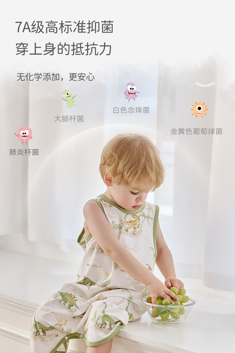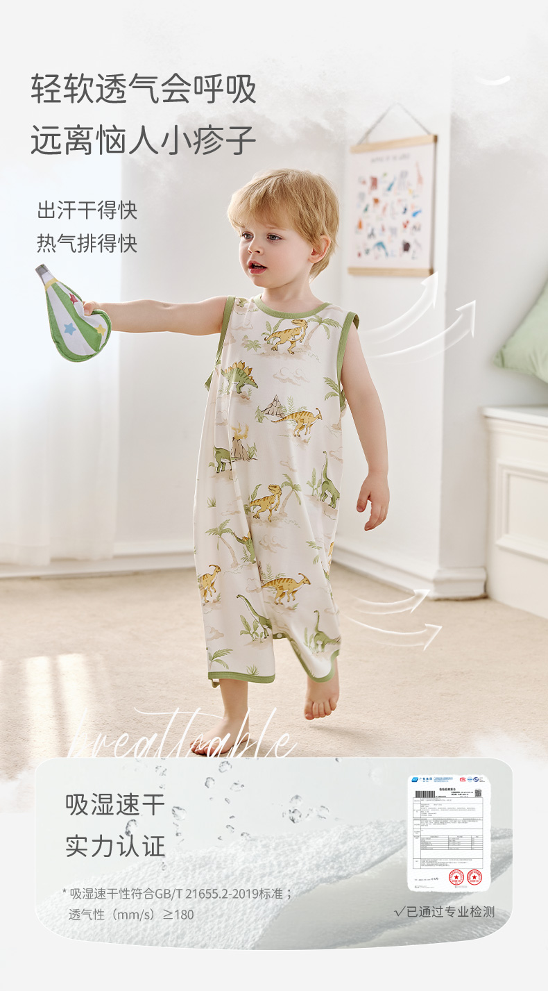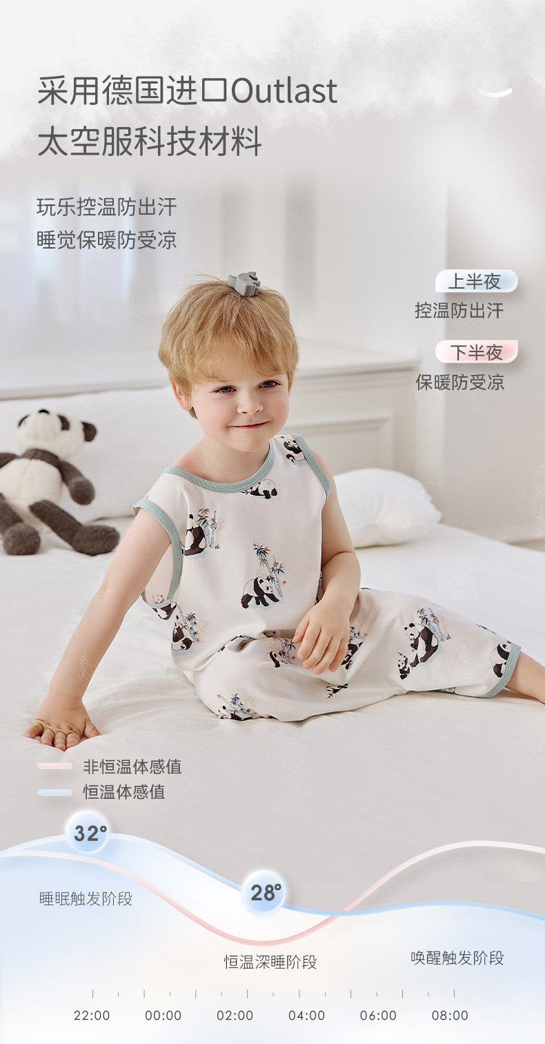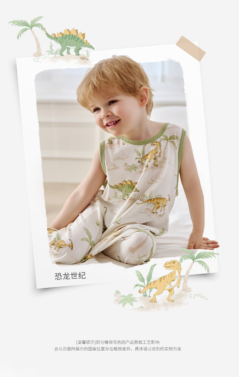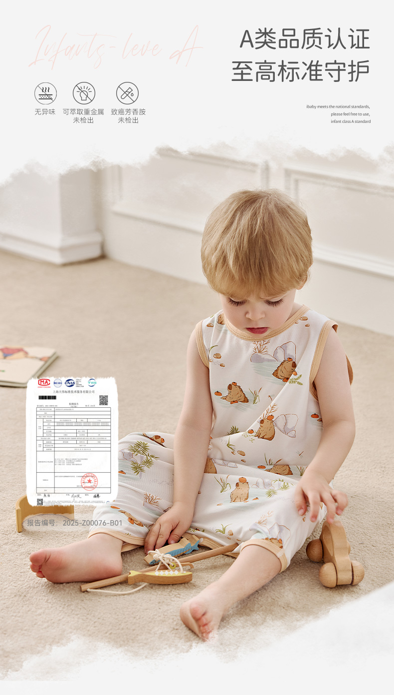 【2025年春夏新品】i-baby/英伦宝贝恒温儿童睡袍宝宝背心式睡裙夏季男童女童家居服