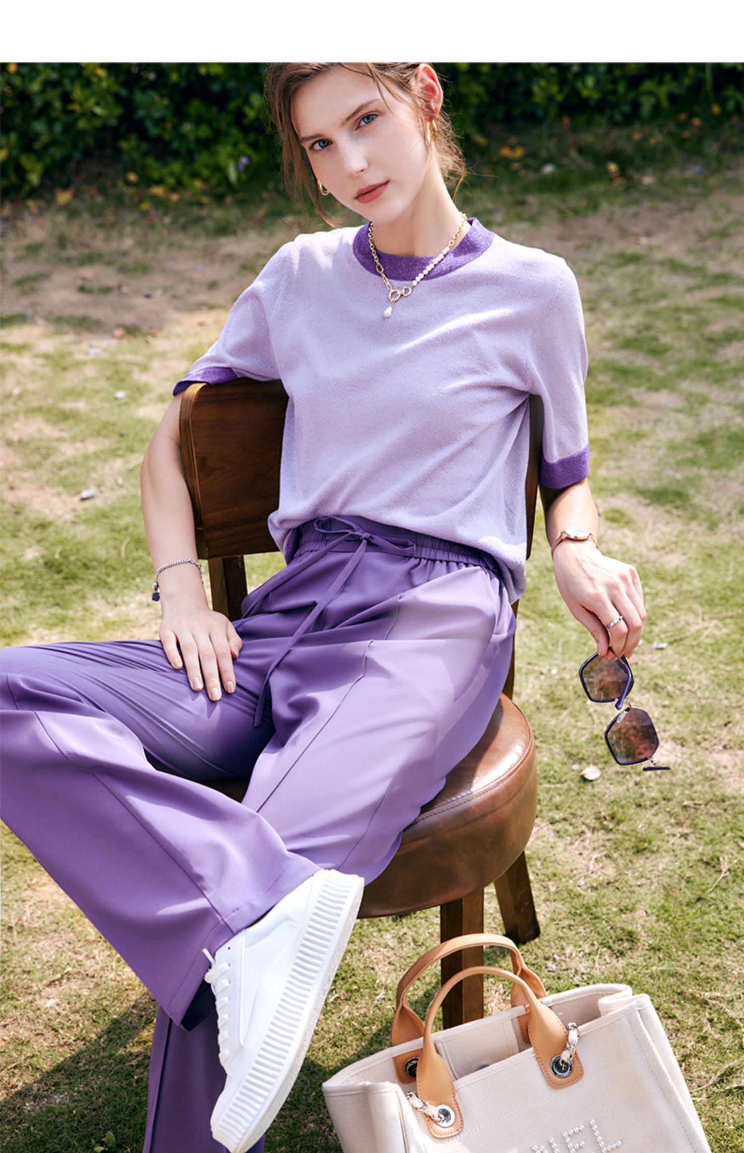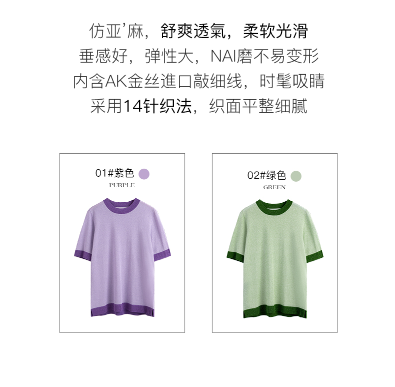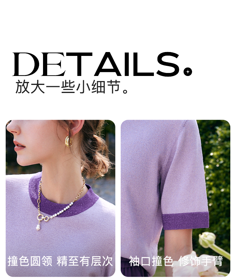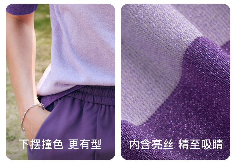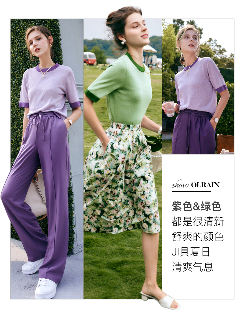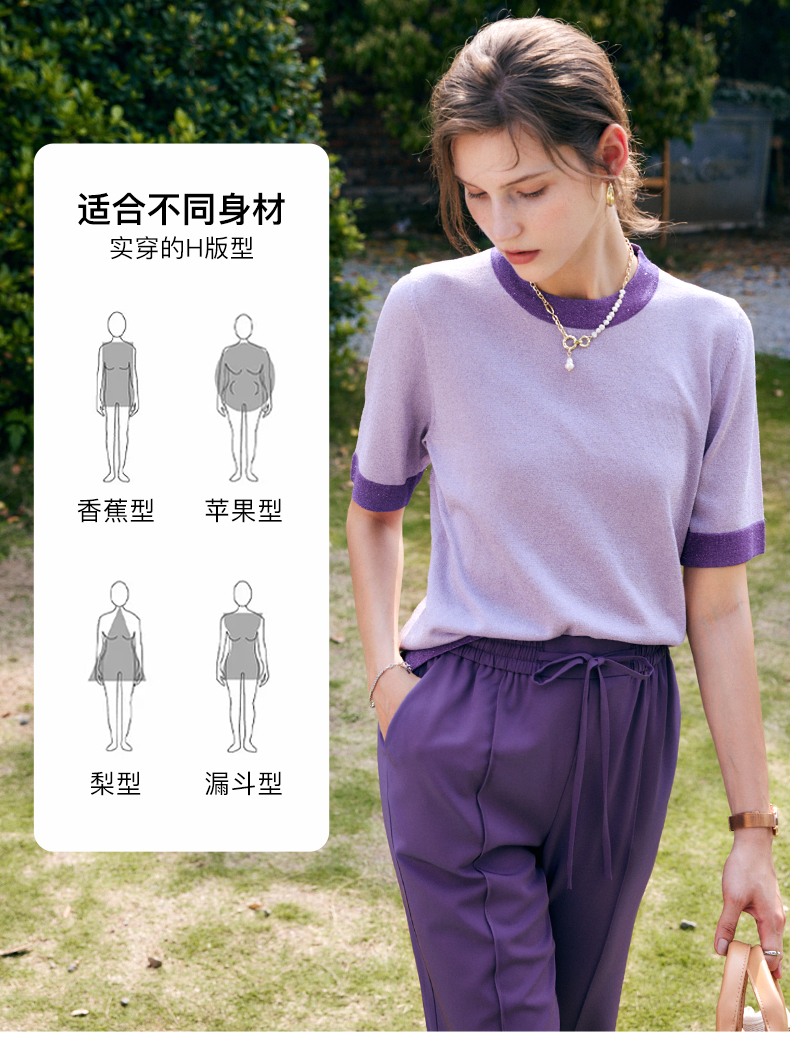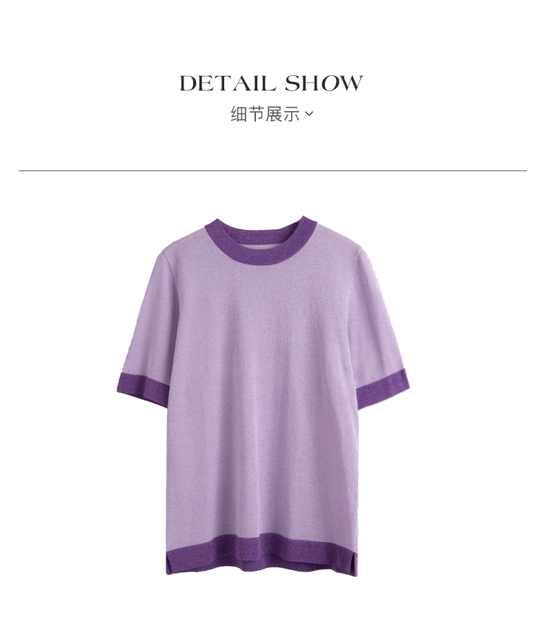 欧芮儿OLrain法式高级紫色针织衫女夏季2024短袖高端冰丝薄款上衣